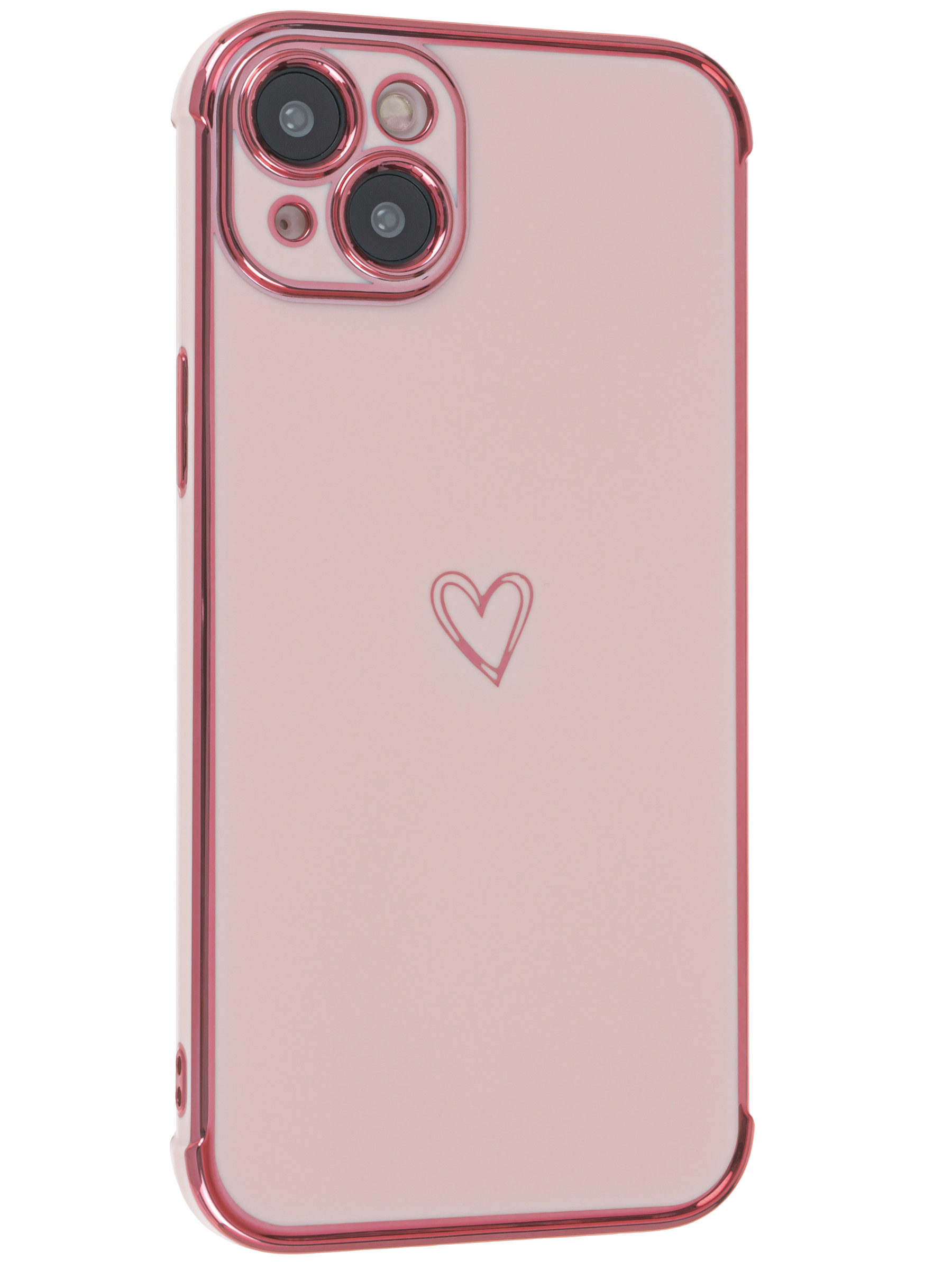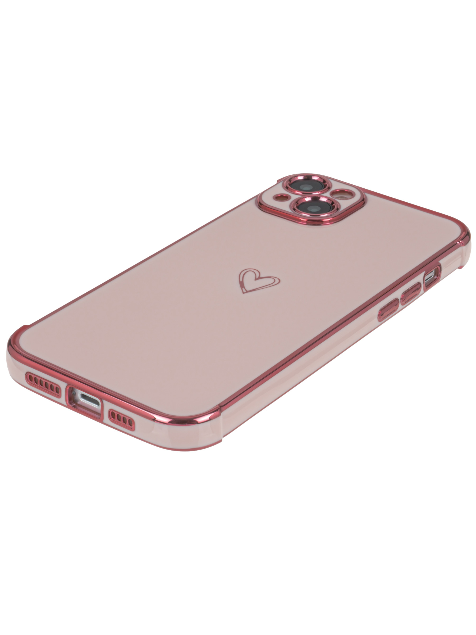 Силиконовый чехол Electroplate hearts для iPhone 14 Plus / 15 Plus песочно-розовый