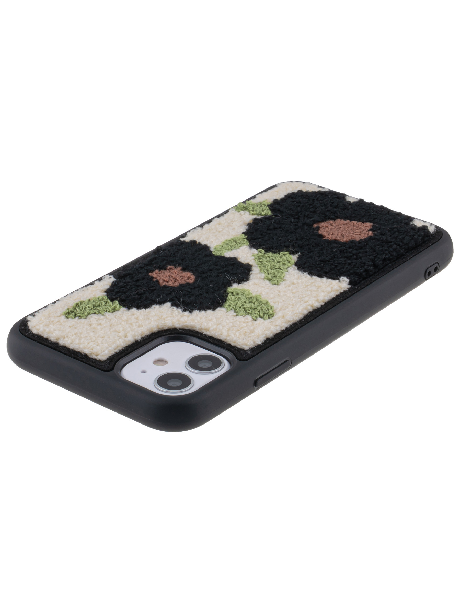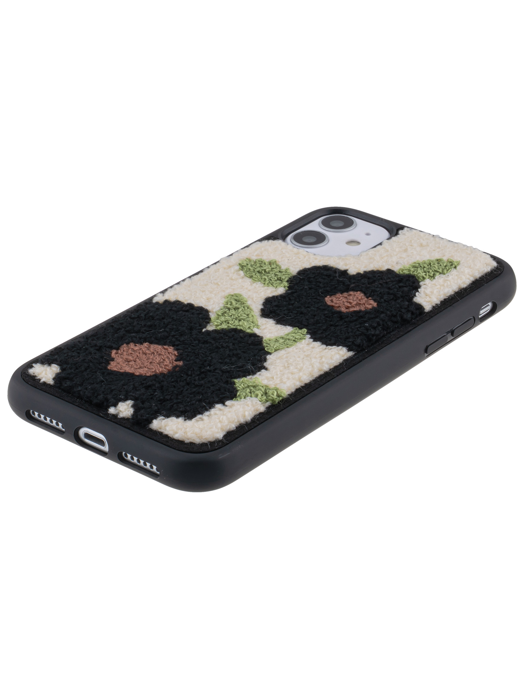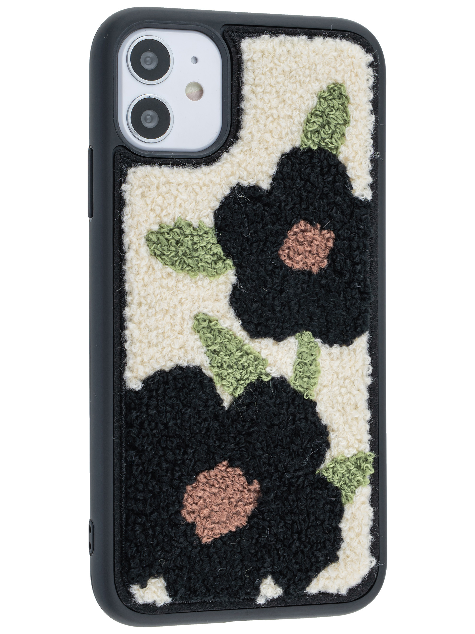 Силиконовый чехол Embroider для iPhone 11 черные цветы с листьями