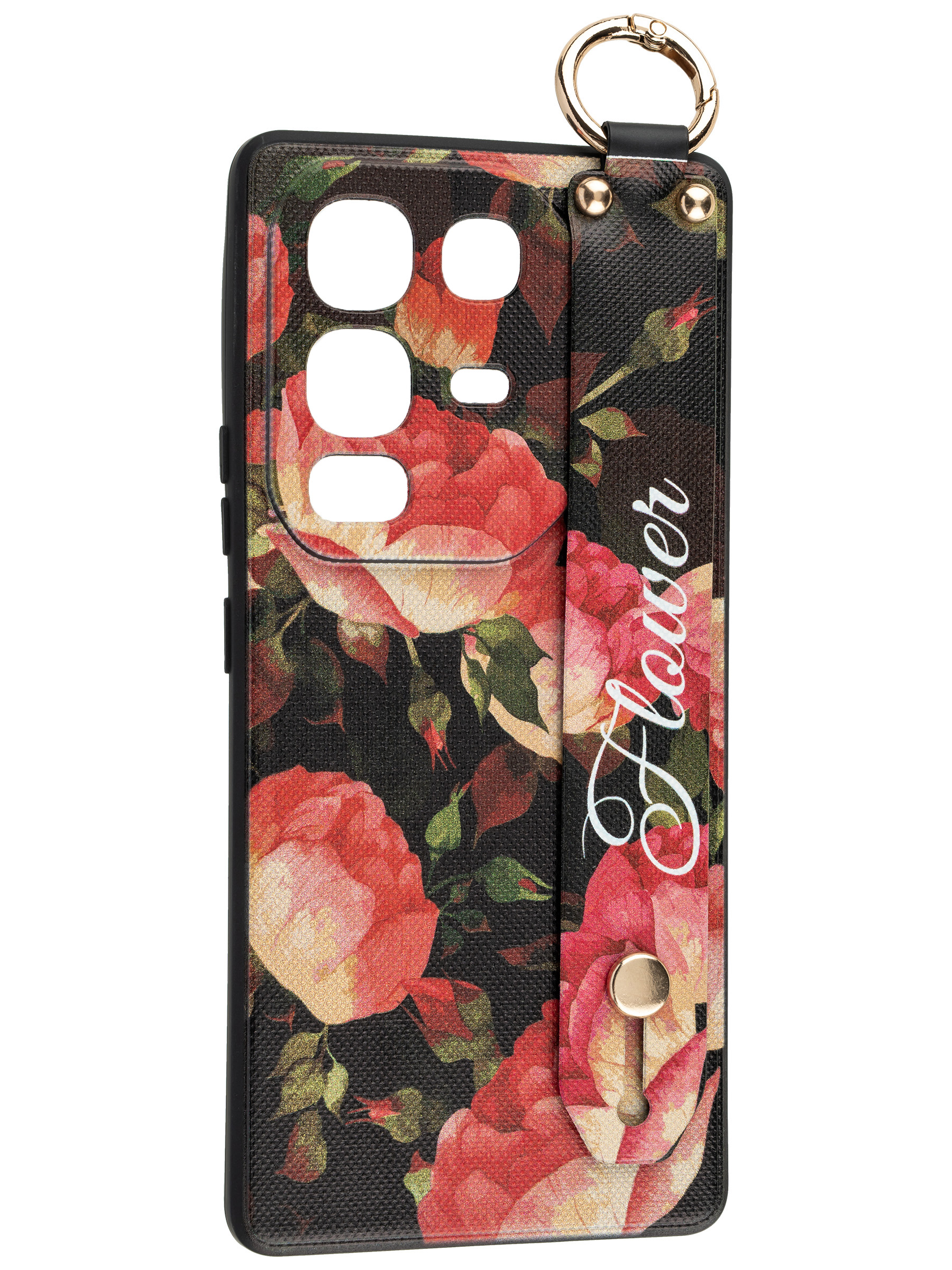 Силиконовый чехол Flower для Infinix Note 50 Нежные розы (с ручкой) черный