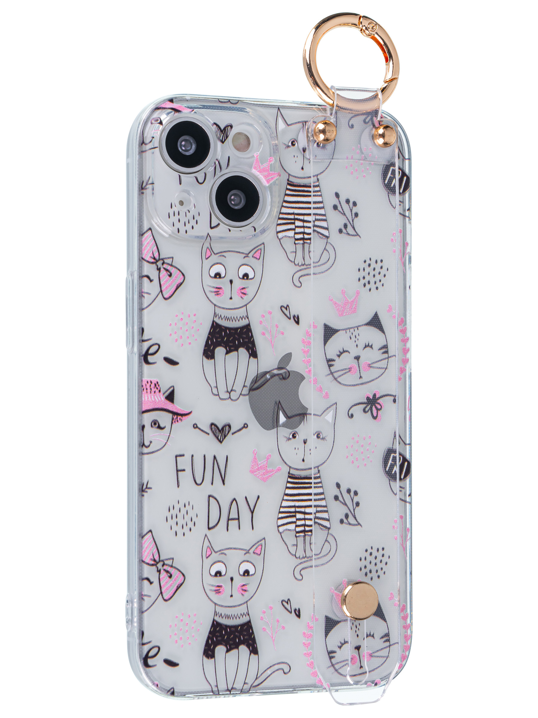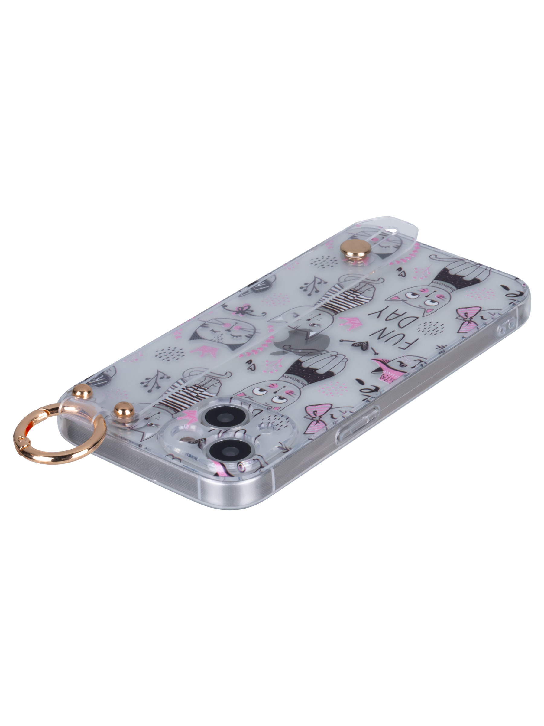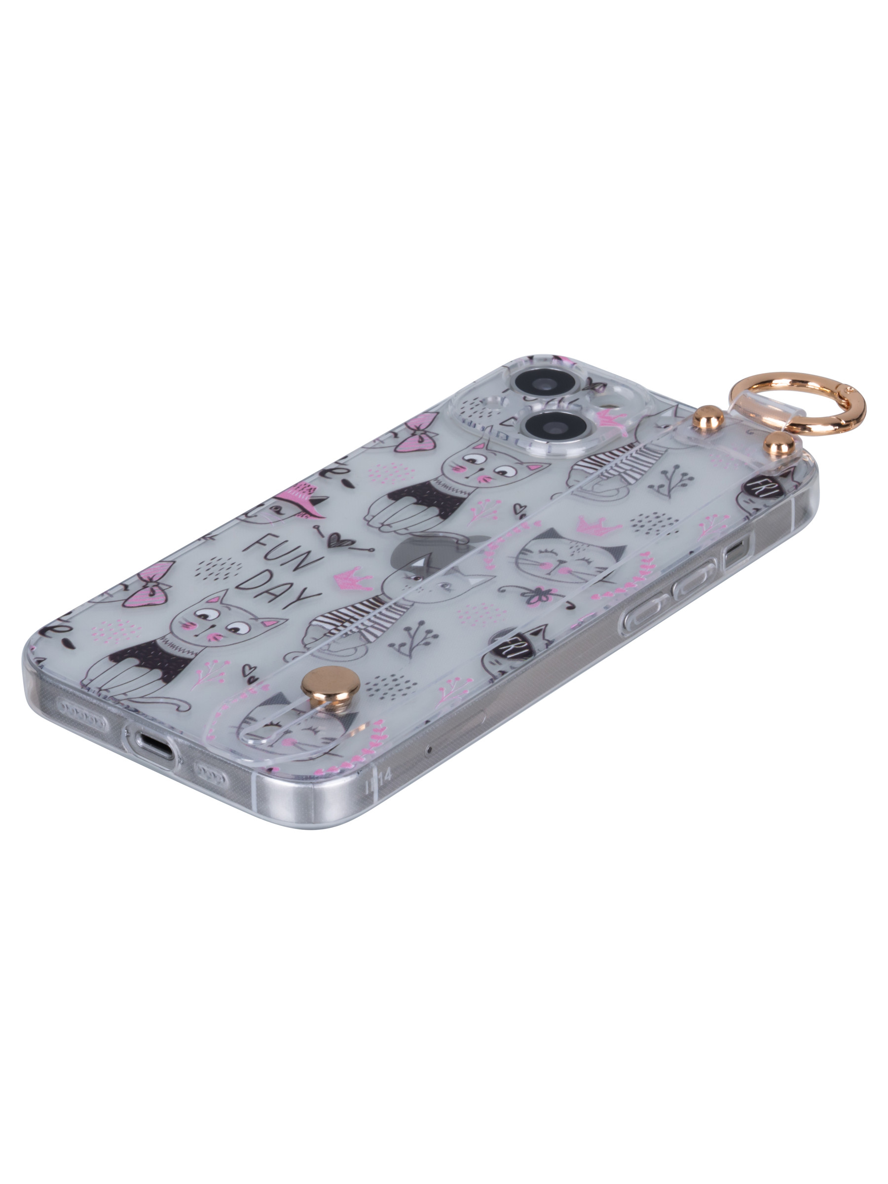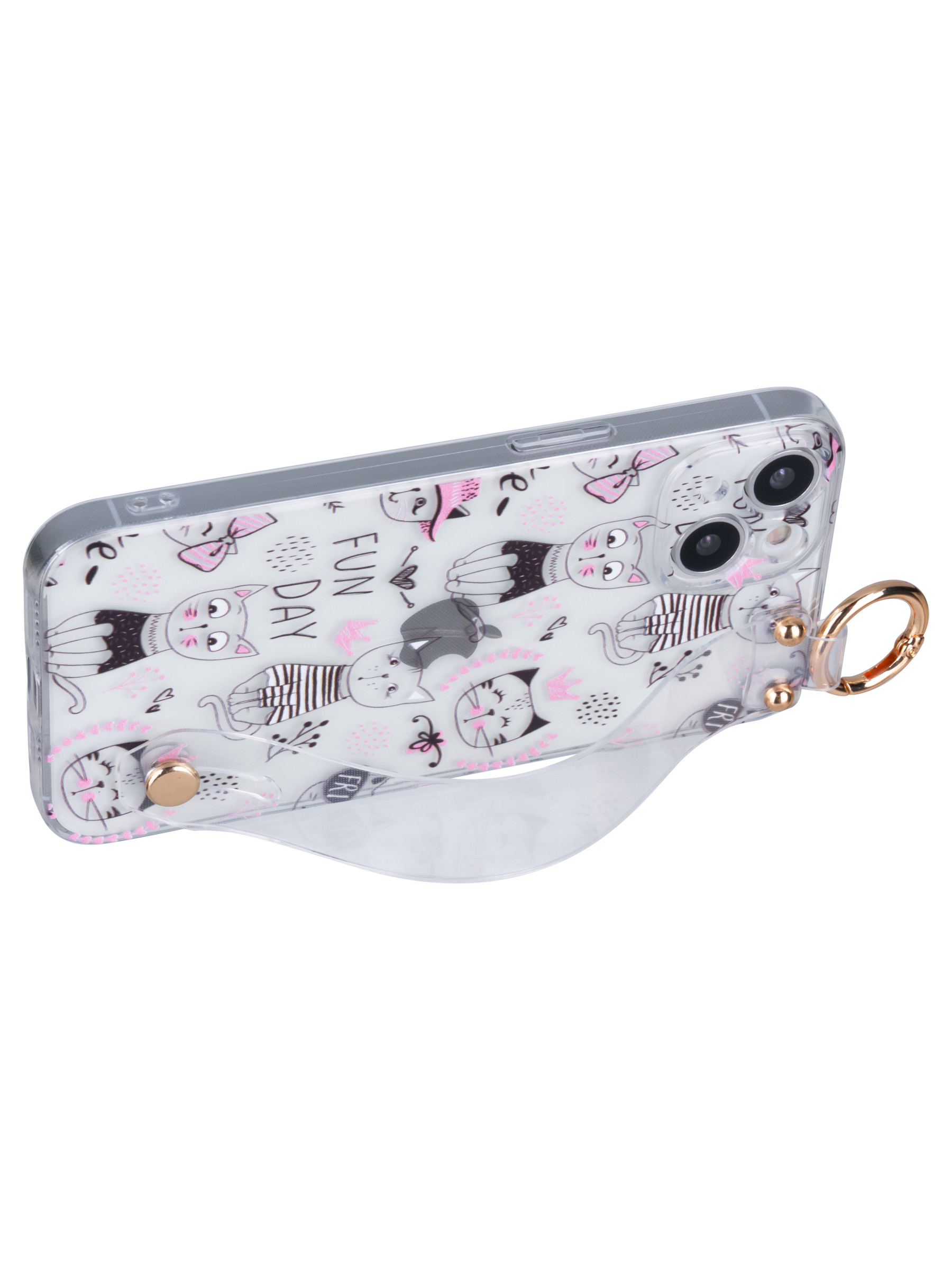 Силиконовый чехол Flower для iPhone 14 Fun Day (с ручкой) прозрачный