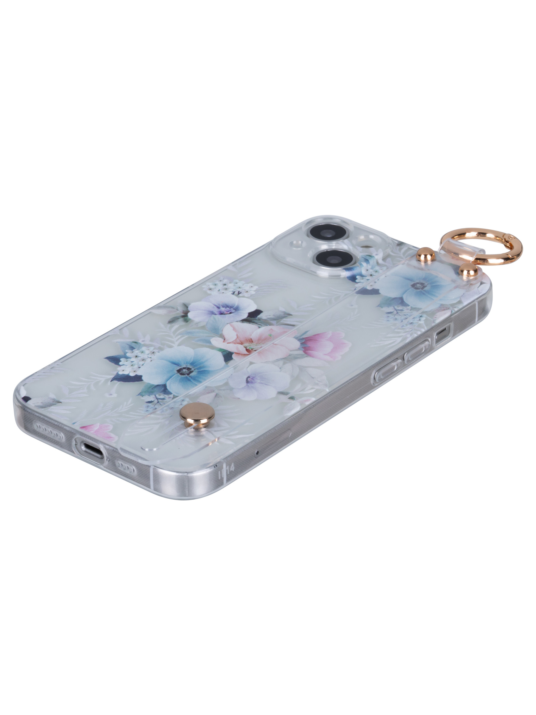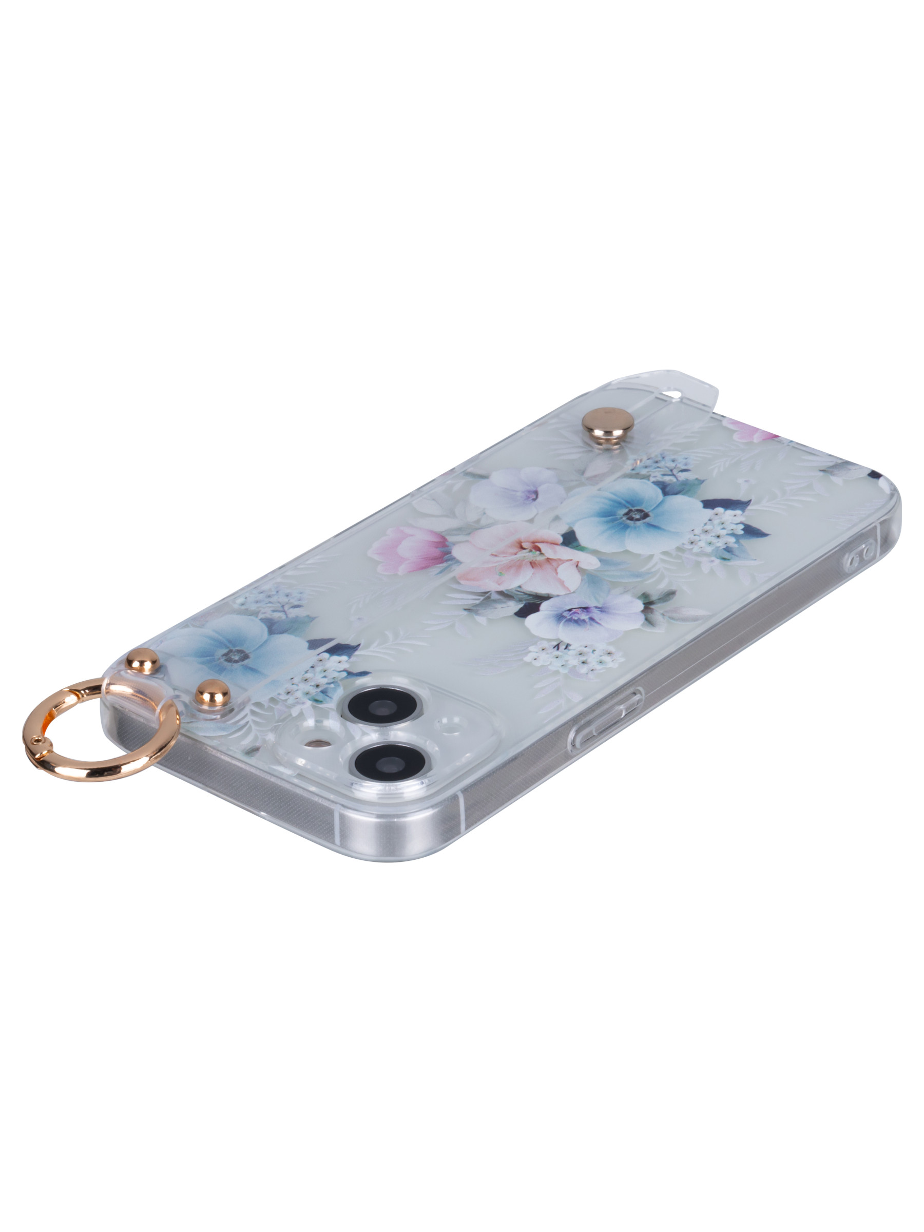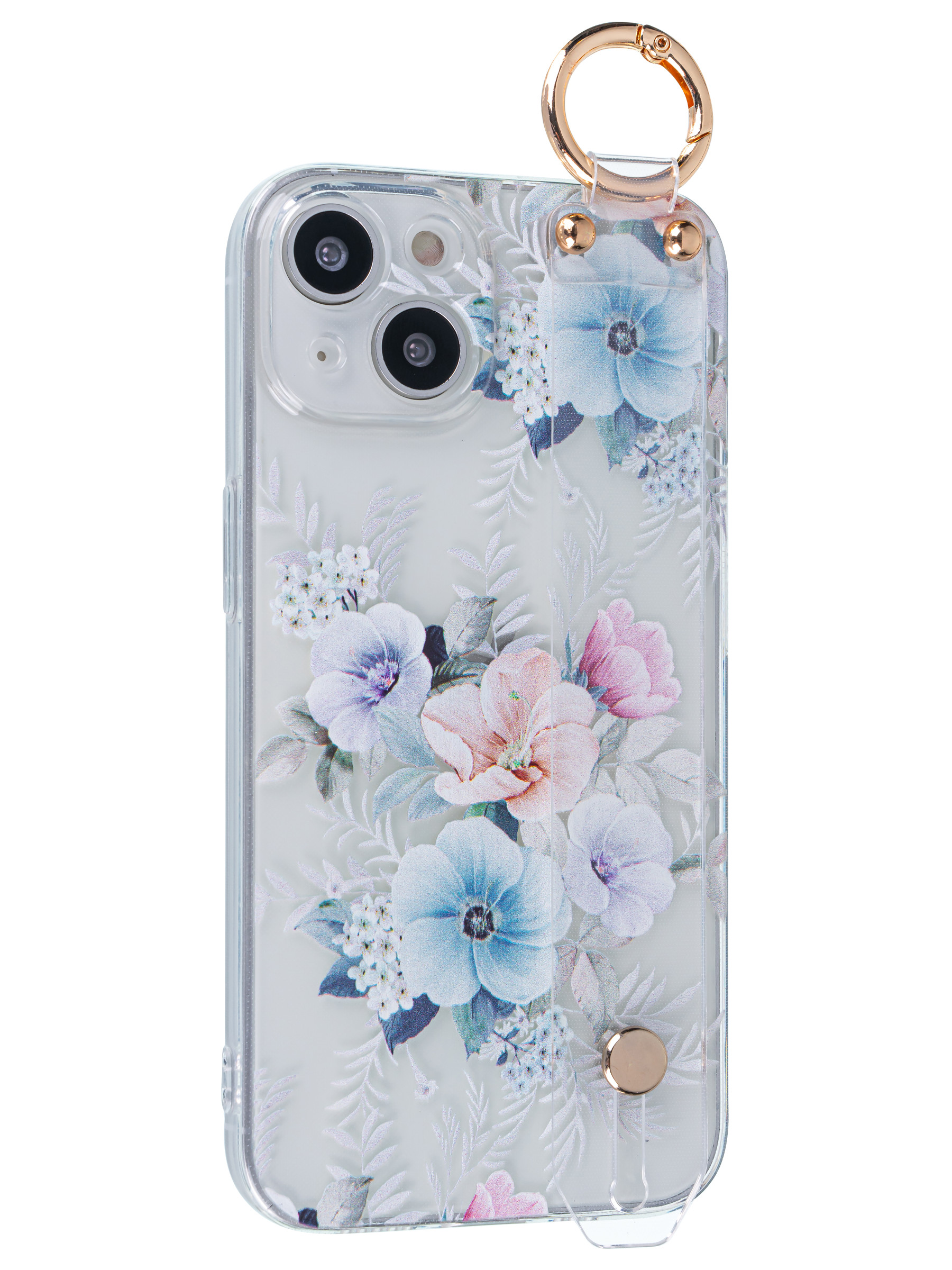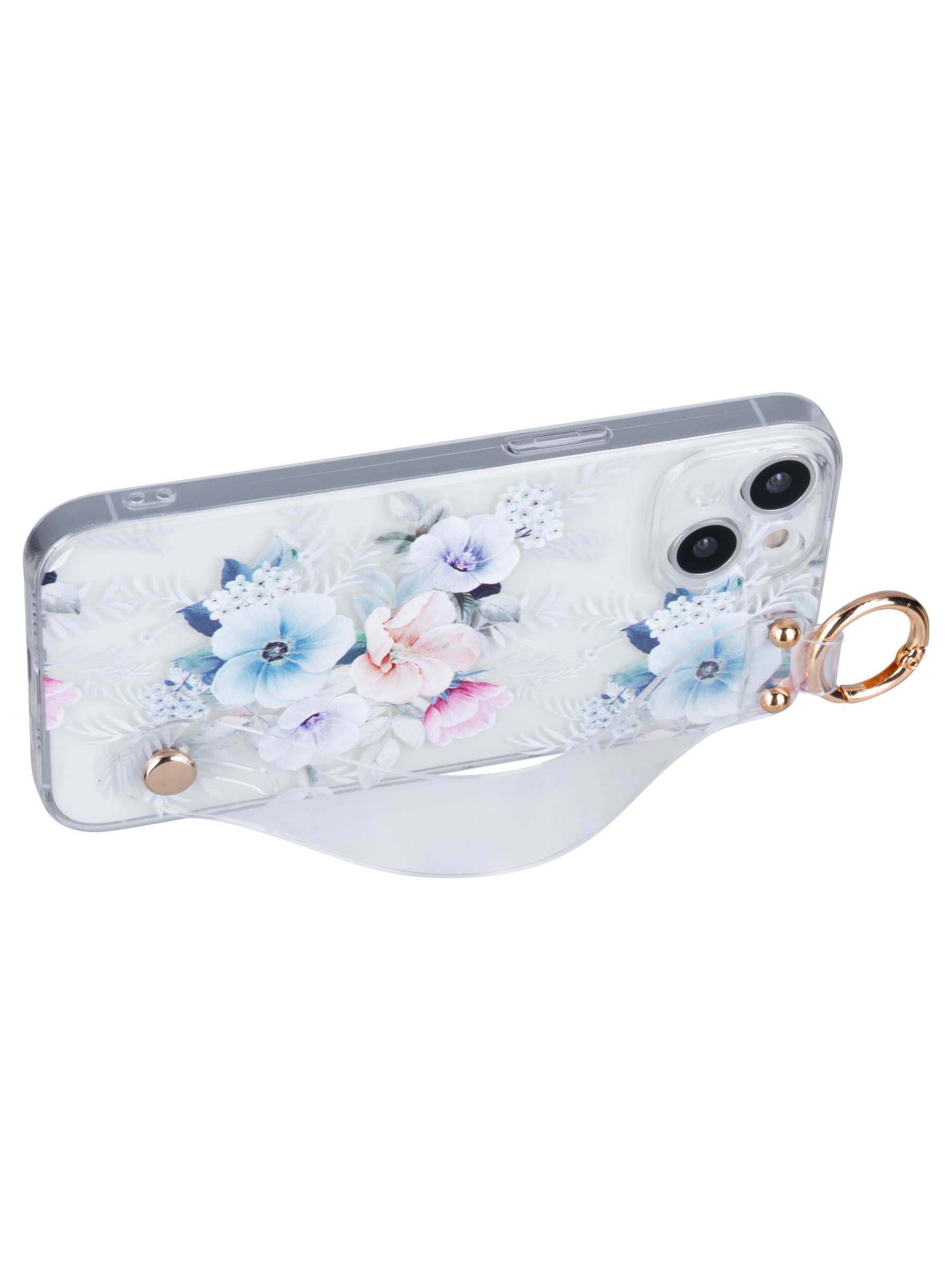 Силиконовый чехол Flower для iPhone 14 Петуния (с ручкой) прозрачный