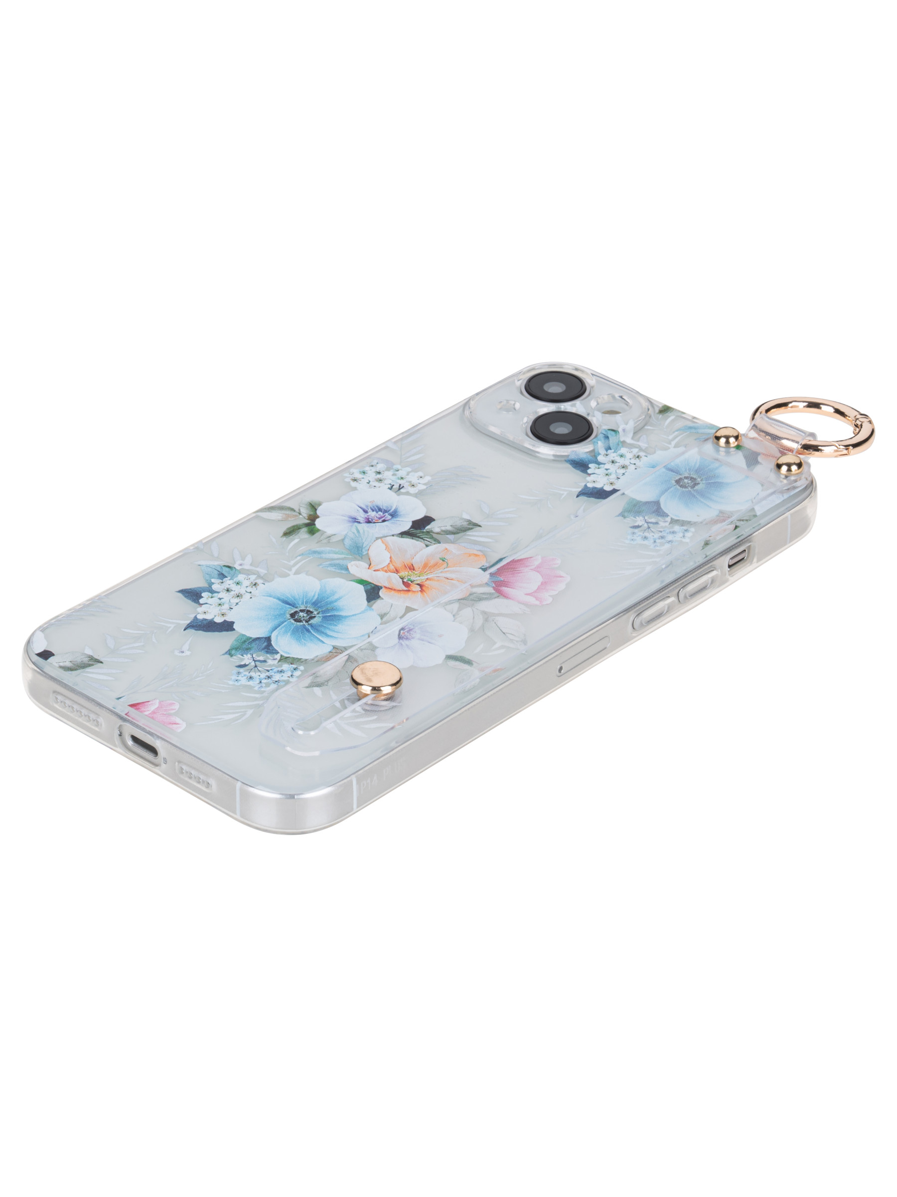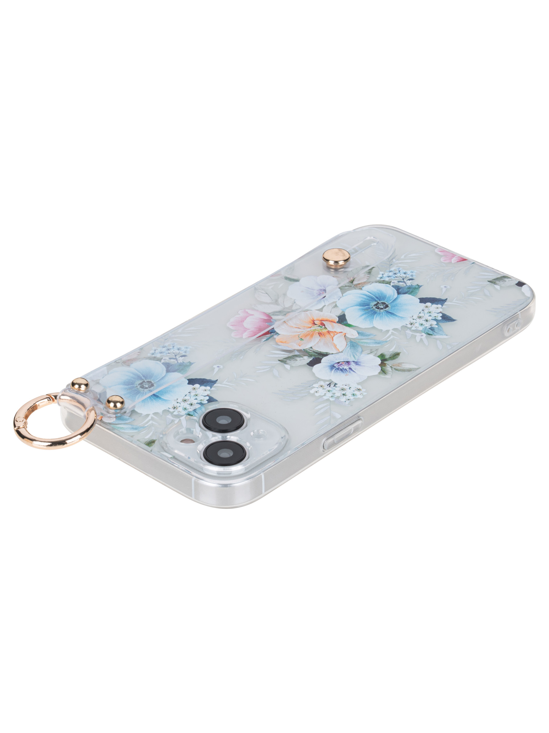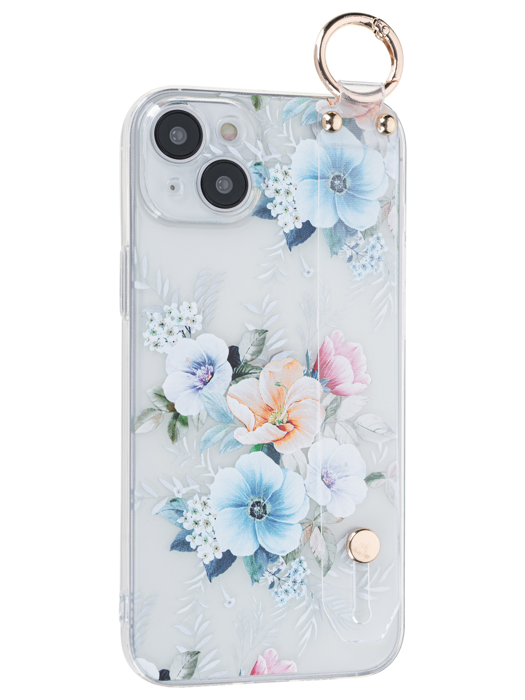 Силиконовый чехол Flower для iPhone 14 Plus / 15 Plus Петуния (с ручкой) прозрачный