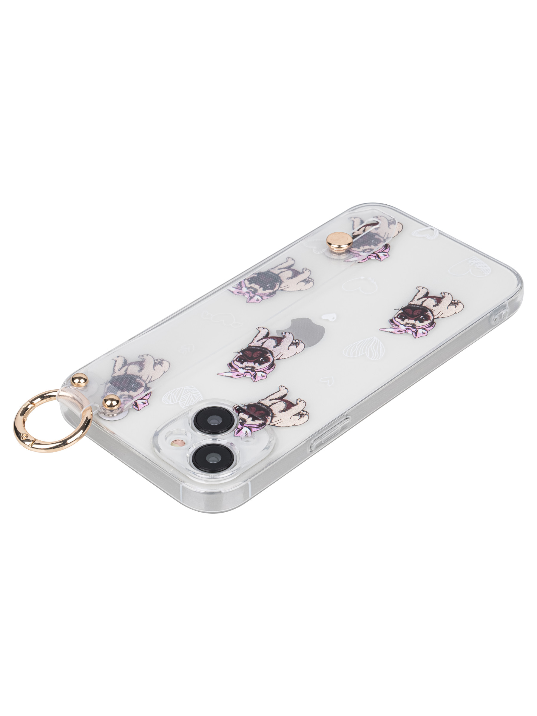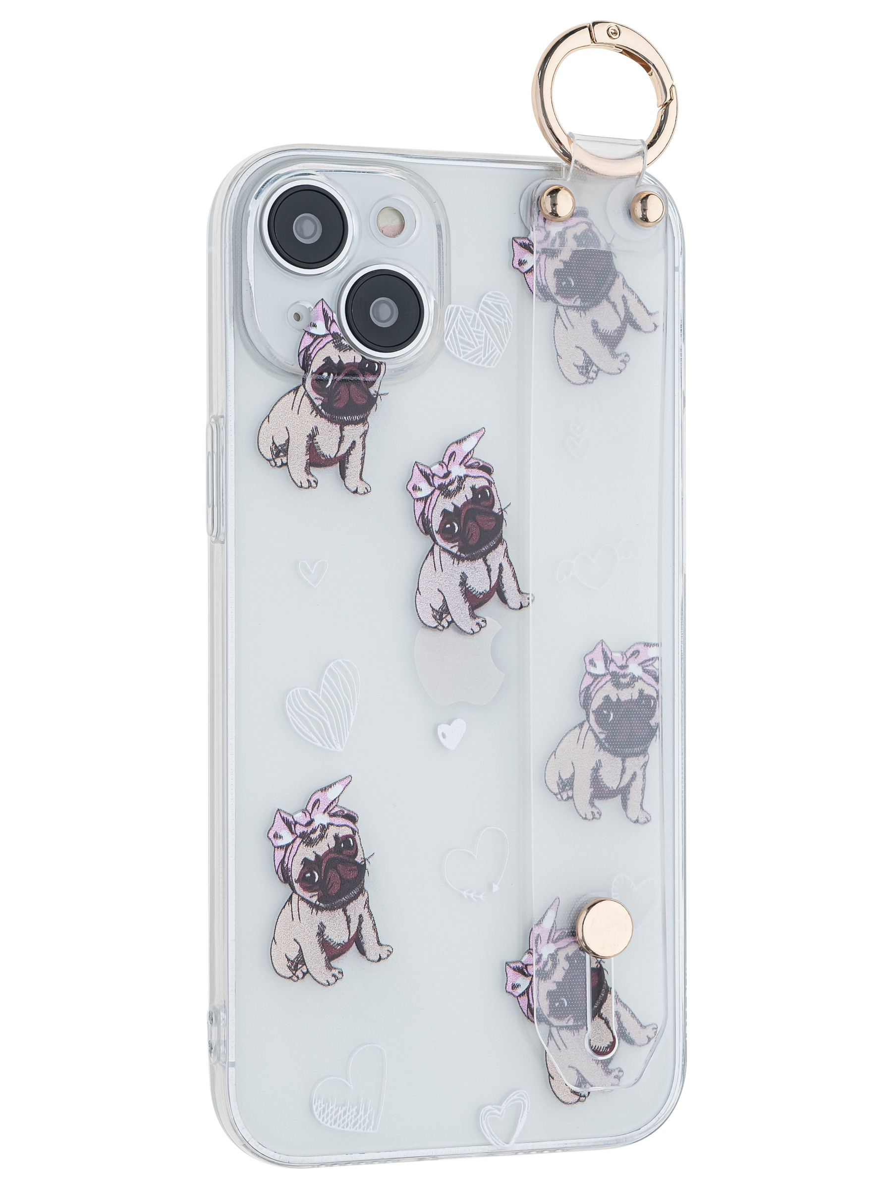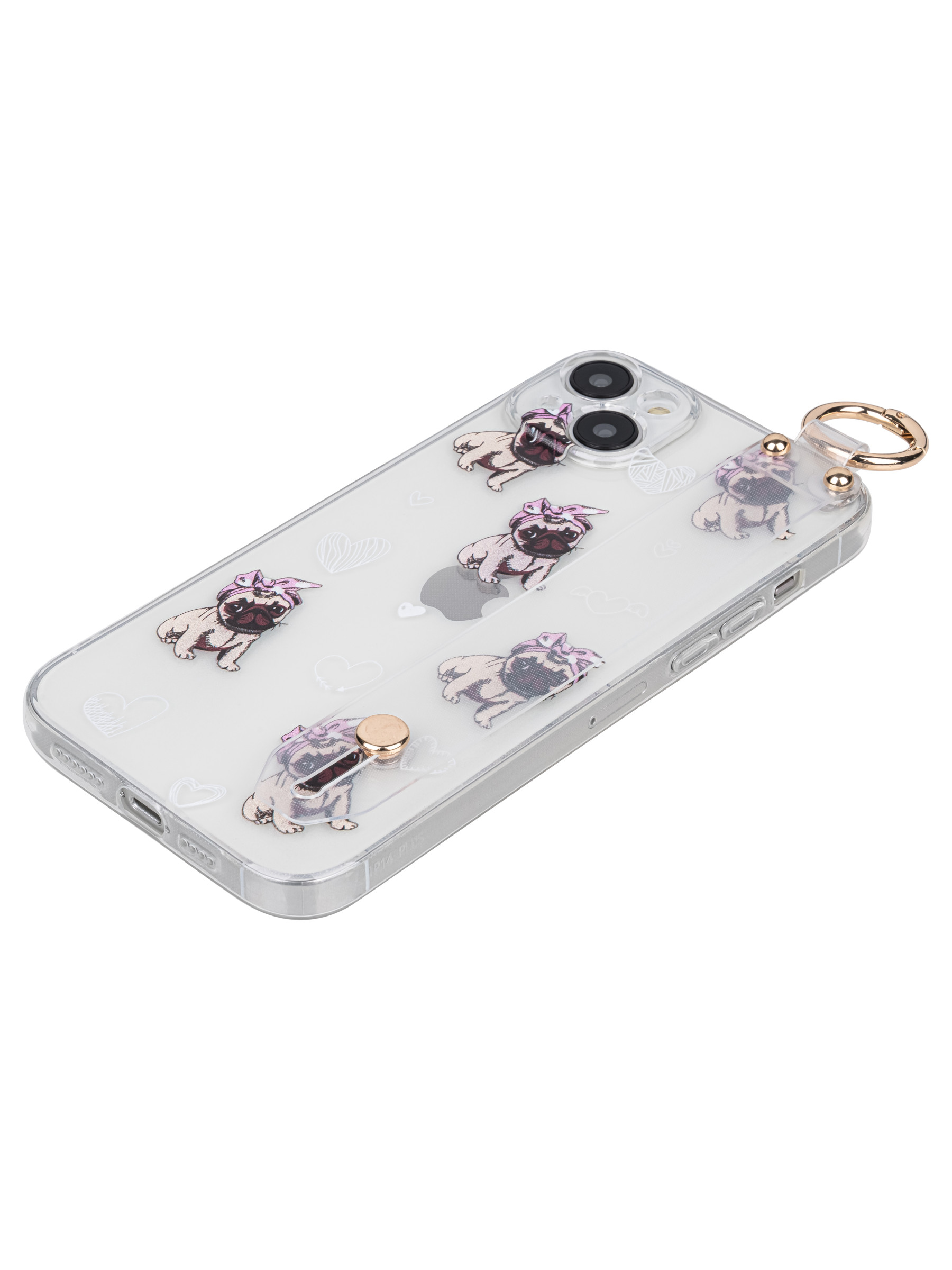 Силиконовый чехол Flower для iPhone 14 Plus Мопсики (с ручкой) прозрачный