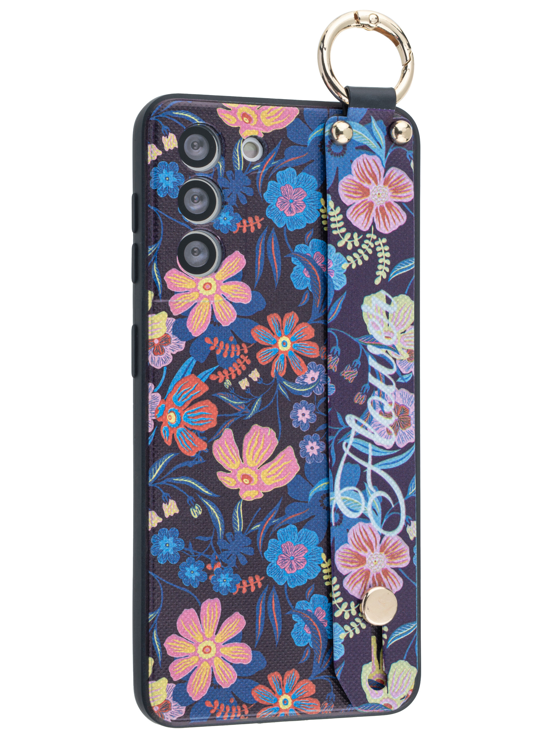 Силиконовый чехол Flower для Samsung Galaxy S21 5G Разноцветные ромашки (с ручкой)