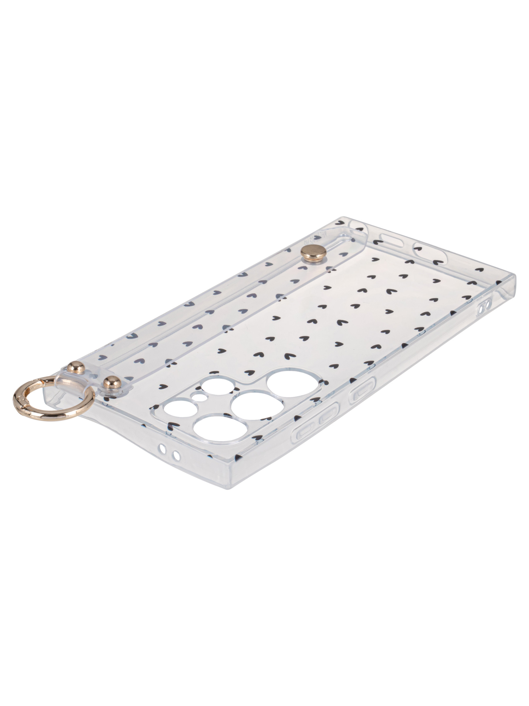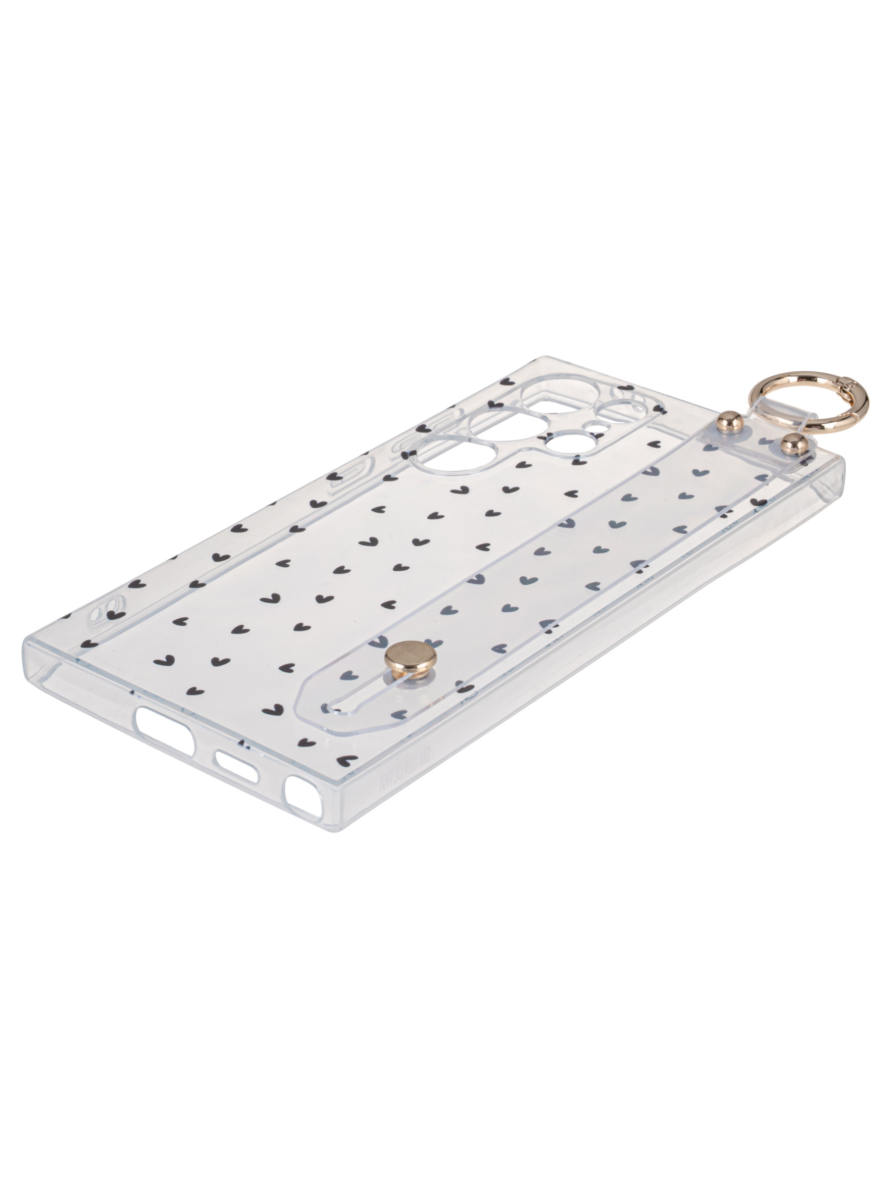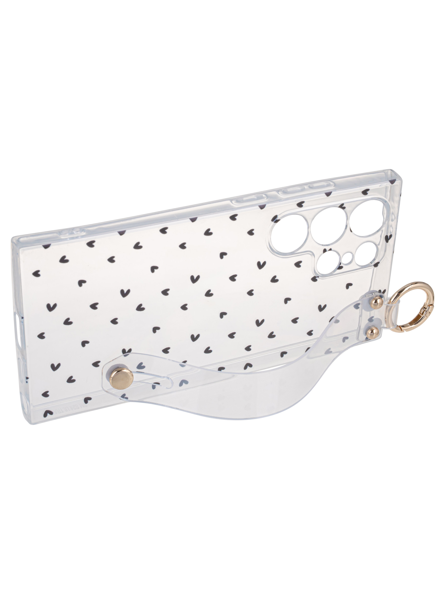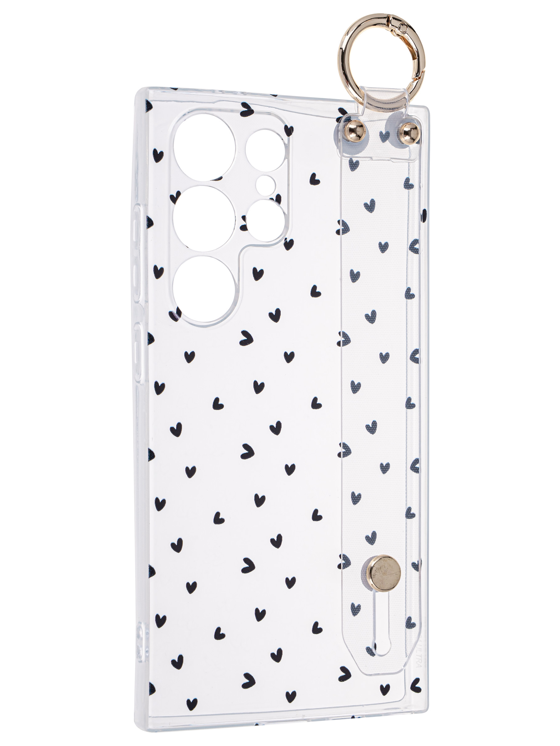 Силиконовый чехол Flower для Samsung Galaxy S24 Ultra Black hearts (с ручкой) прозрачный