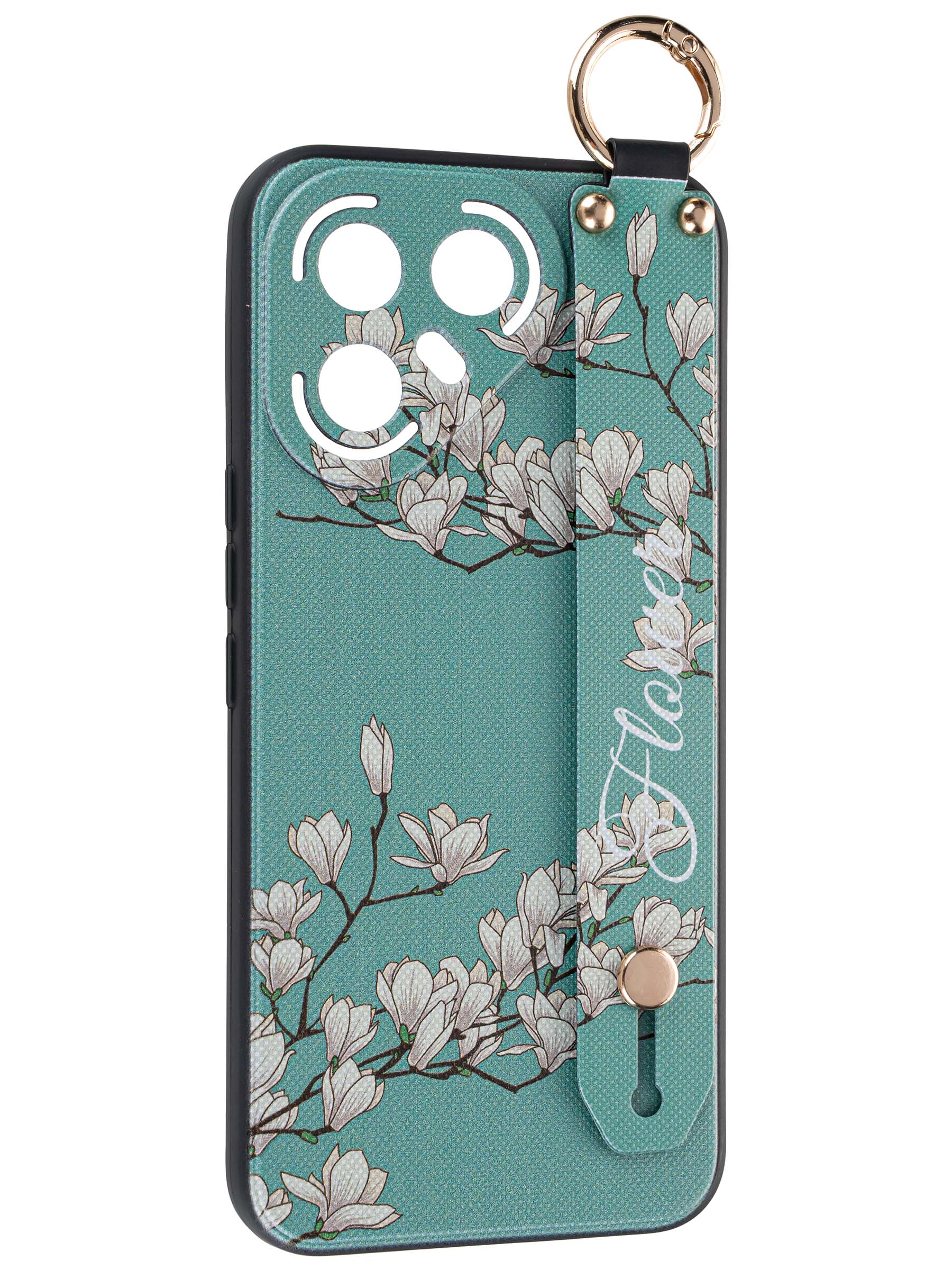 Силиконовый чехол Flower для Tecno Pova 7 Pro Цветение магнолии (с ручкой) голубой