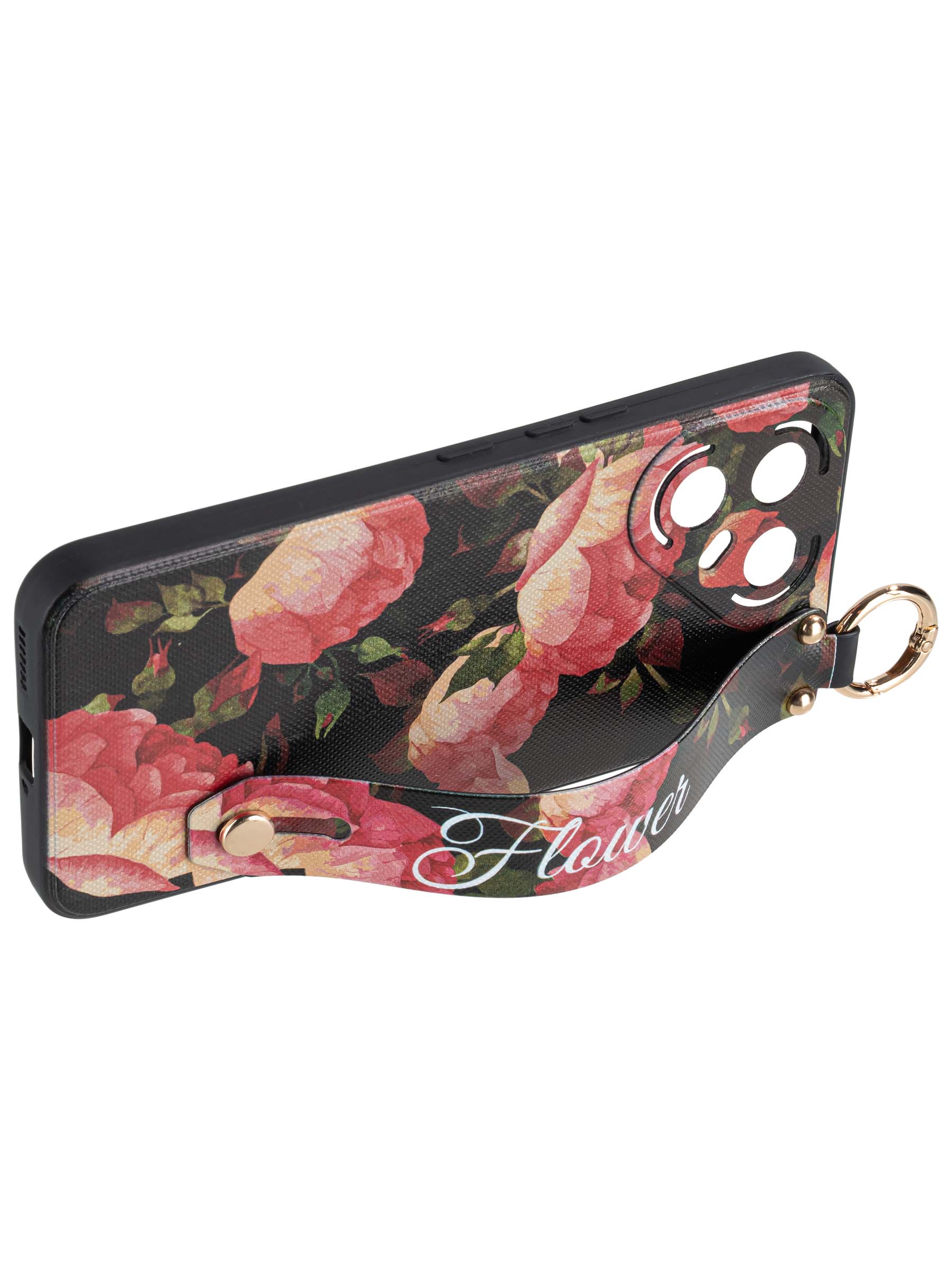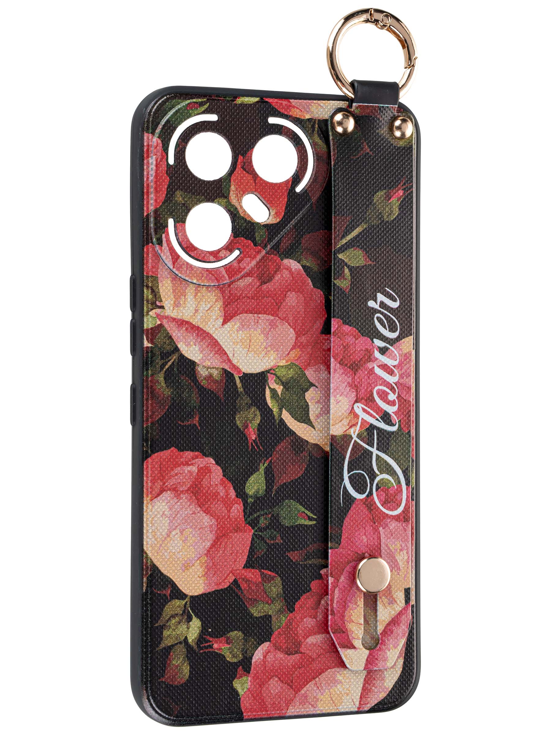 Силиконовый чехол Flower для Tecno Pova 7 Ultra Нежные розы (с ручкой) черный
