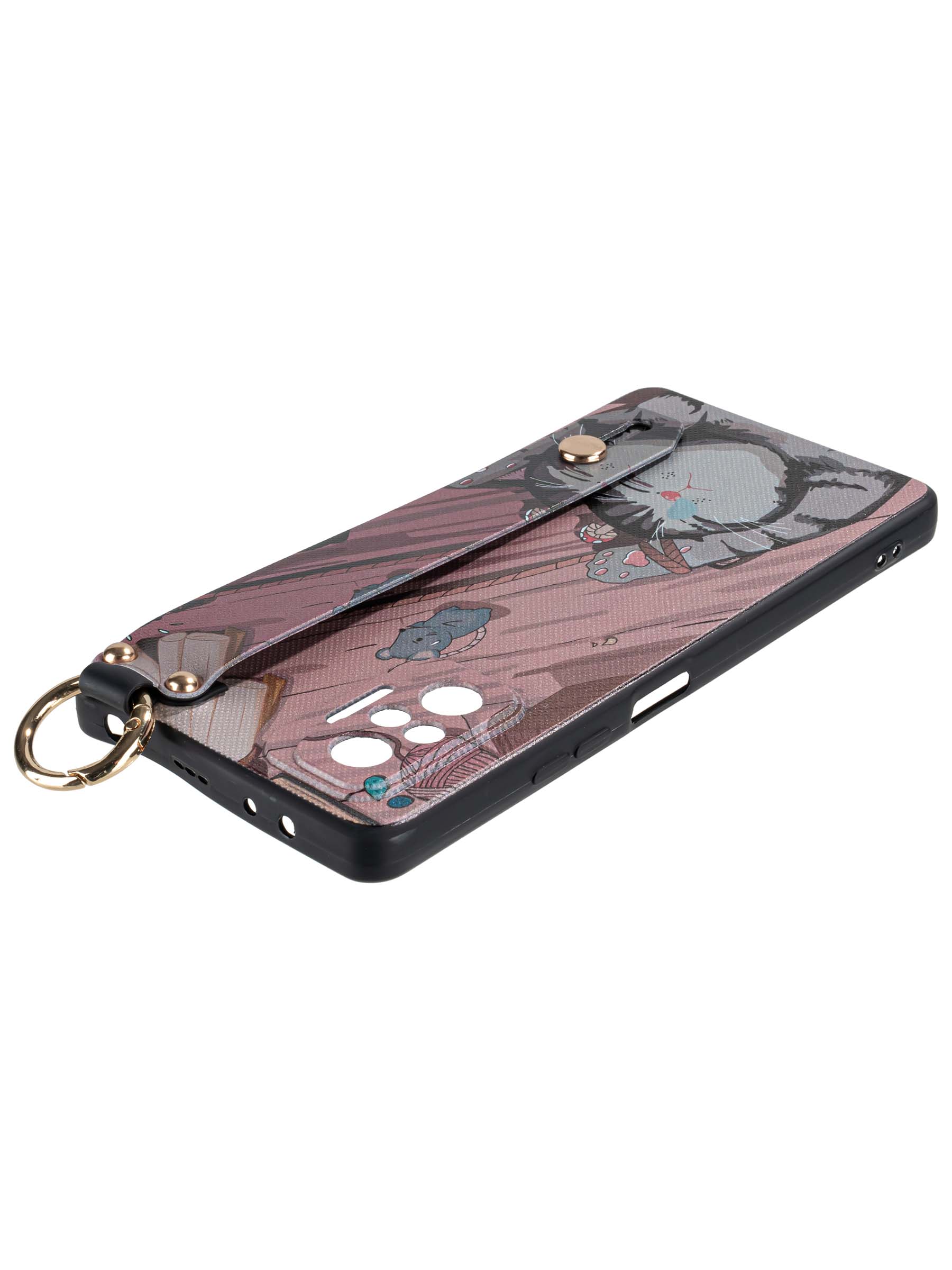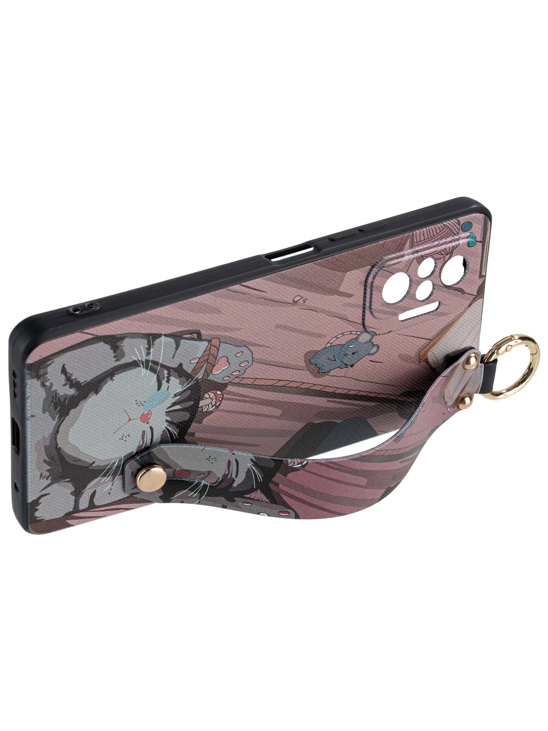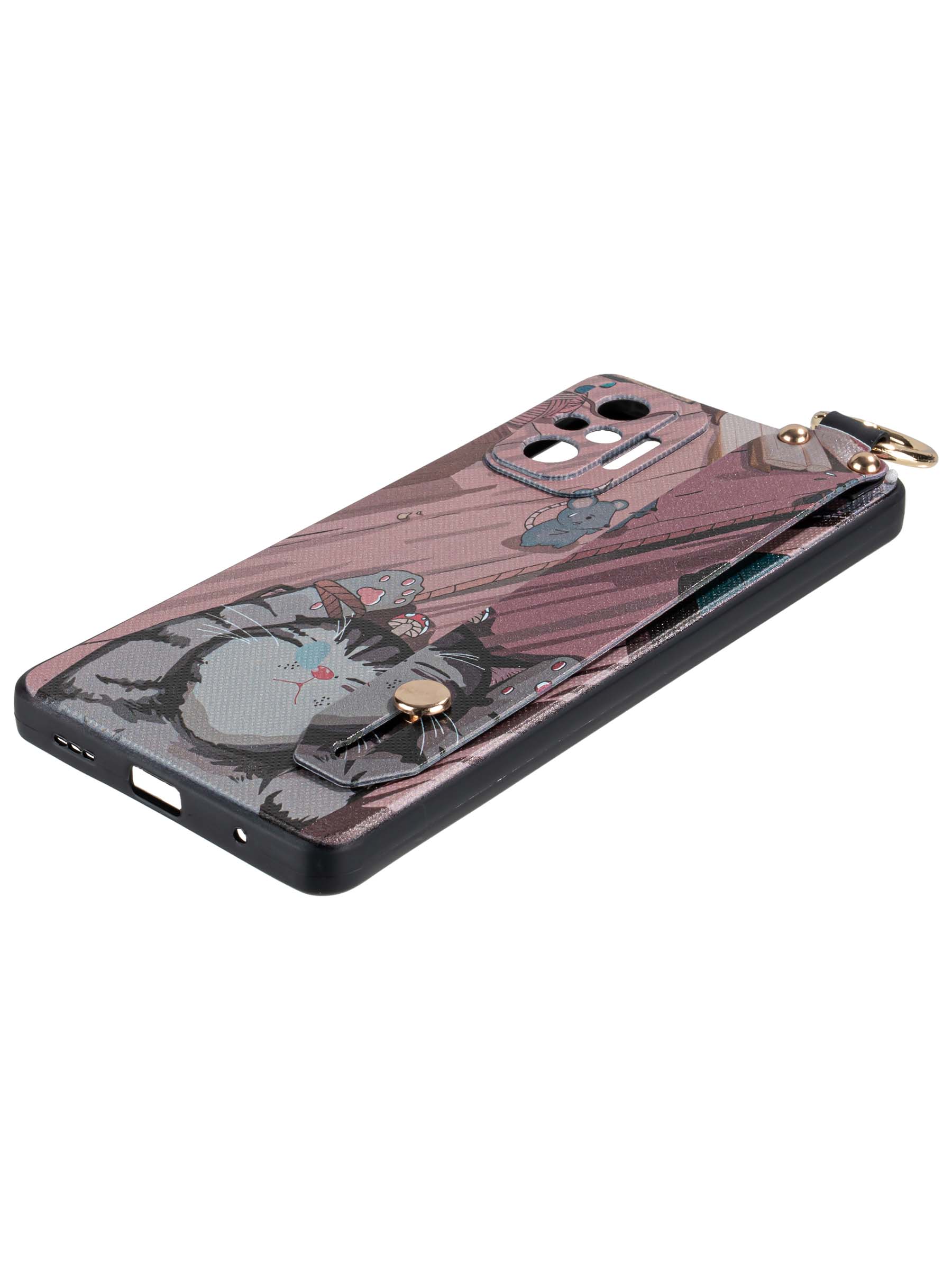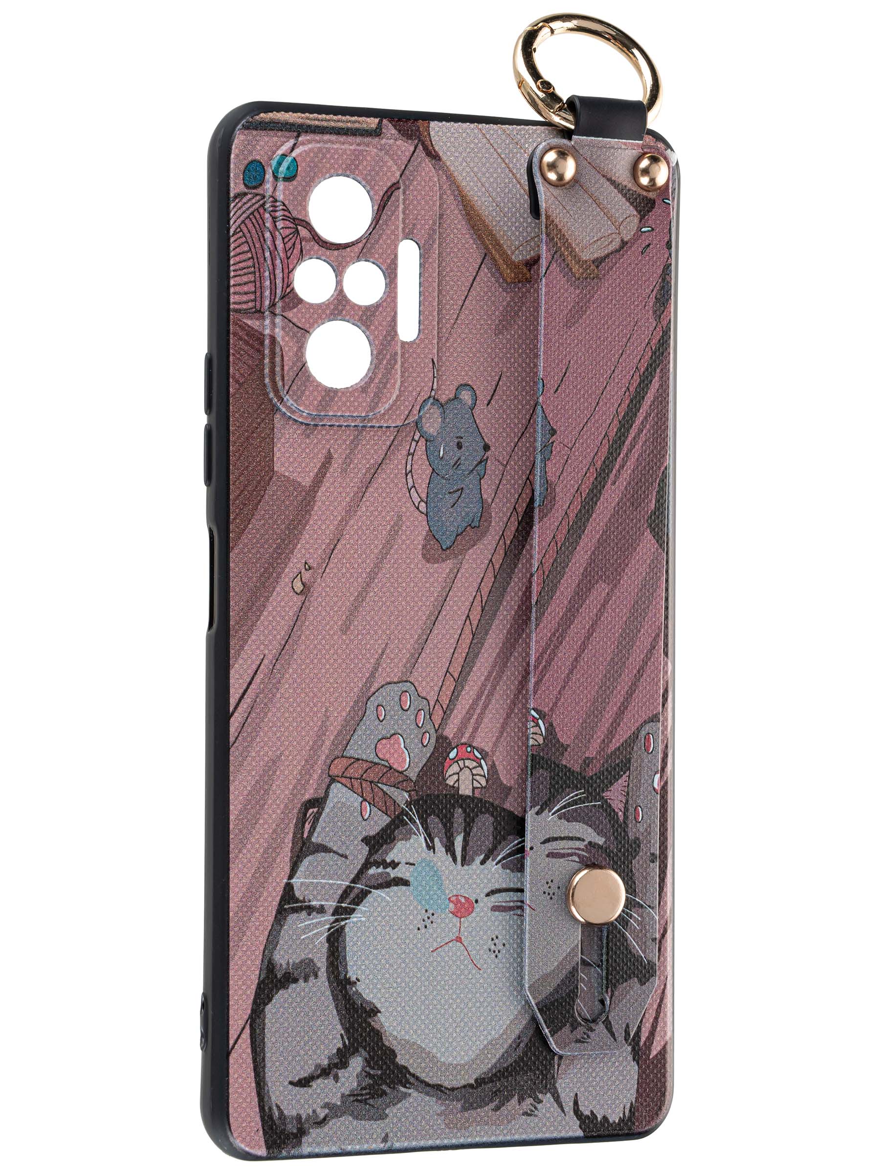 Силиконовый чехол Flower для Xiaomi Redmi Note 10 Pro Котик (с ручкой) бежево-розовый