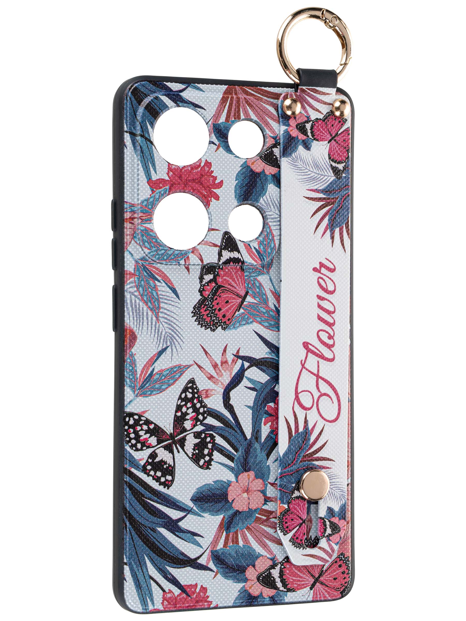 Этот чехол изготовлен из плотного и качественного силикона, он имеет особенности, которые делают его удобным и практичным. Например, он оснащен держателем для руки, что обеспечивает надежный захват и предотвращает случайные падения вашего телефона. Чехол также оснащен металлическим кольцом-карабином, который можно использовать как брелок. Вырезы и кнопки в точности соответствуют модели телефона, и чехол обеспечивает защиту камеры, избавляя пользователя от необходимости покупать дополнительное стекло. В серии Flower имеются различные рисунки с цветами, бабочками и розами. Чехол прекрасно подойдет в качестве подарка для девушек и женщин. Он легко одевается и снимается, а также не скользит в руке. Кроме того, чехол не только красивый и стильный, но и тонкий и женственный в дизайне.