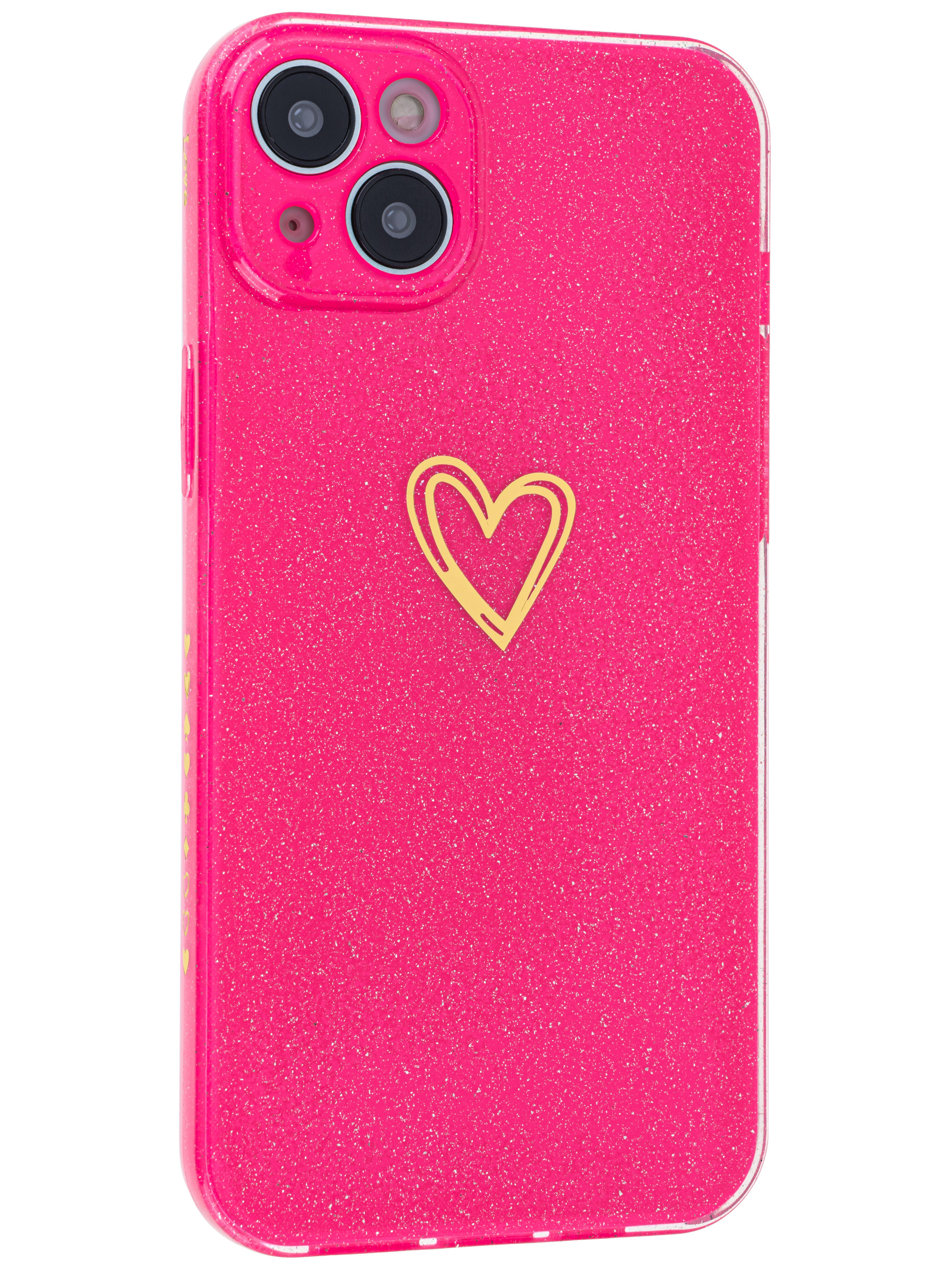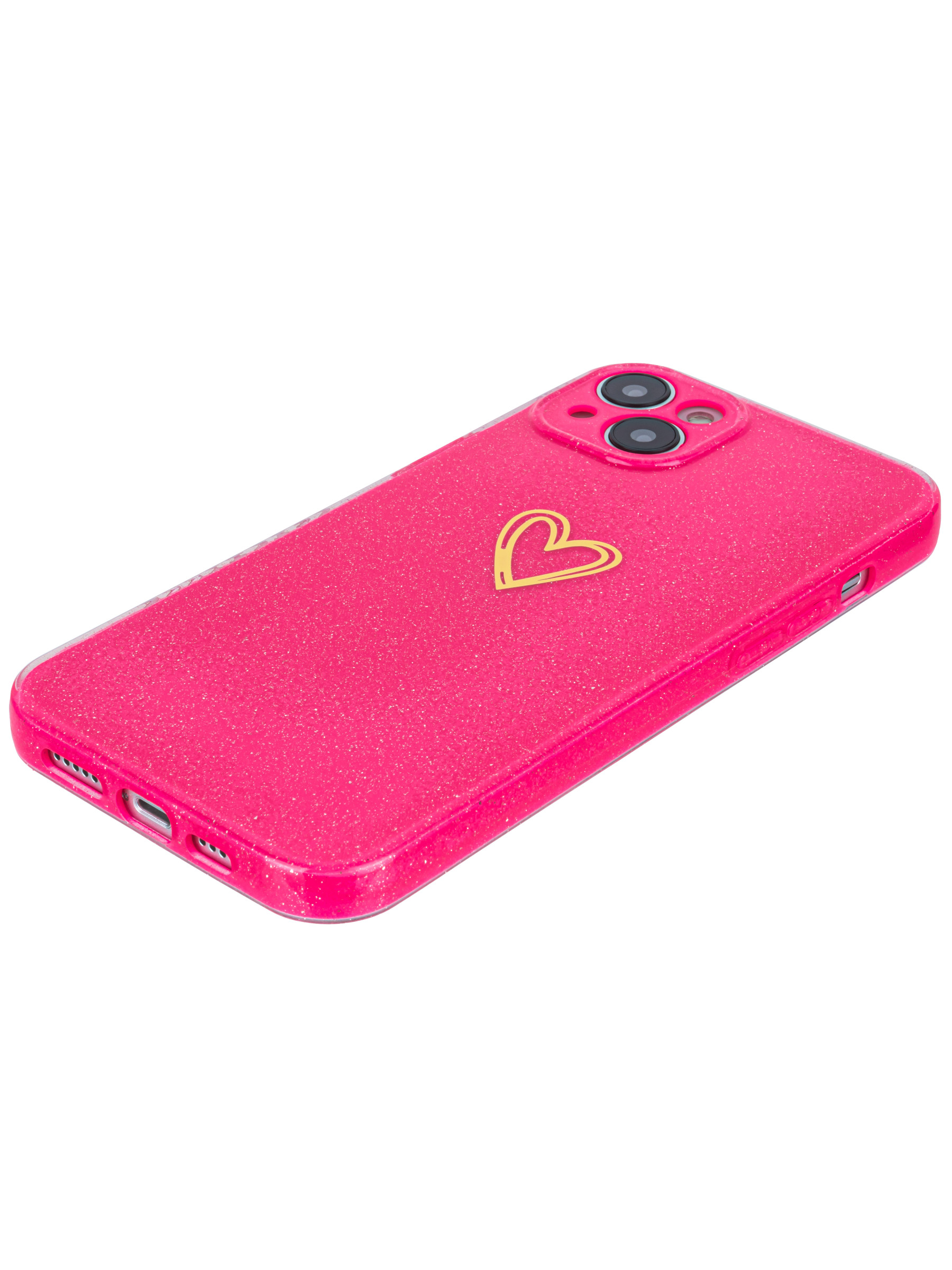 Силиконовый чехол Gold heart для iPhone 14 Plus / 15 Plus фуксия