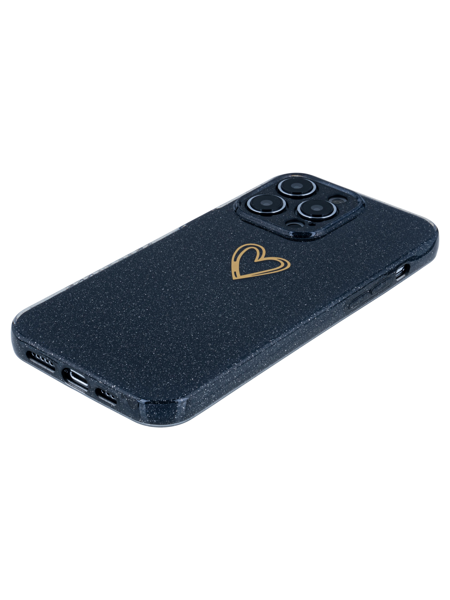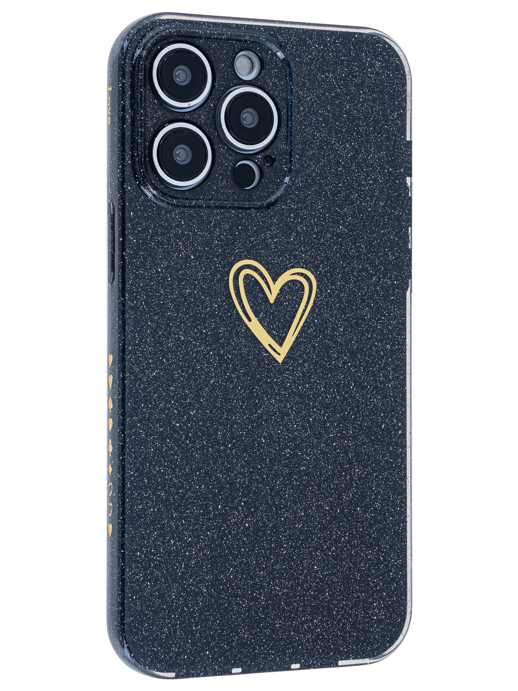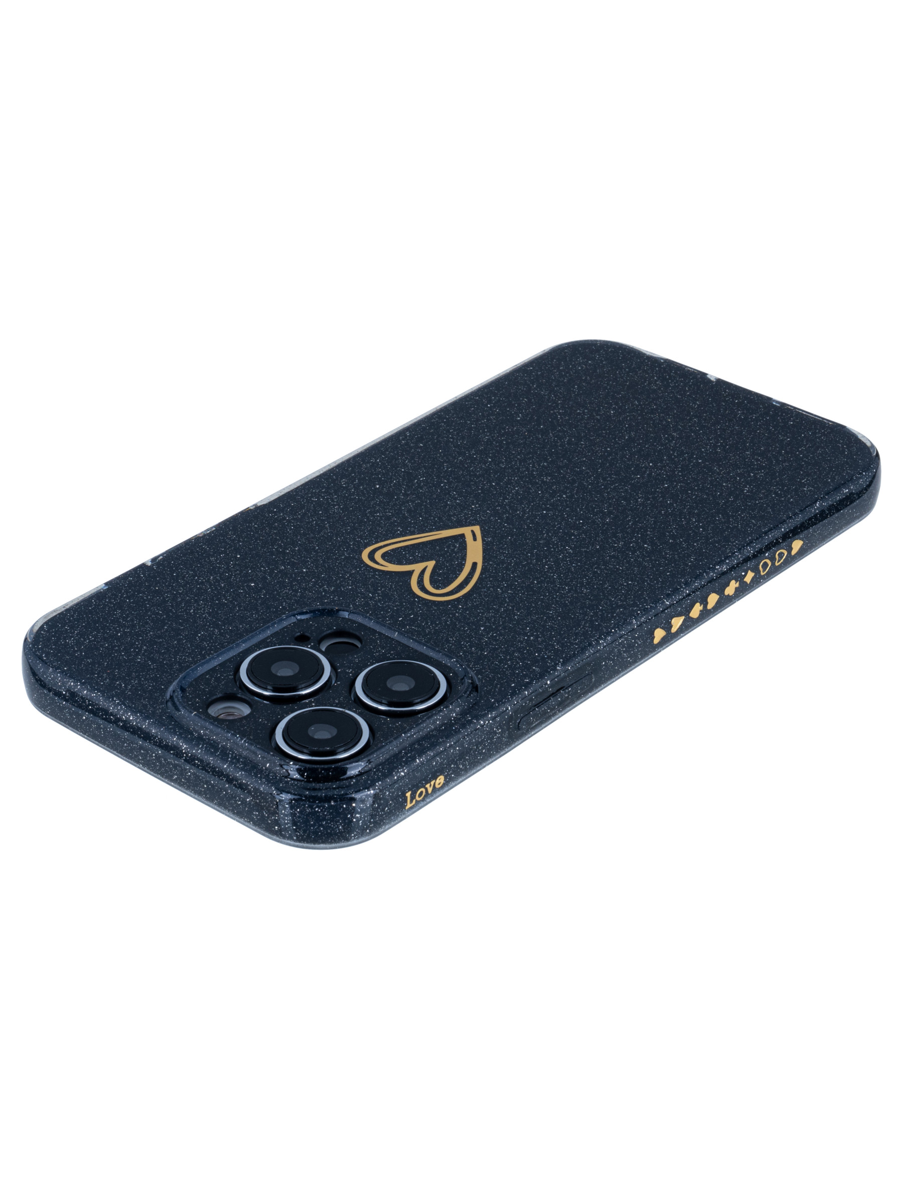 Силиконовый чехол Gold heart для iPhone 14 Pro Max черный