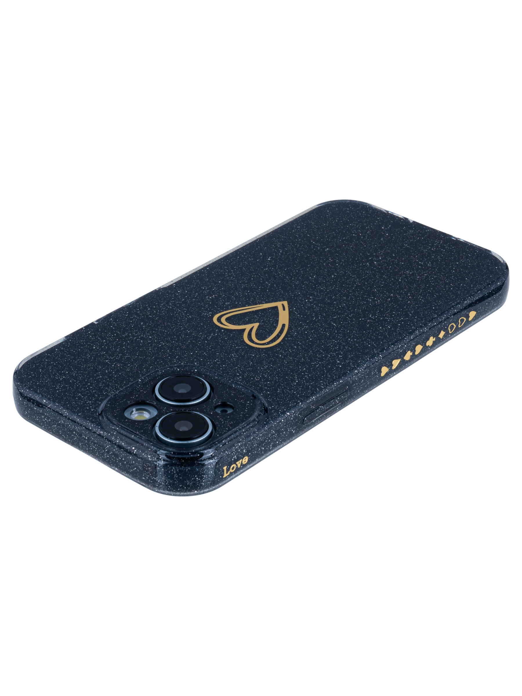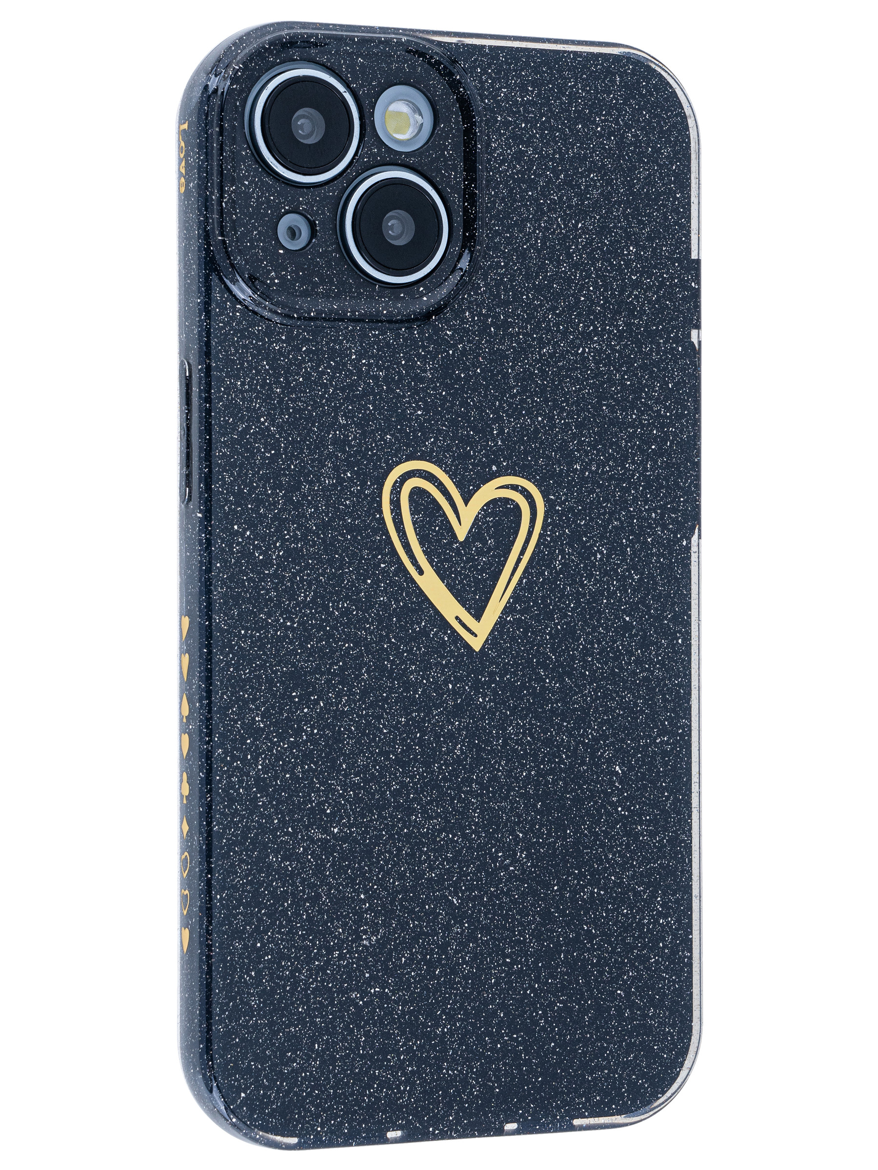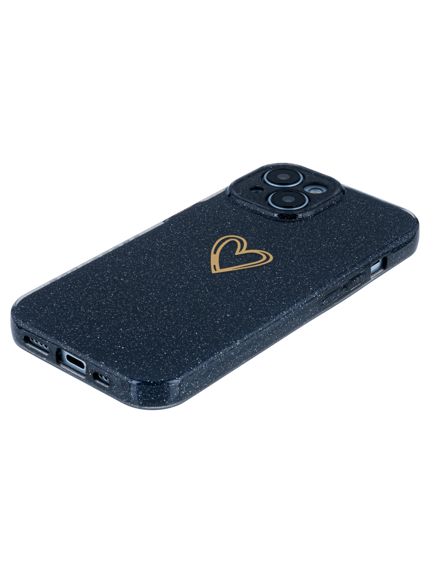 Силиконовый чехол Gold heart для iPhone 15 черный