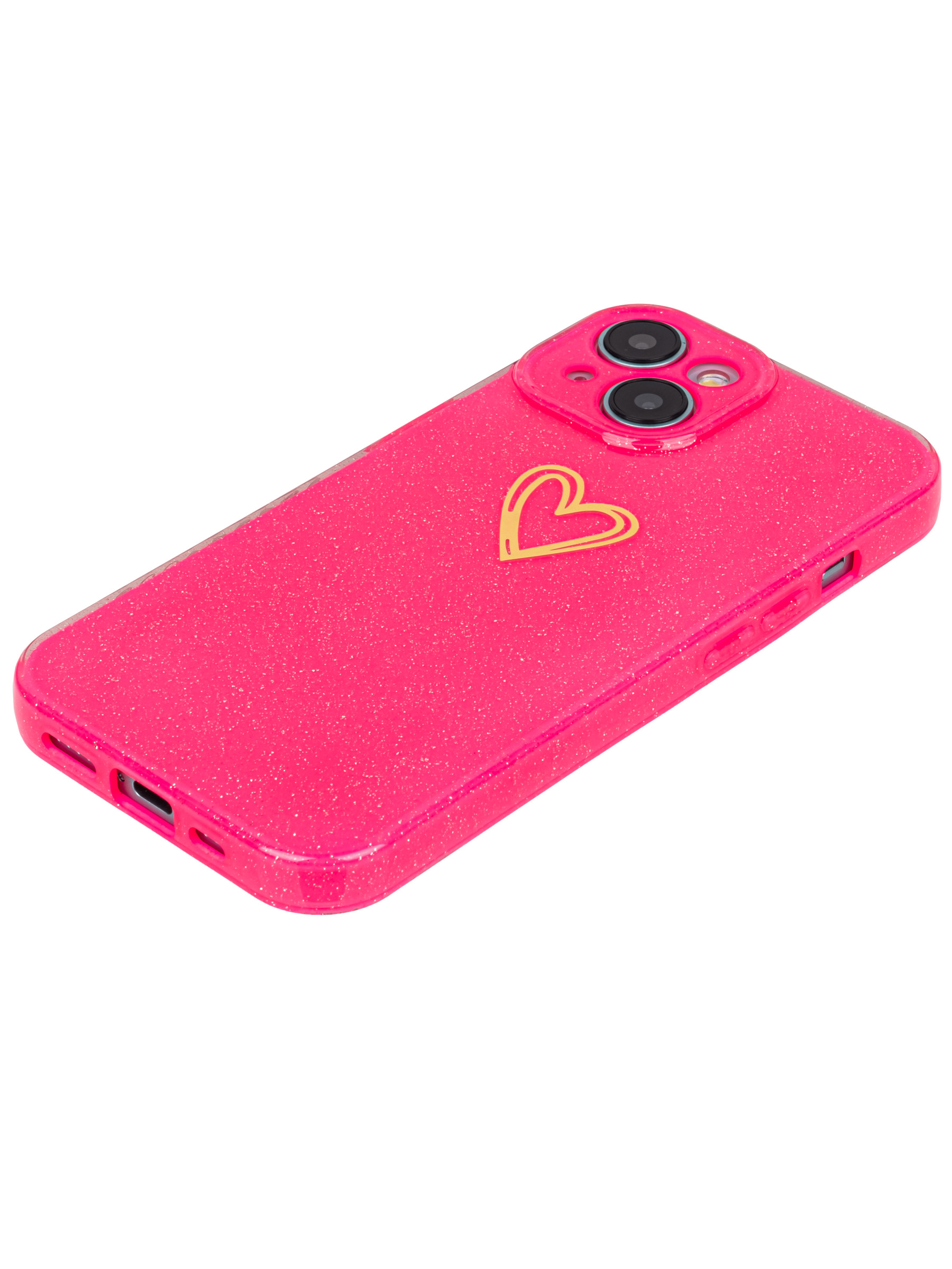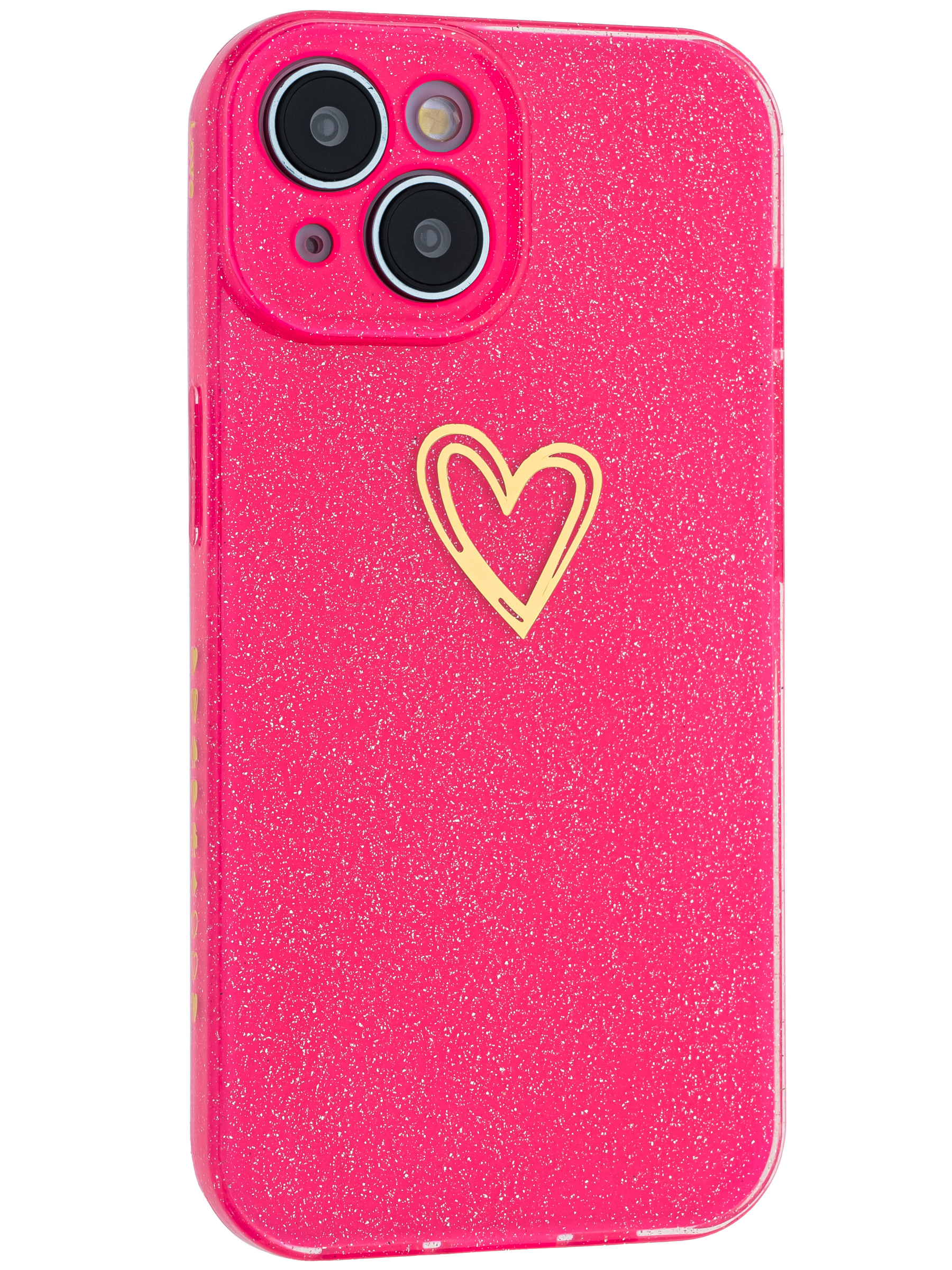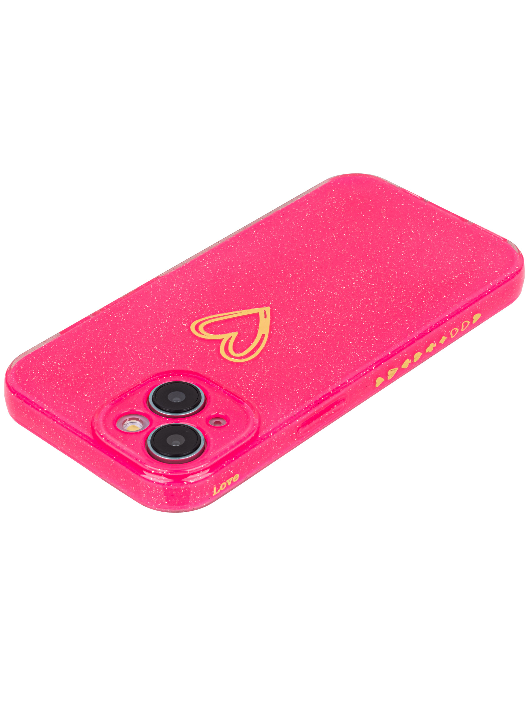 Силиконовый чехол Gold heart для iPhone 15 фуксия