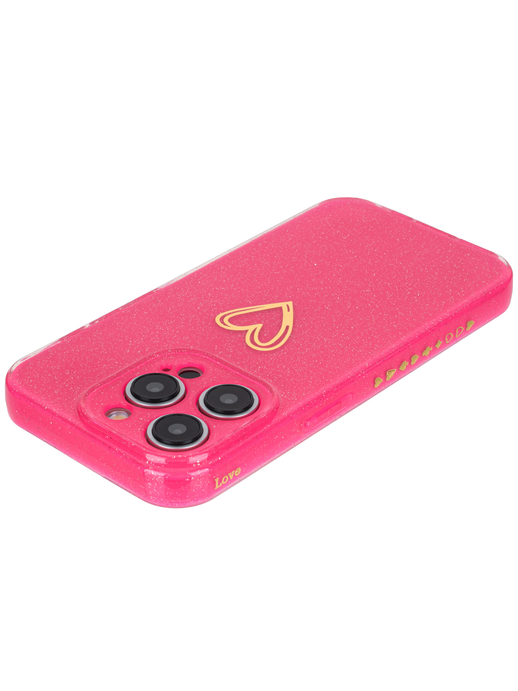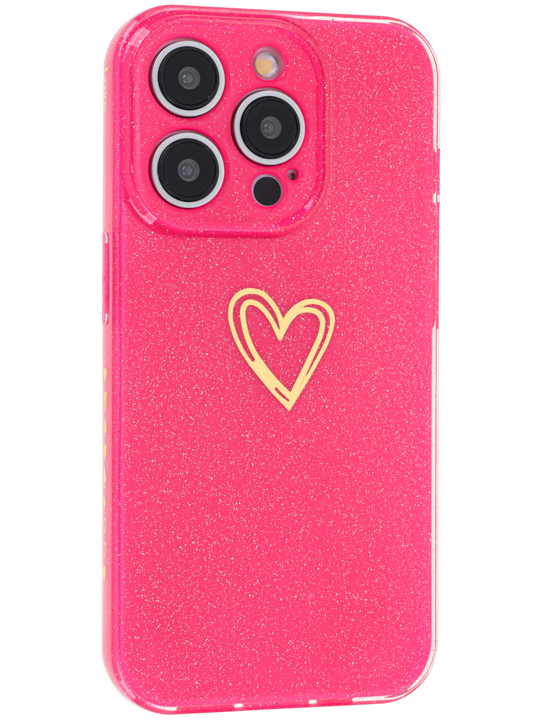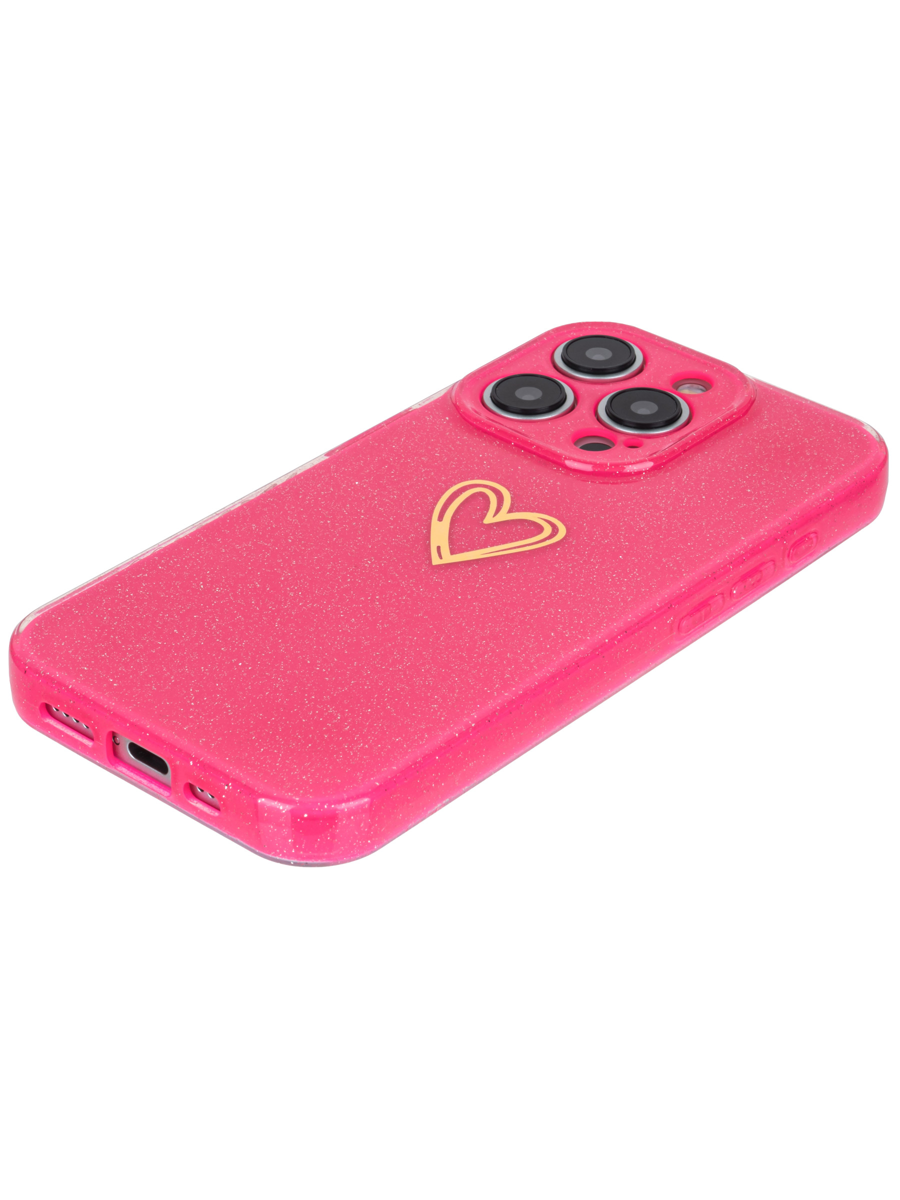 Силиконовый чехол Gold heart для iPhone 15 Pro фуксия