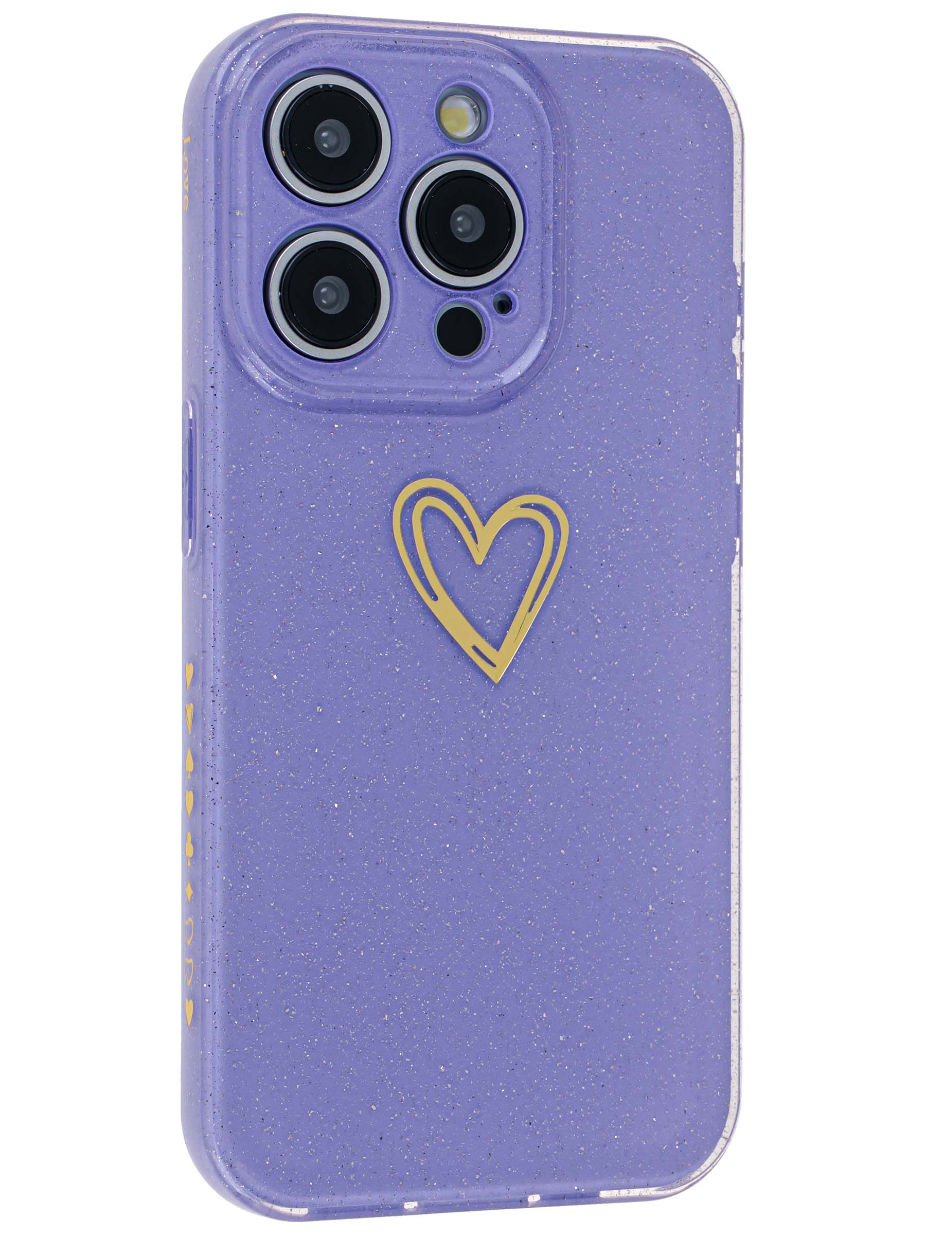 Силиконовый чехол Gold heart для iPhone 15 Pro сиреневый