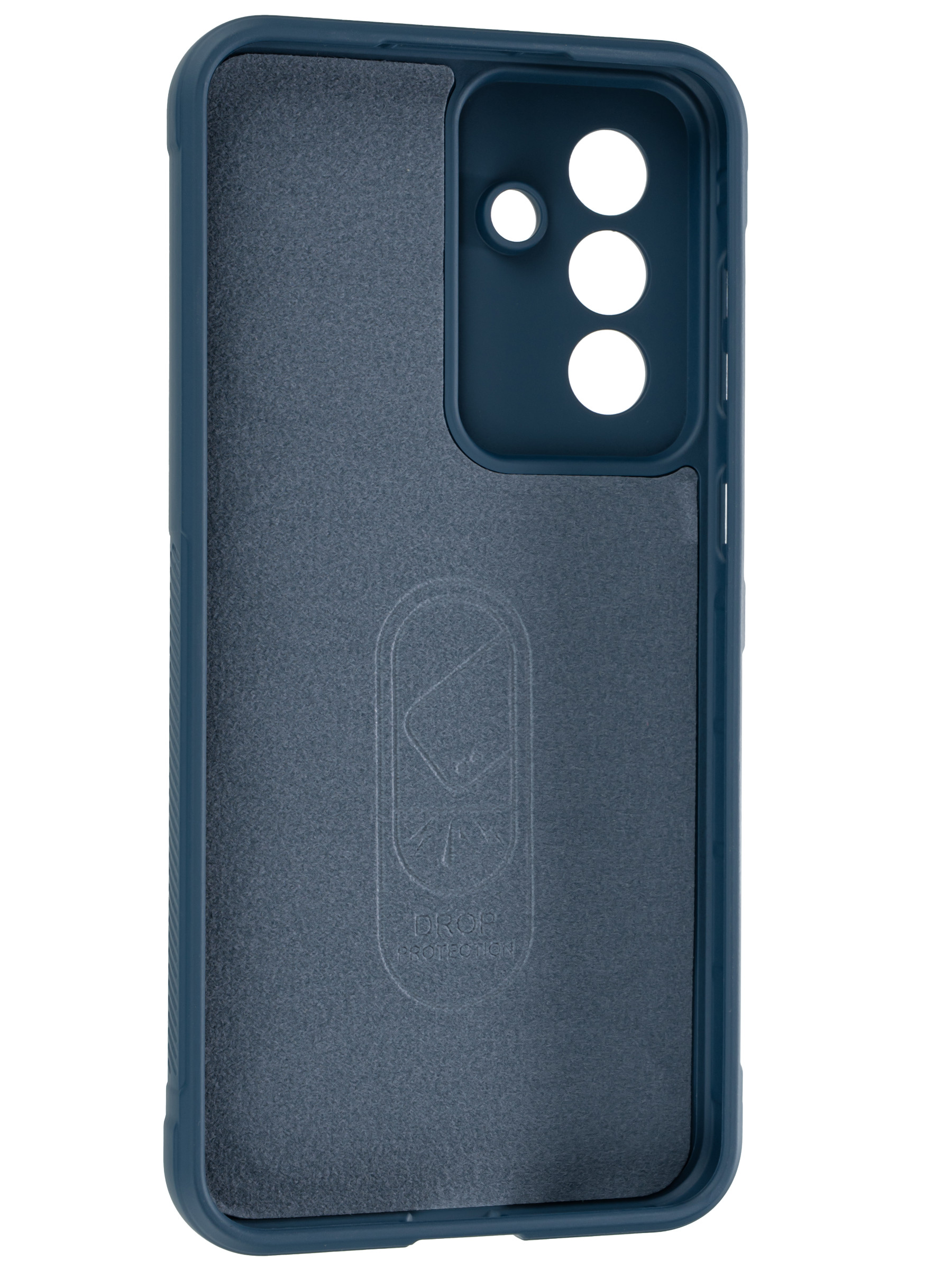 Плотный силиконовый чехол. Внутри чехол бархатный и мягкий, внешняя сторона гладкая и приятная на ощупь.