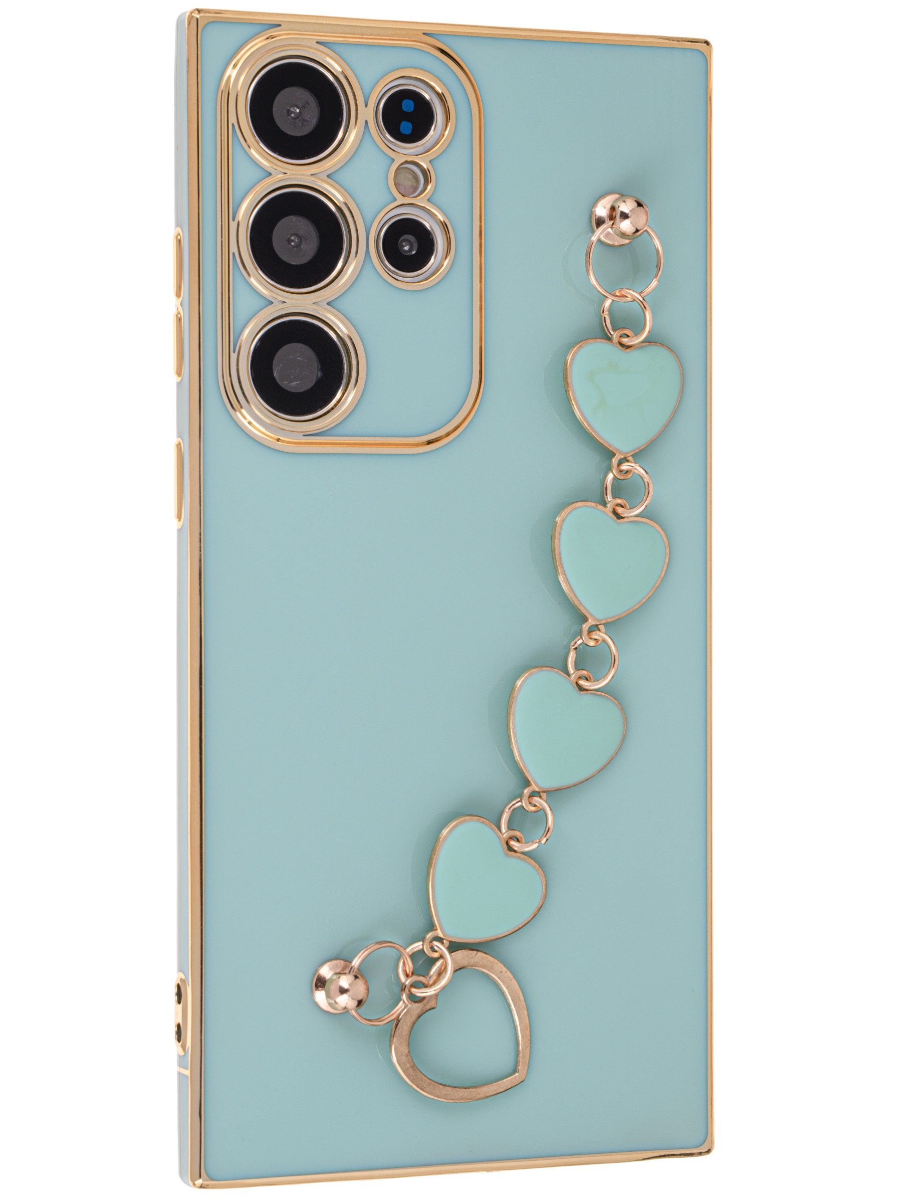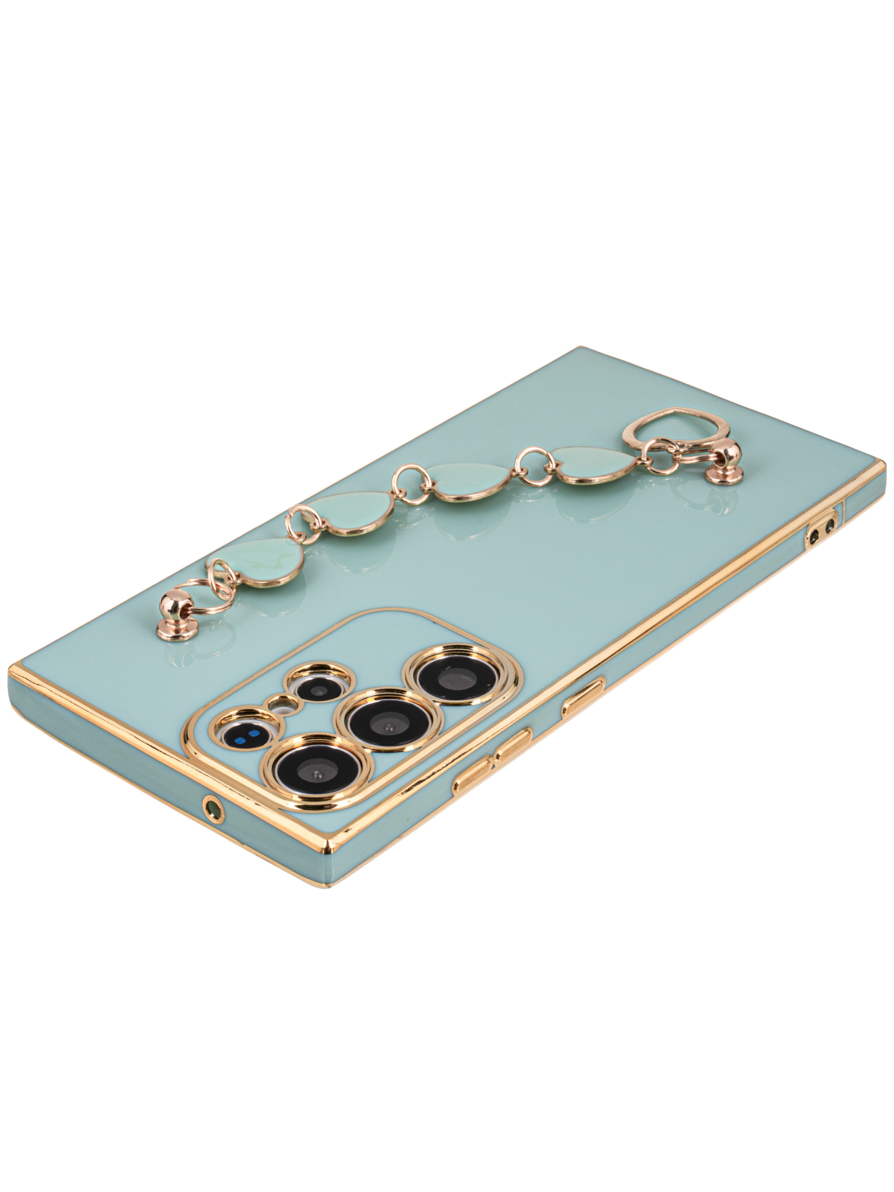 Силиконовый чехол Kitniss на Samsung Galaxy S23 Ultra бирюзовый с браслетом