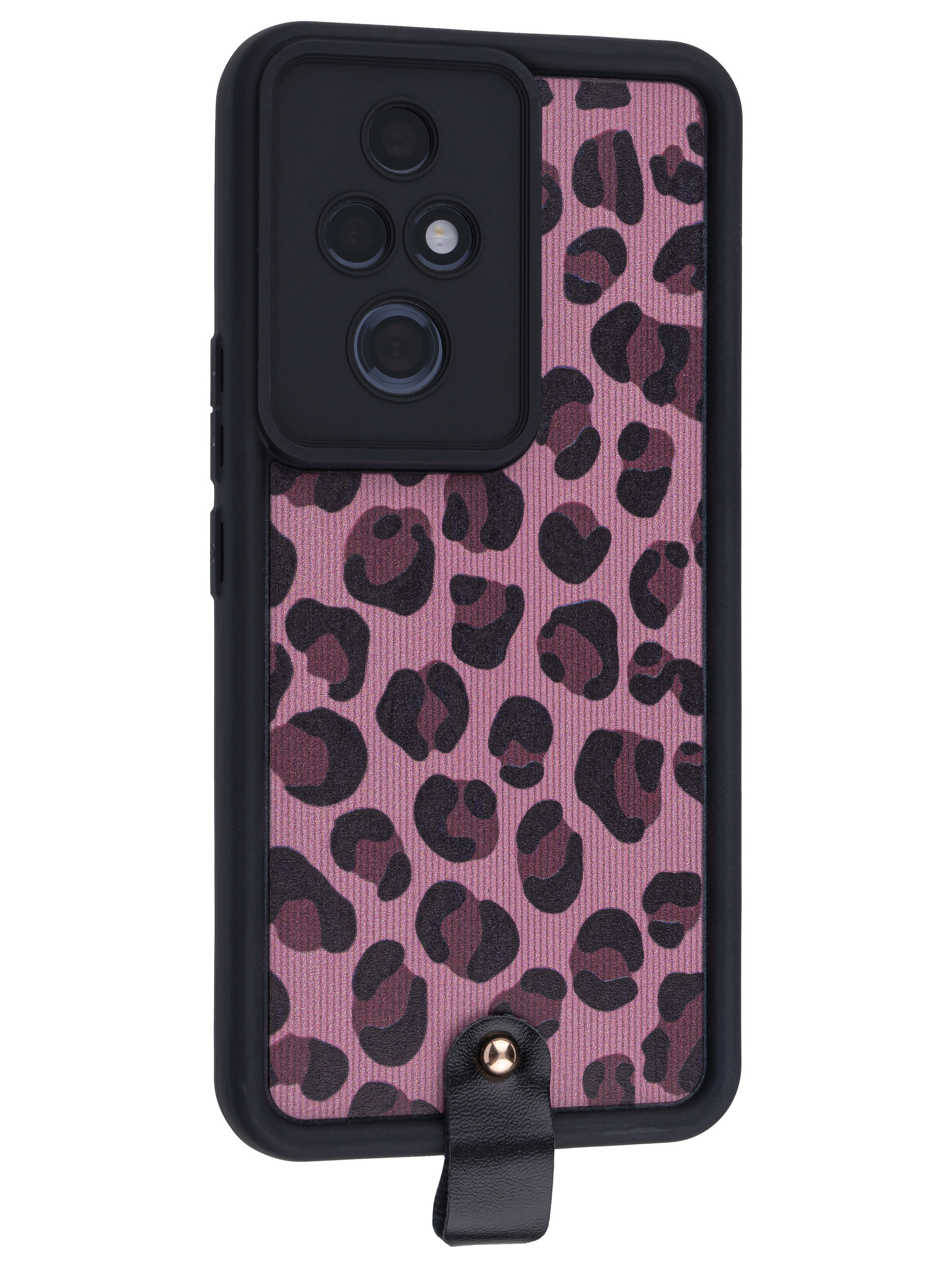 Силиконовый чехол Leopard print для Honor 200 Pro розовый с ручкой