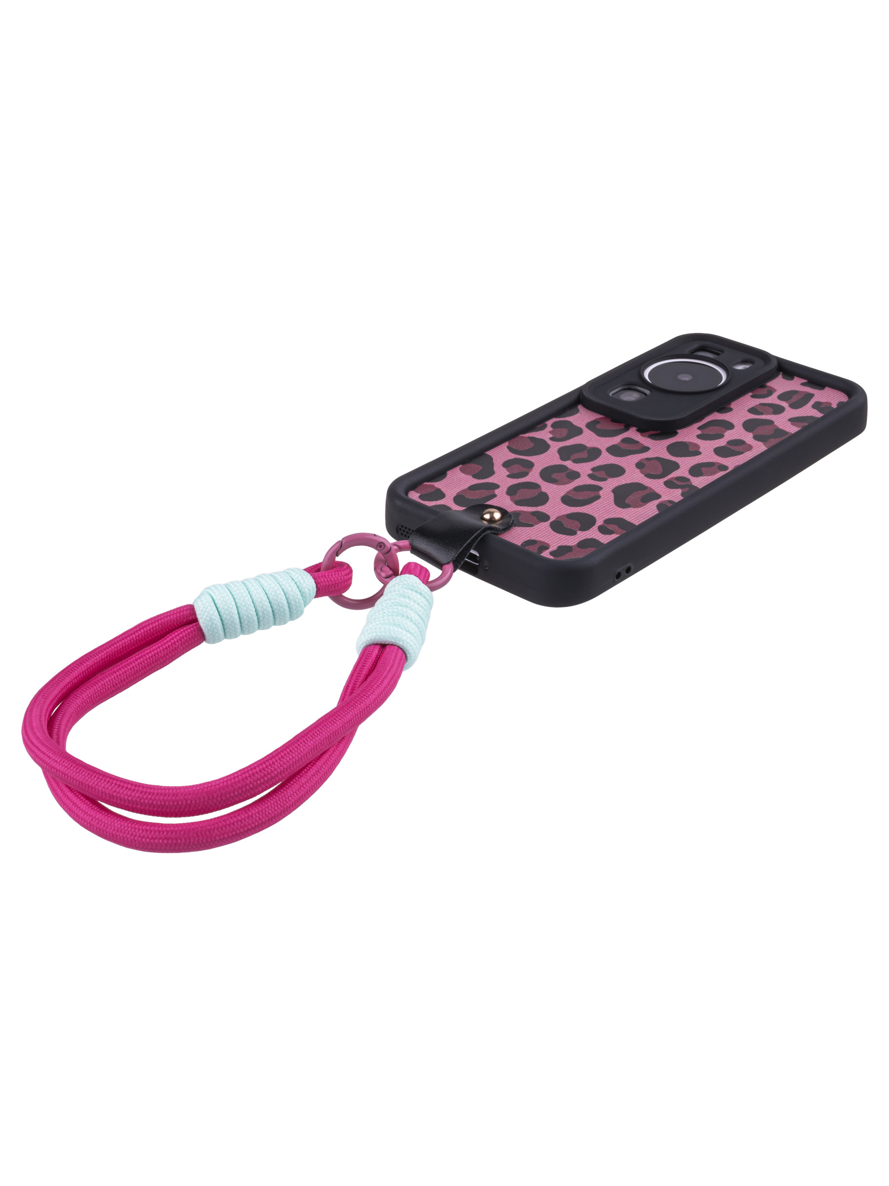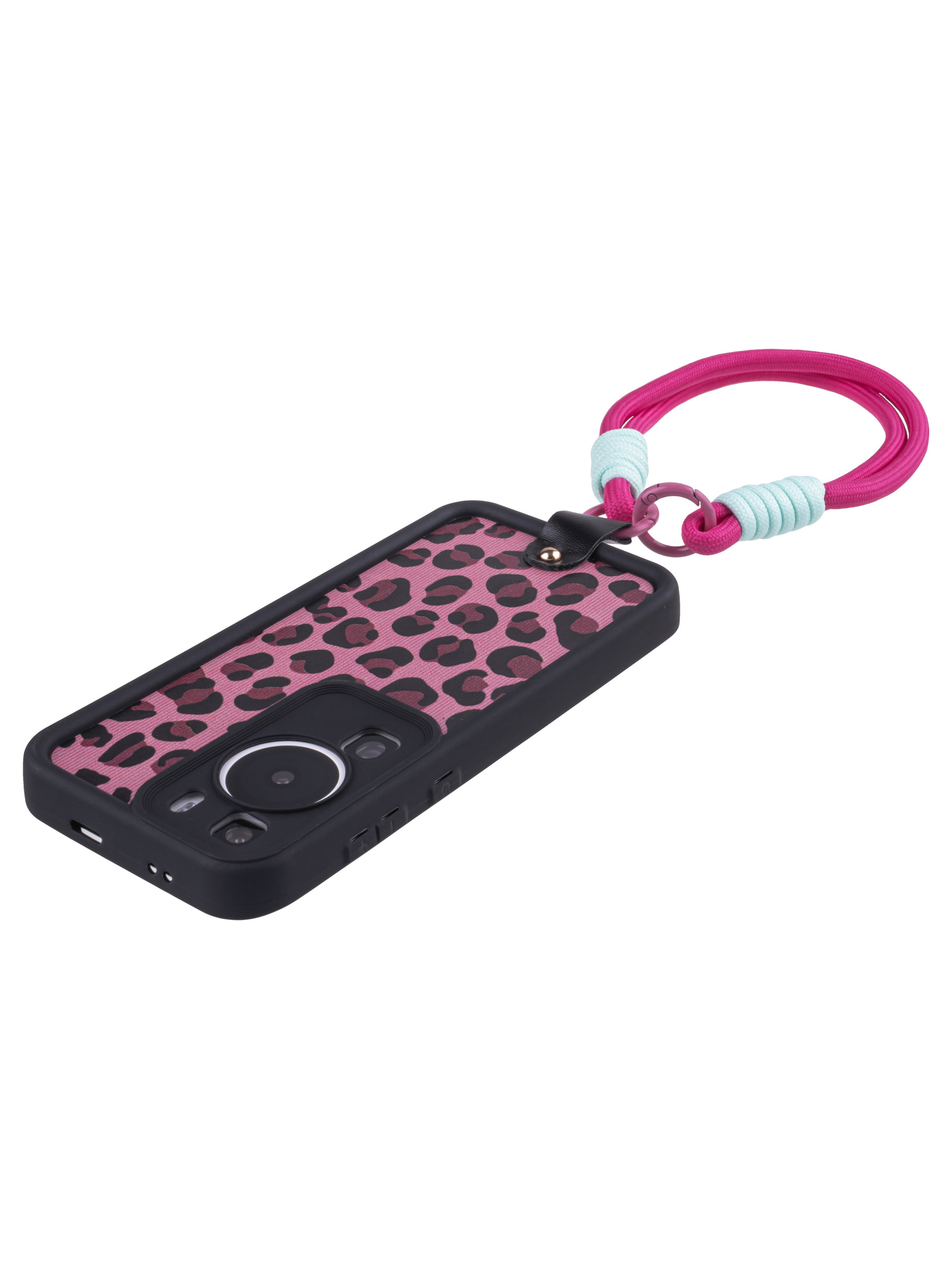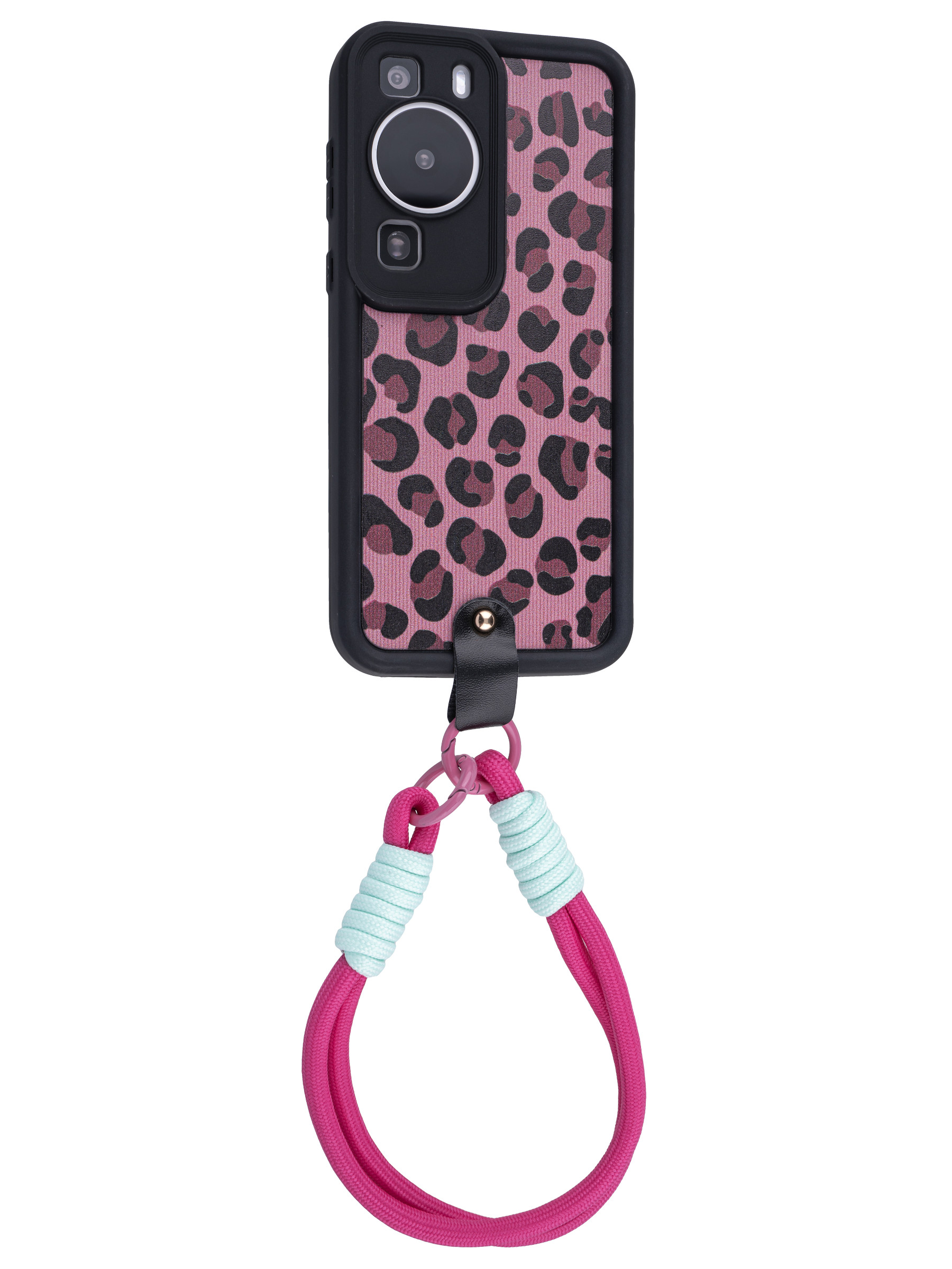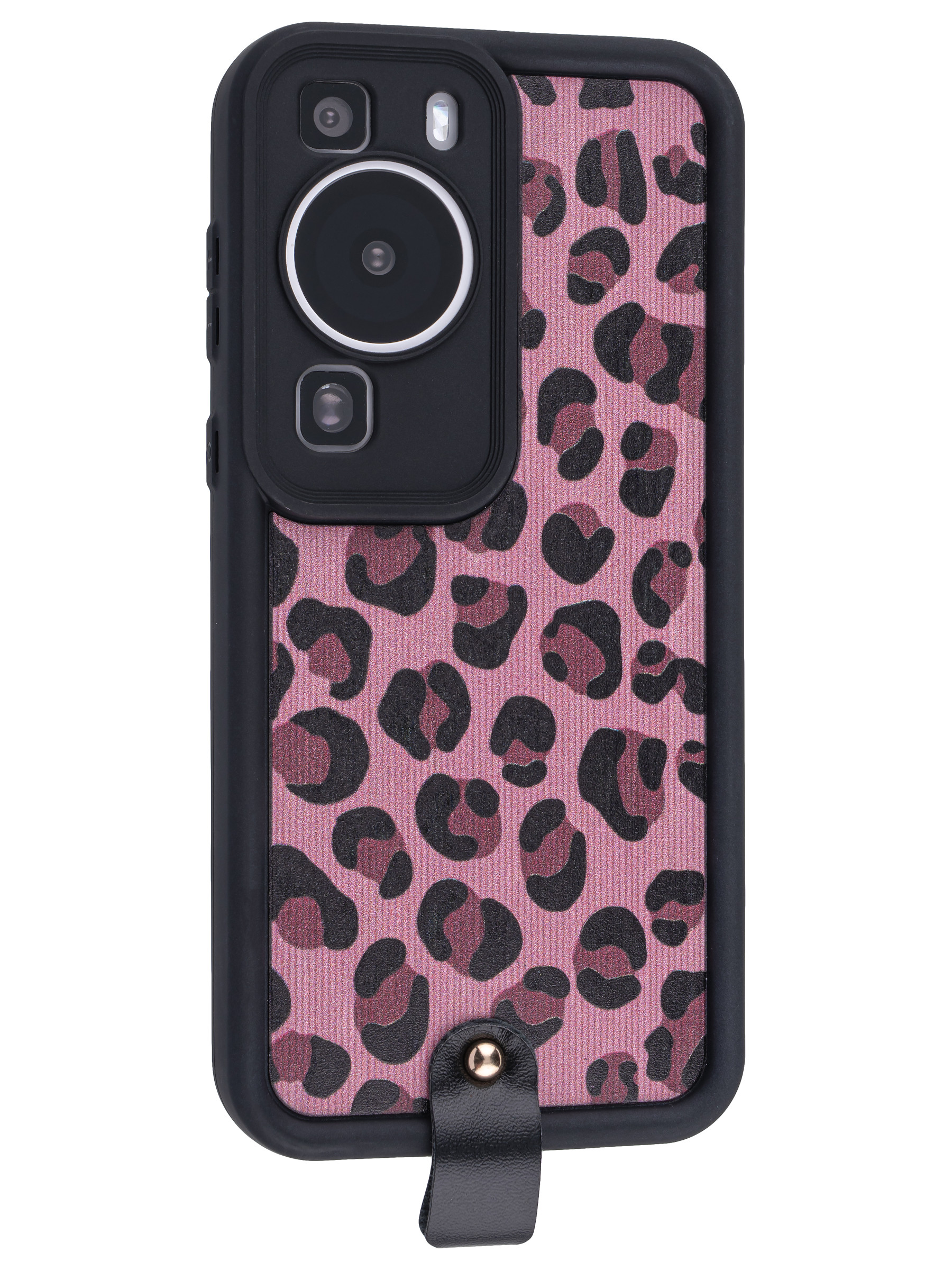 Силиконовый чехол Leopard print для Huawei P60 розовый с ручкой