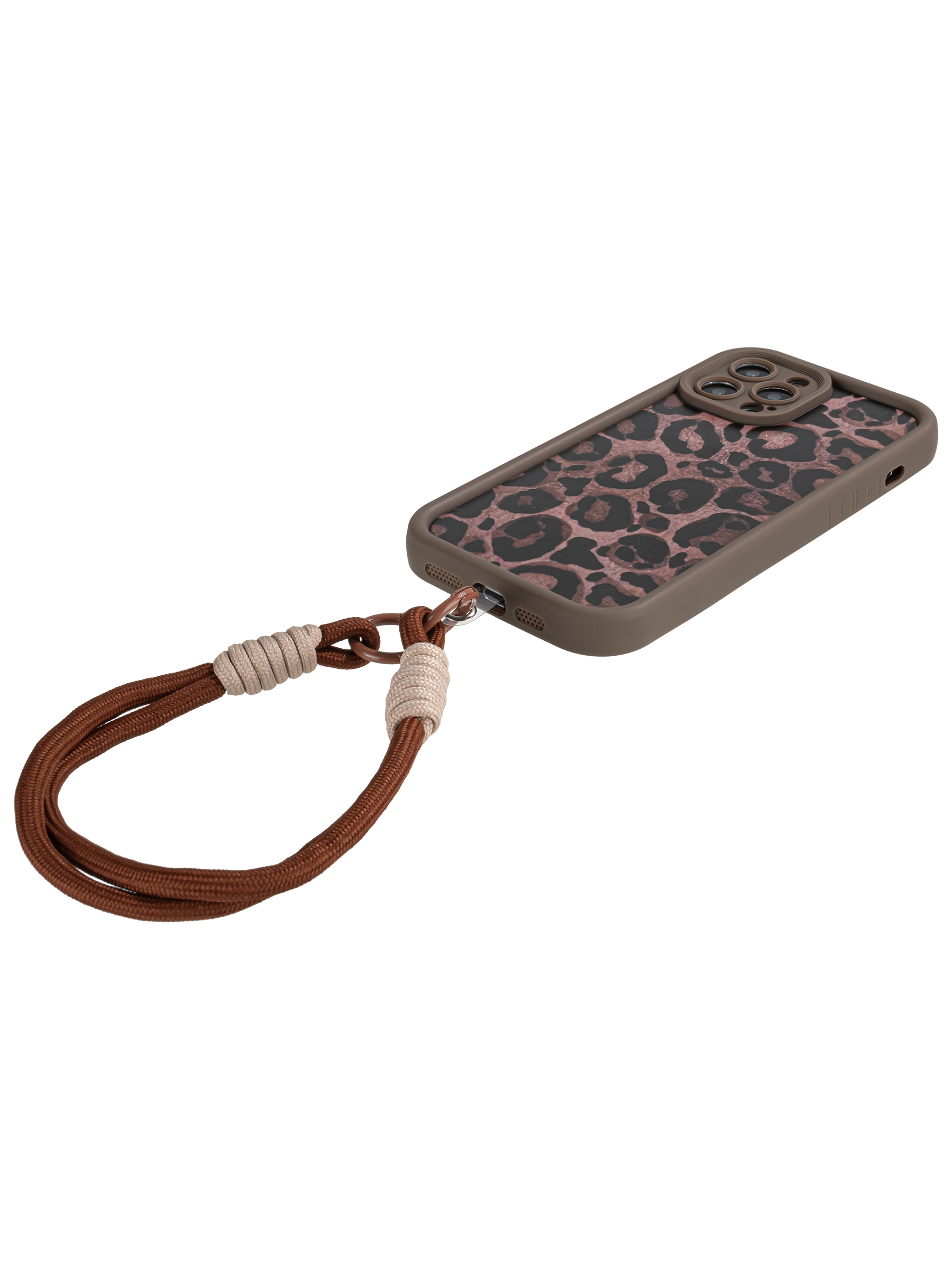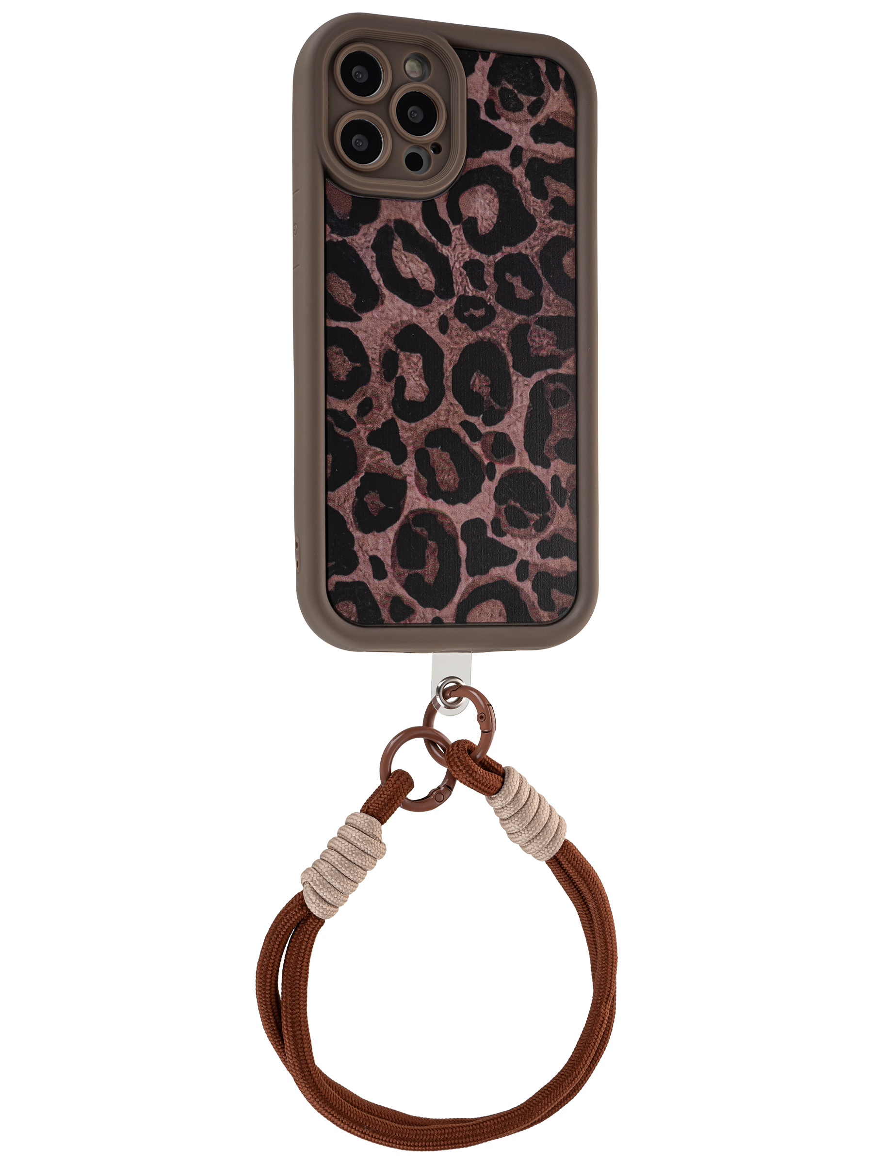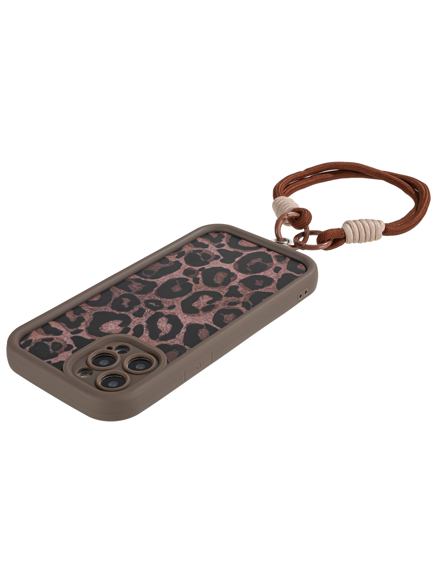 Силиконовый чехол Leopard print для iPhone 12 Pro Max коричневый с ручкой