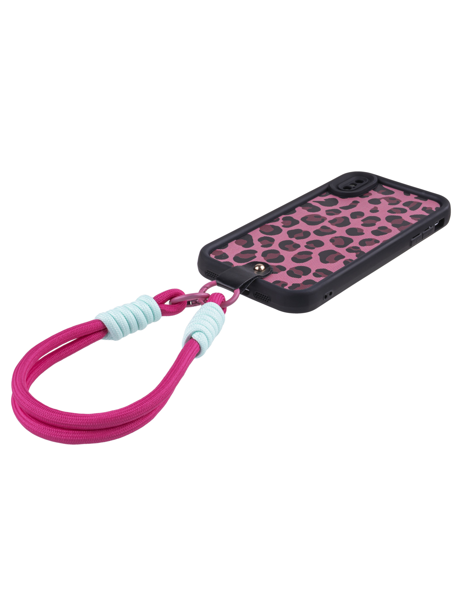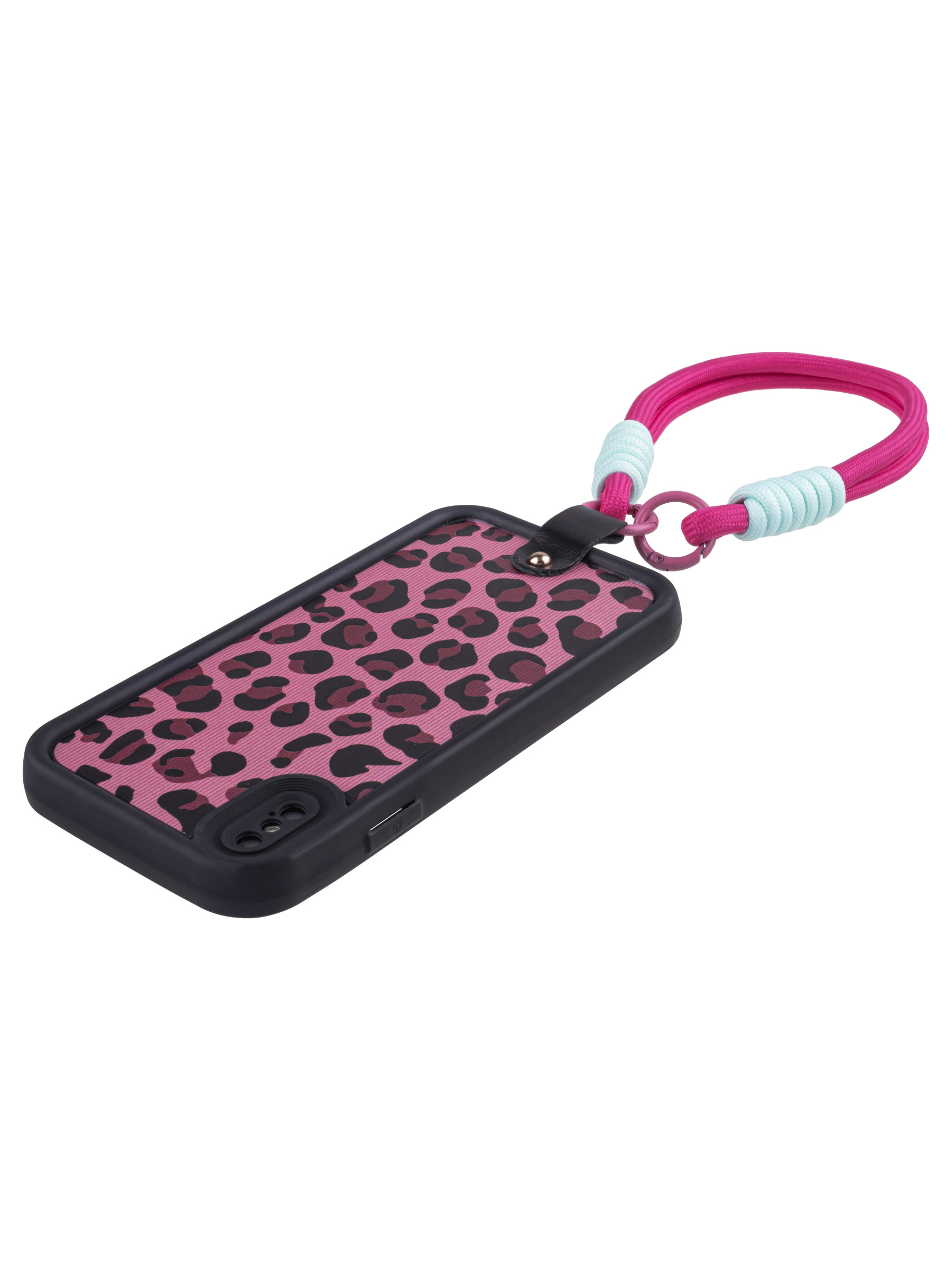Силиконовый чехол Leopard print для iPhone XS Max розовый с ручкой