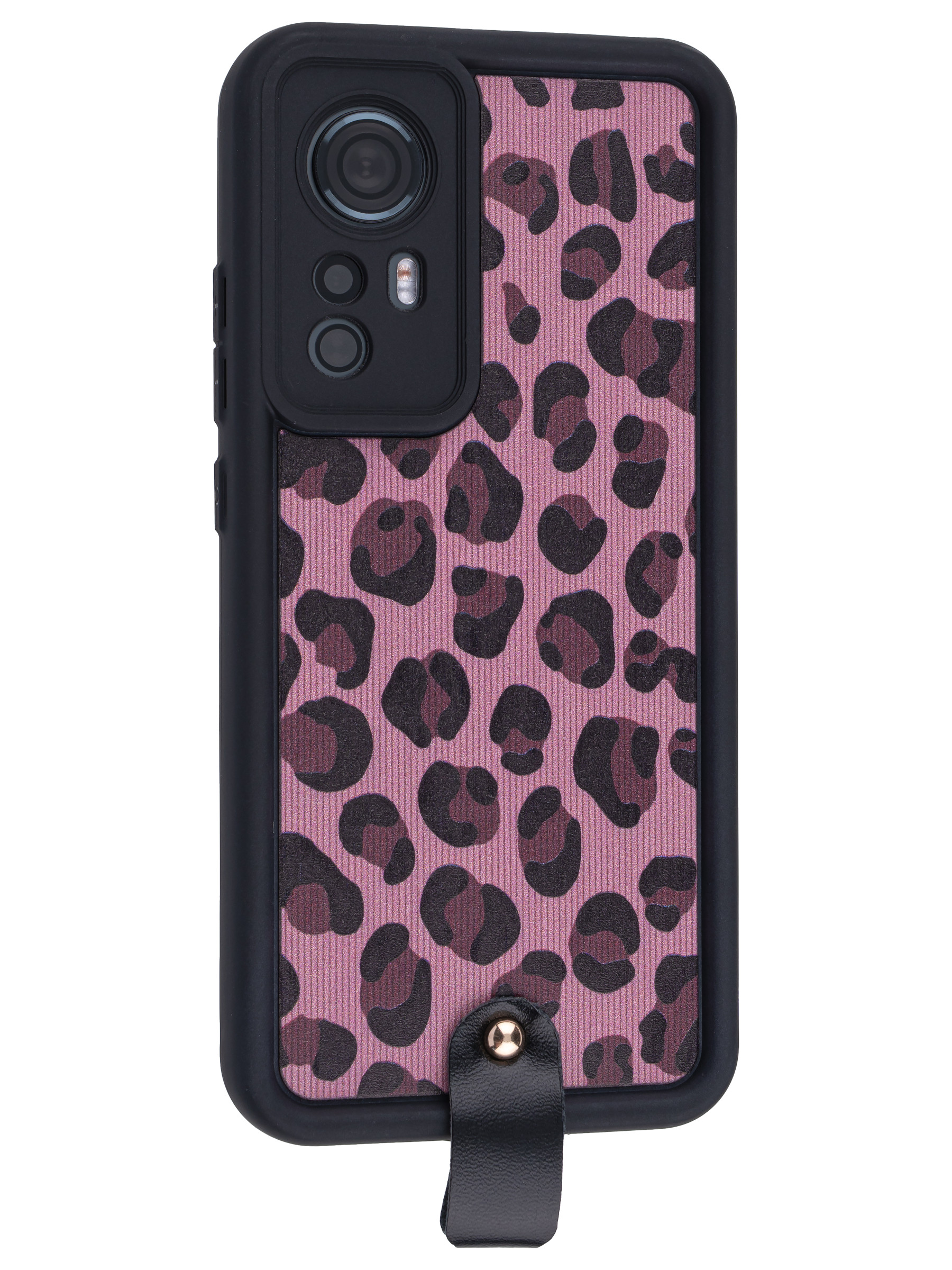 Силиконовый чехол Leopard print для Xiaomi 12 / 12x / 12s розовый с ручкой