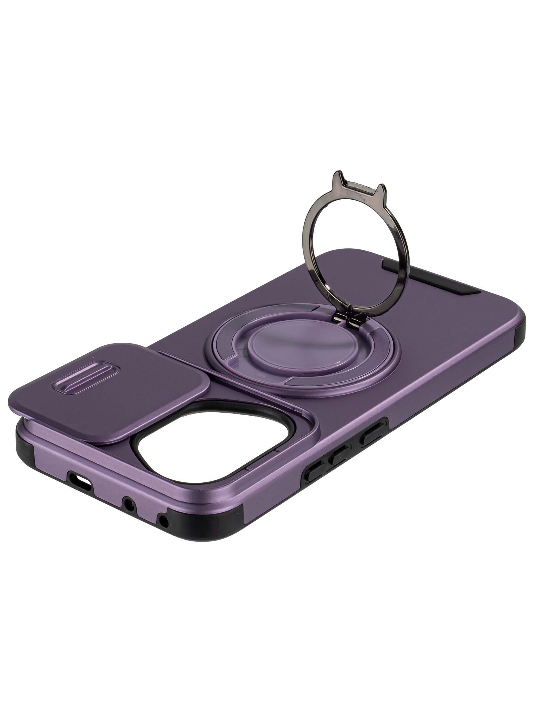 Силиконовый чехол с шторкой для защиты камеры и практичным металлическим кольцом-подставкой. Этот чехол не только надежно защищает ваше устройство от царапин и повреждений, но и радует своими полезными функциями. Шторка для камеры защищает линзы от загрязнений и обеспечивает дополнительную защиту, а металлическое кольцо-подставка удобно для просмотра видео и фиксации на магнитных держателях в автомобиле.