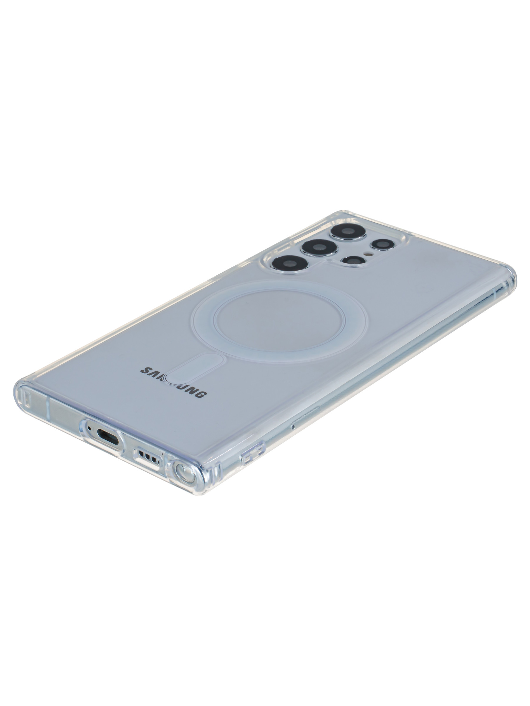 Силиконовый чехол Magsafe для Samsung Galaxy S22 Ultra прозрачный