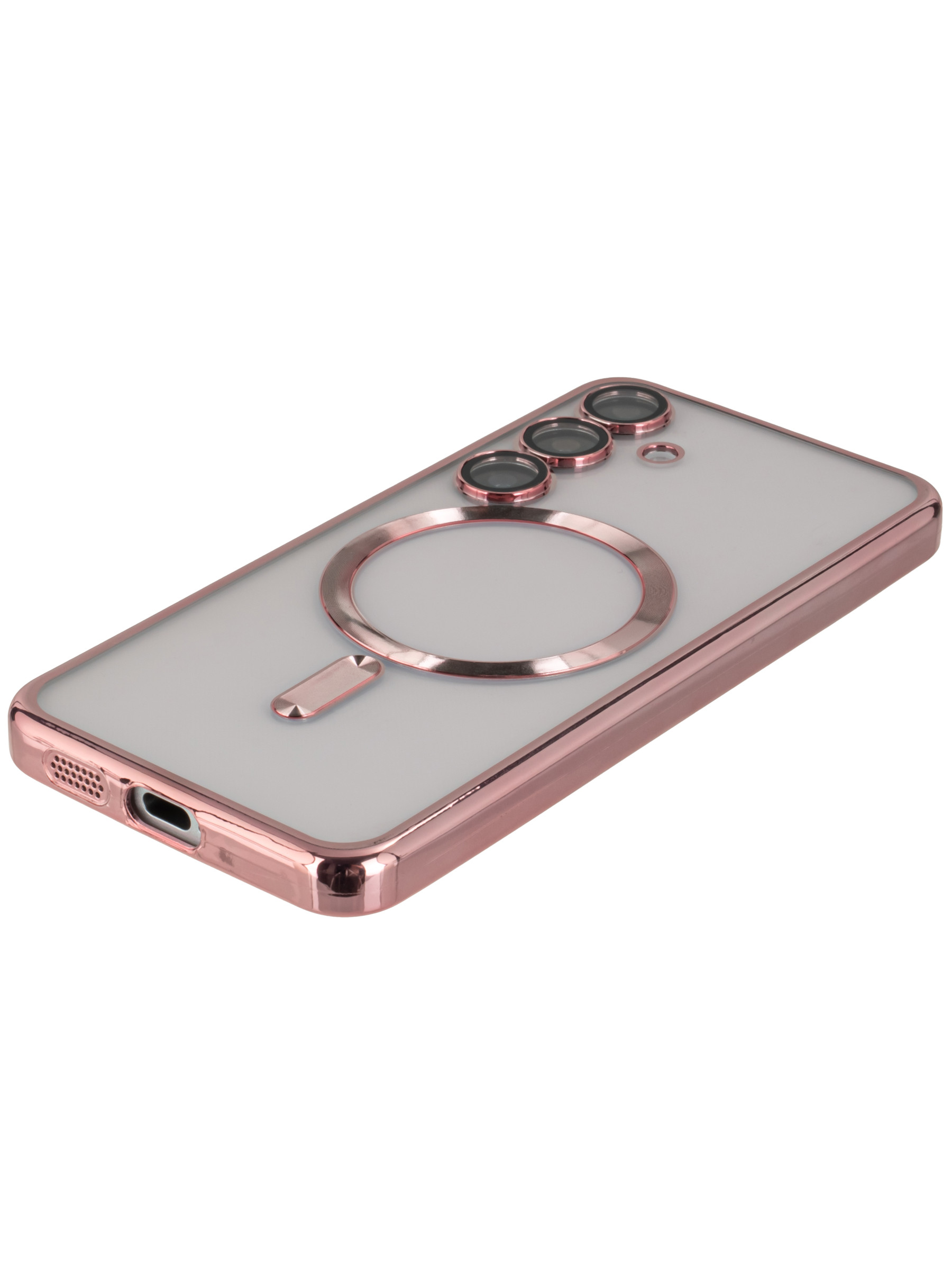 Силиконовый чехол Metallic для Samsung Galaxy S24 розовый (для Magsafe)