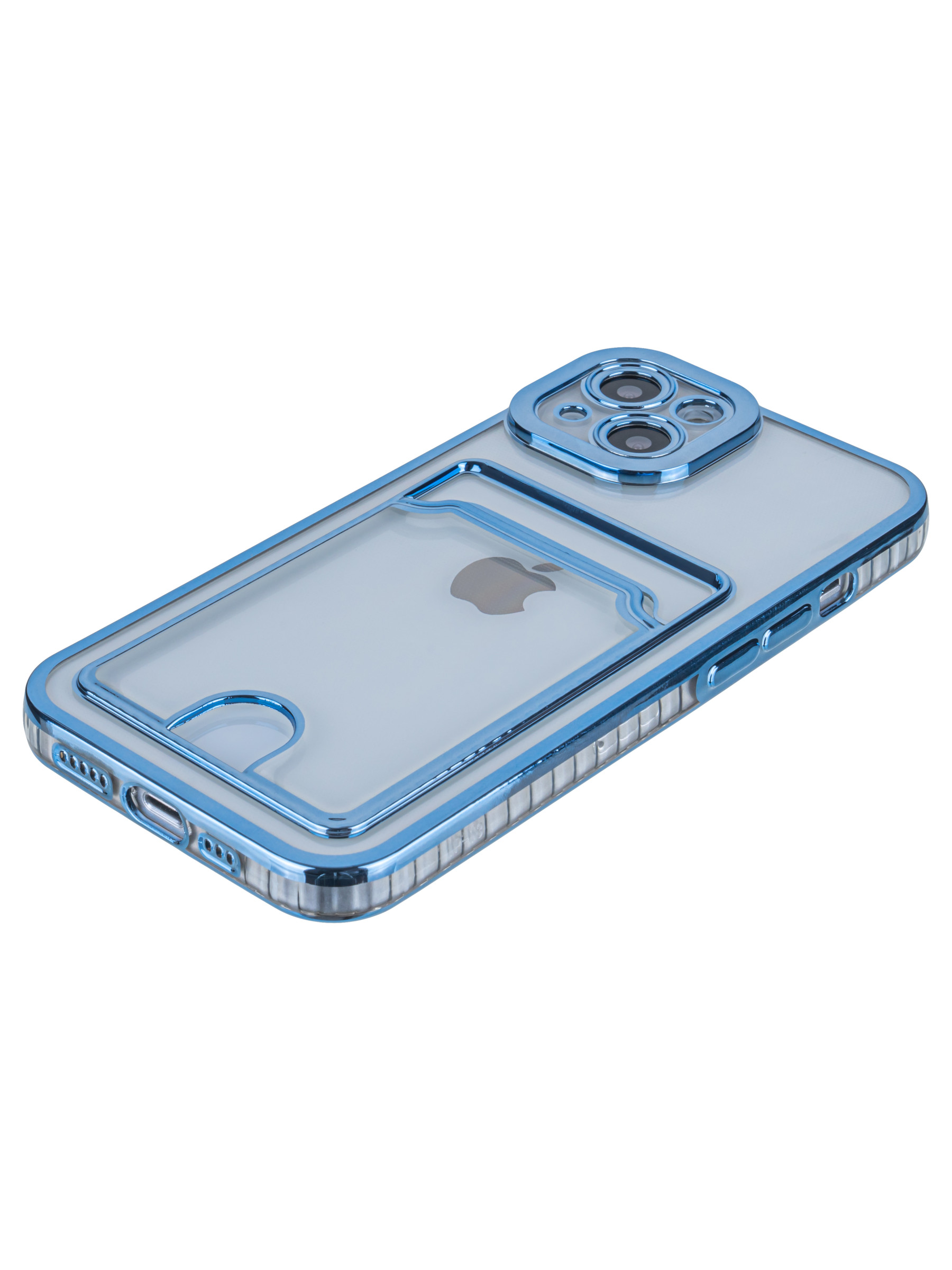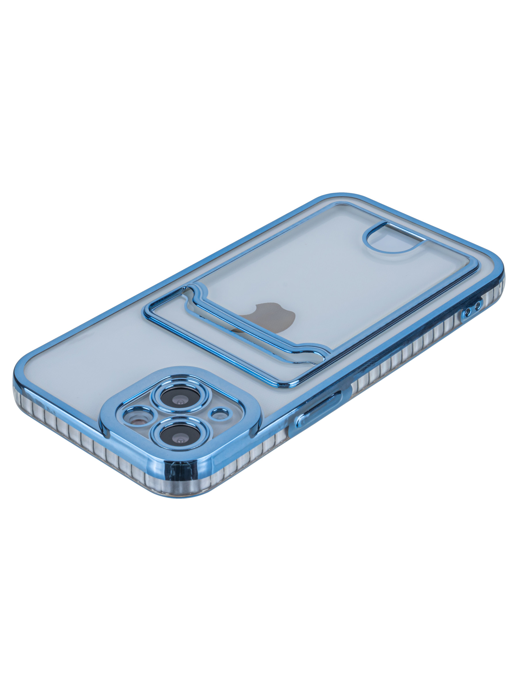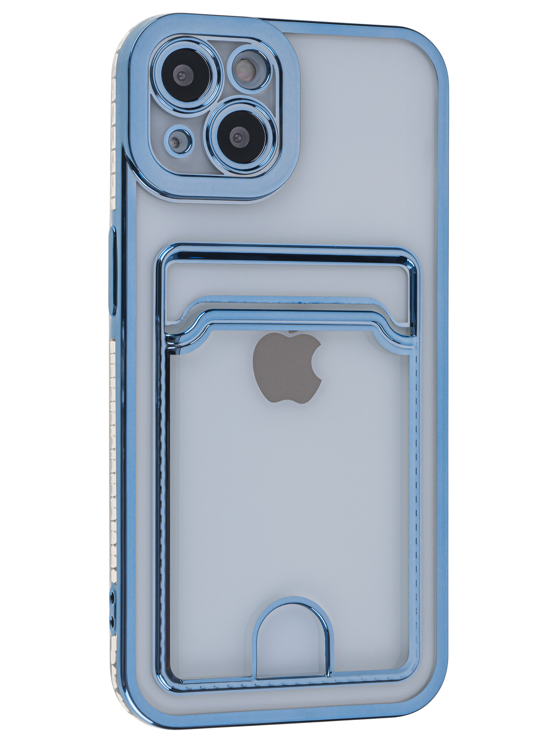 Силиконовый чехол Metallic rim для iPhone 13 голубой (с вырезом для карт)