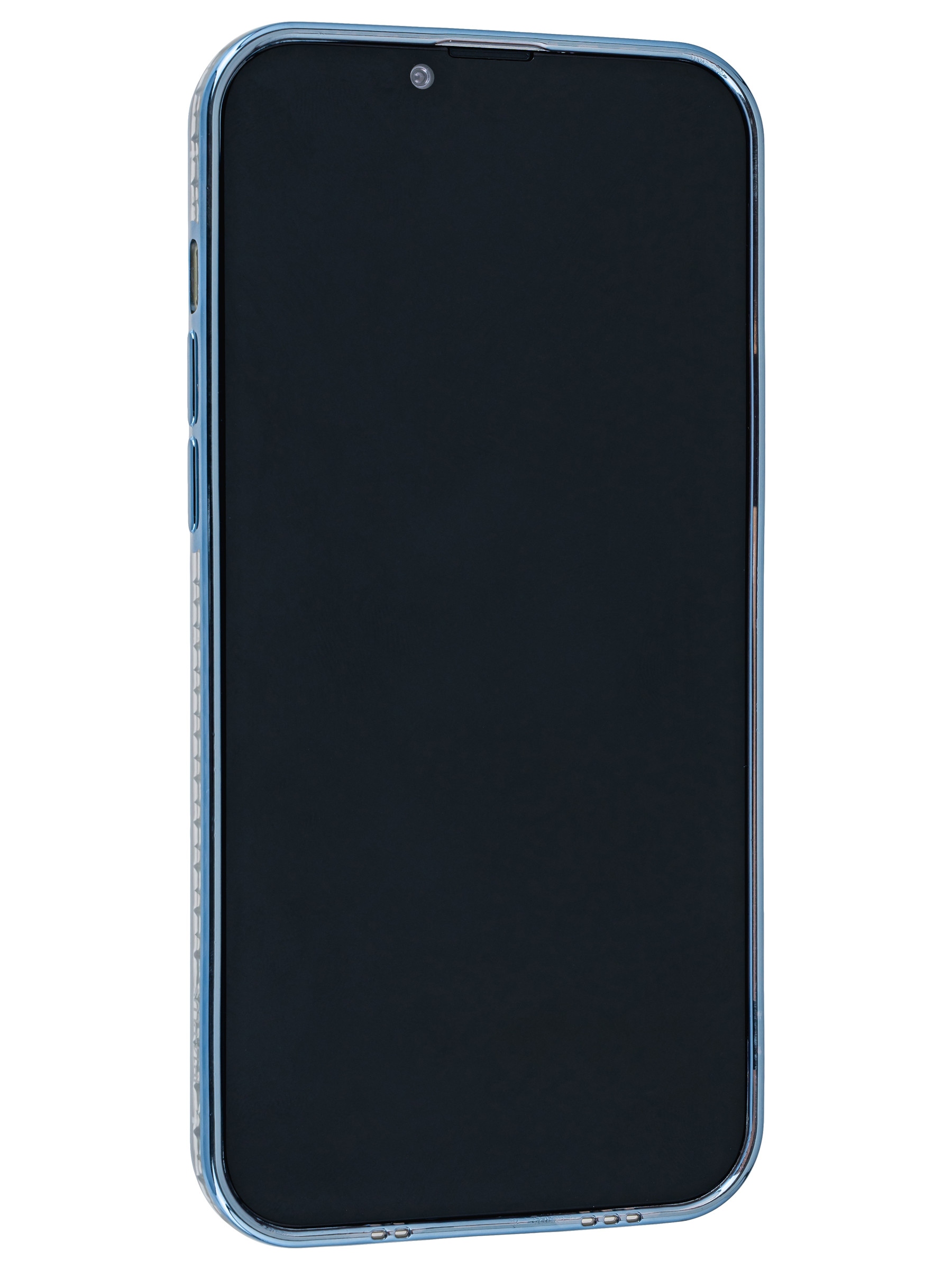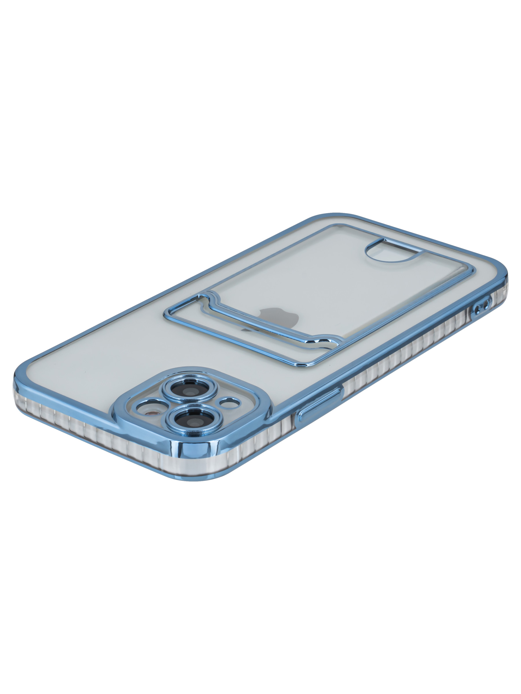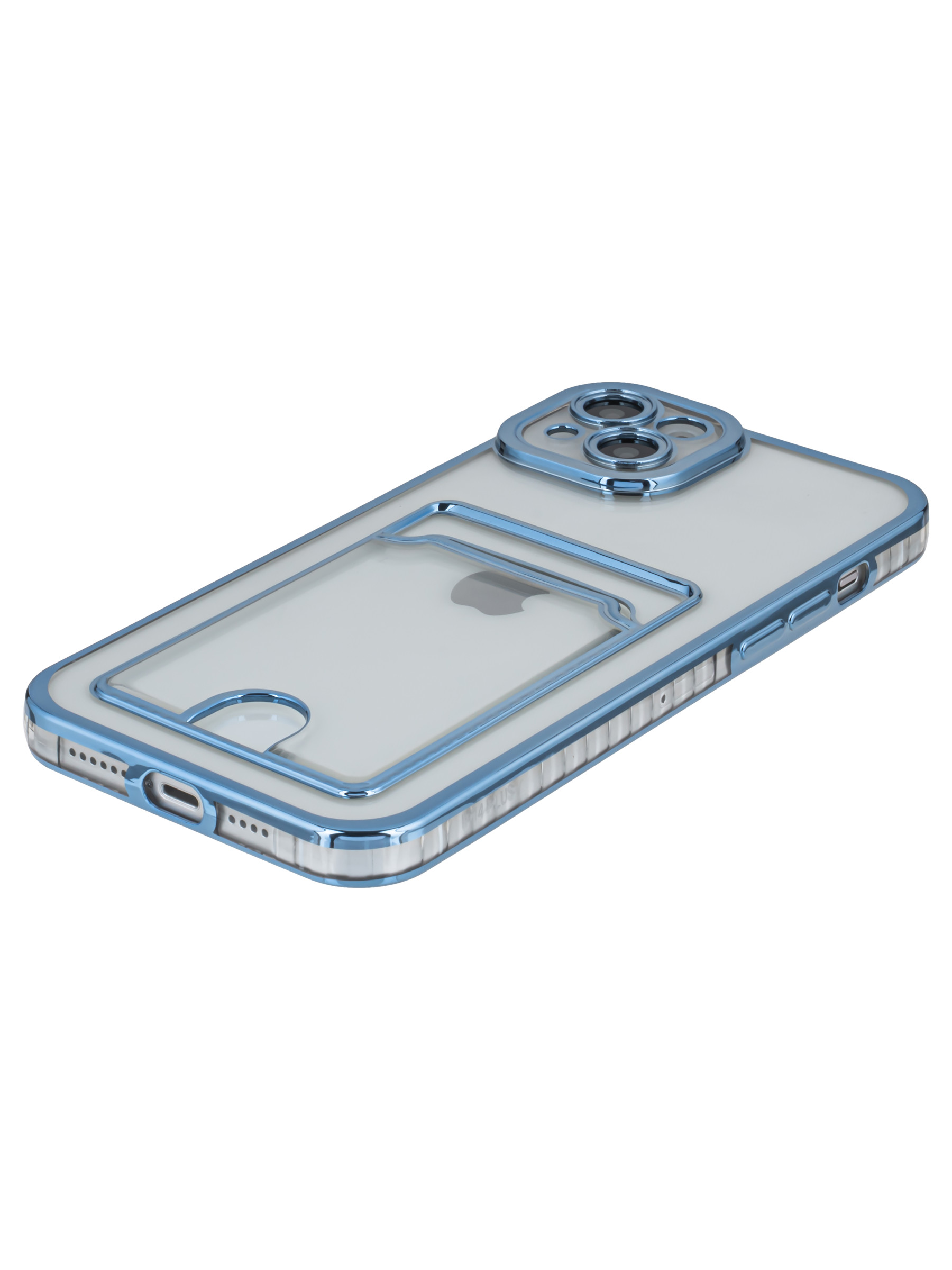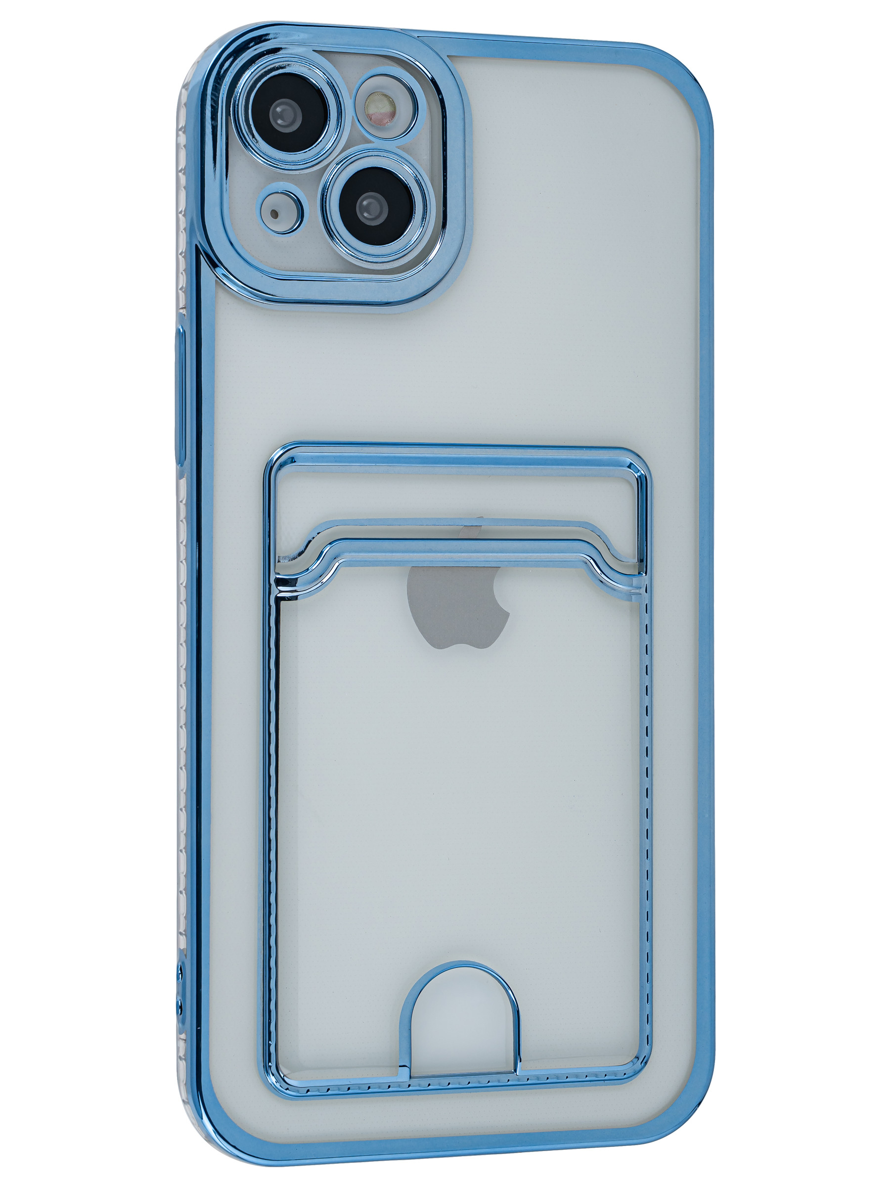 Силиконовый чехол Metallic rim для iPhone 14 Plus / 15 Plus голубой (с вырезом для карт)