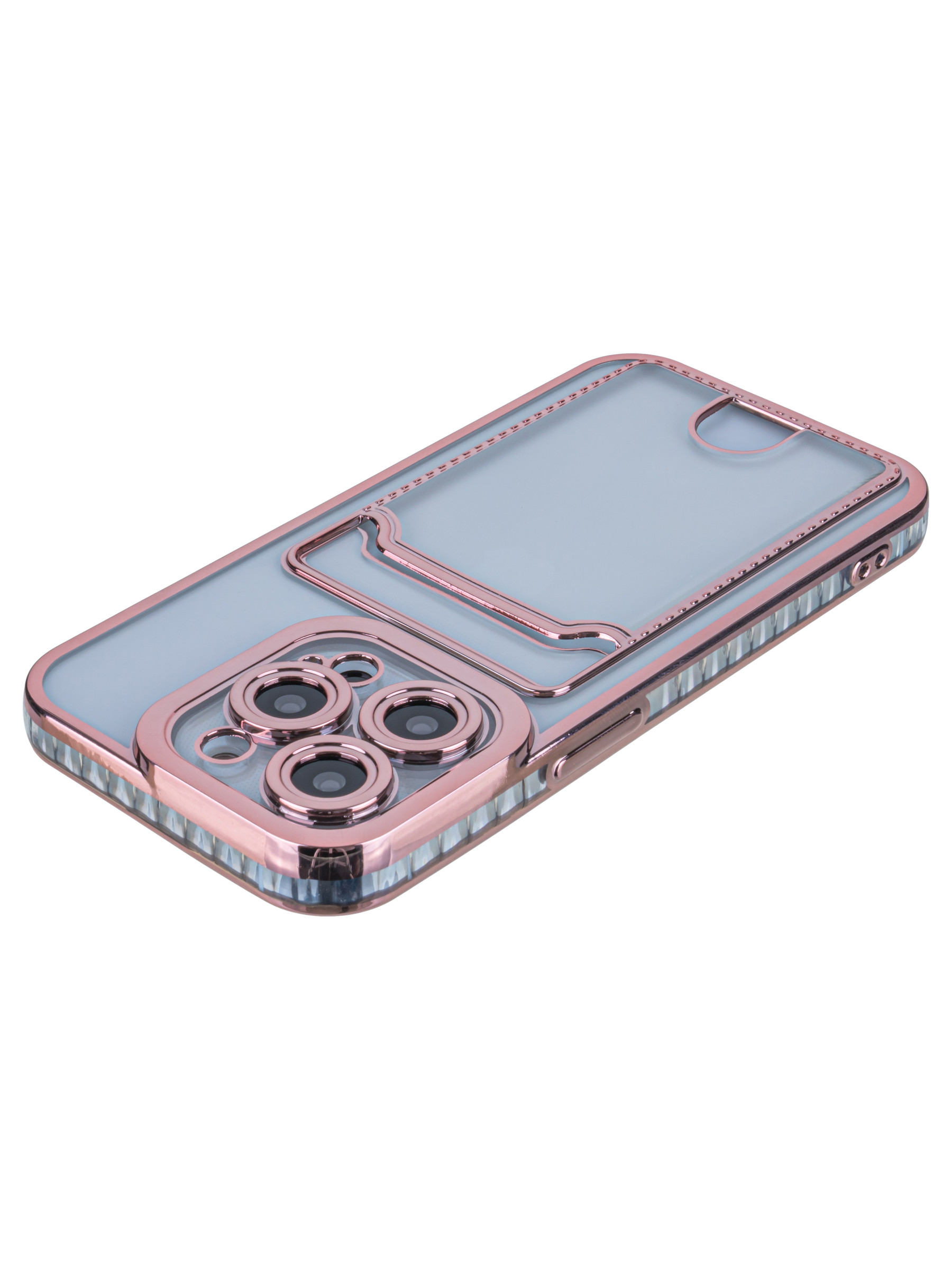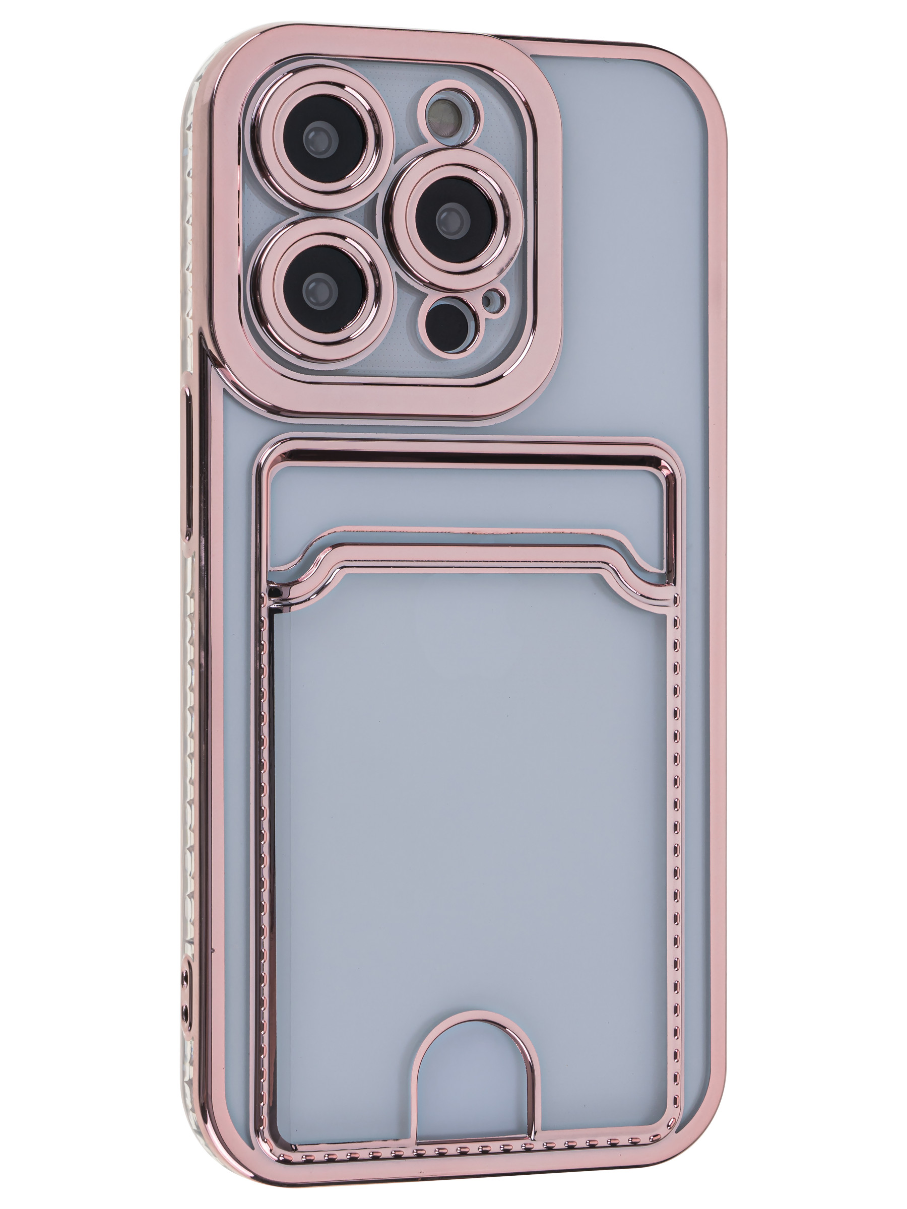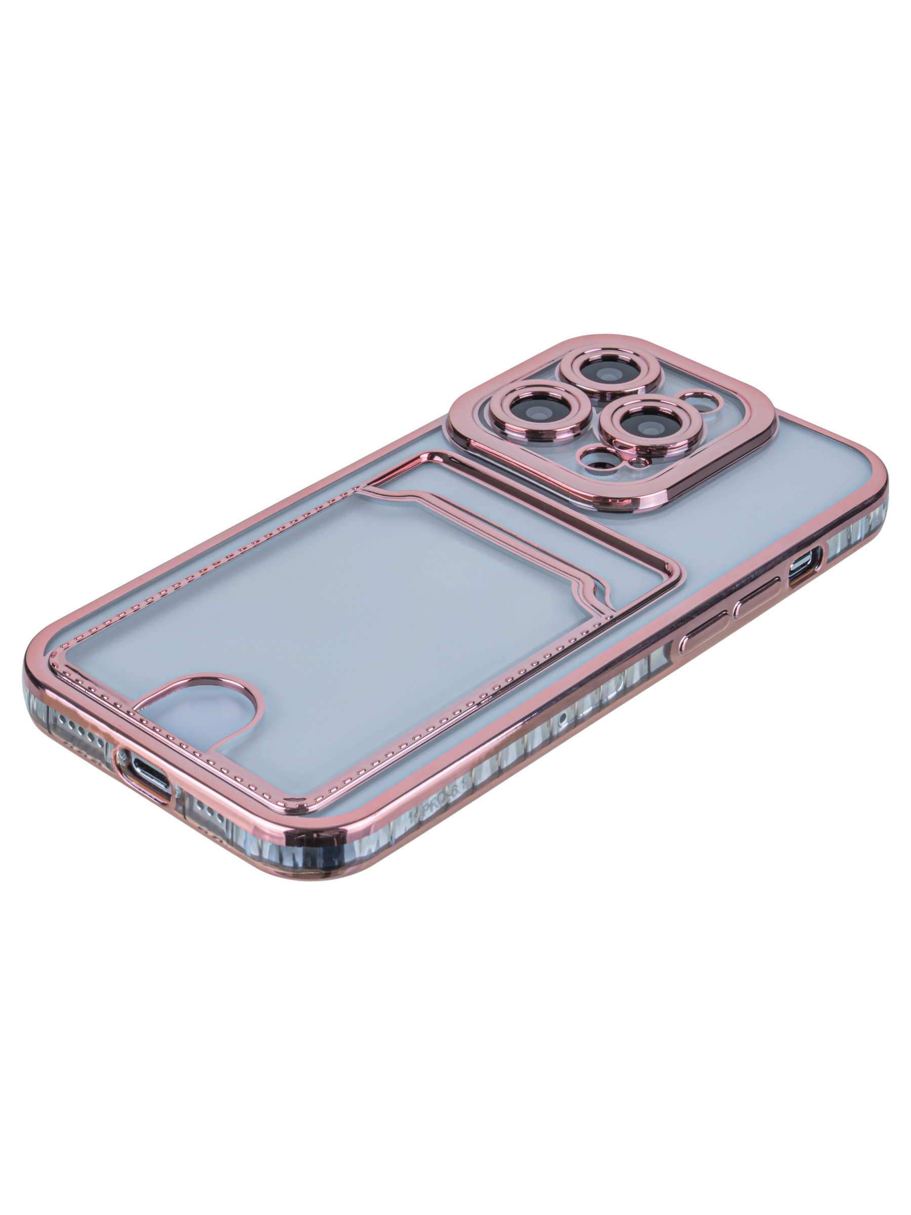 Силиконовый чехол Metallic rim для iPhone 14 Pro розовый (с вырезом для карт)