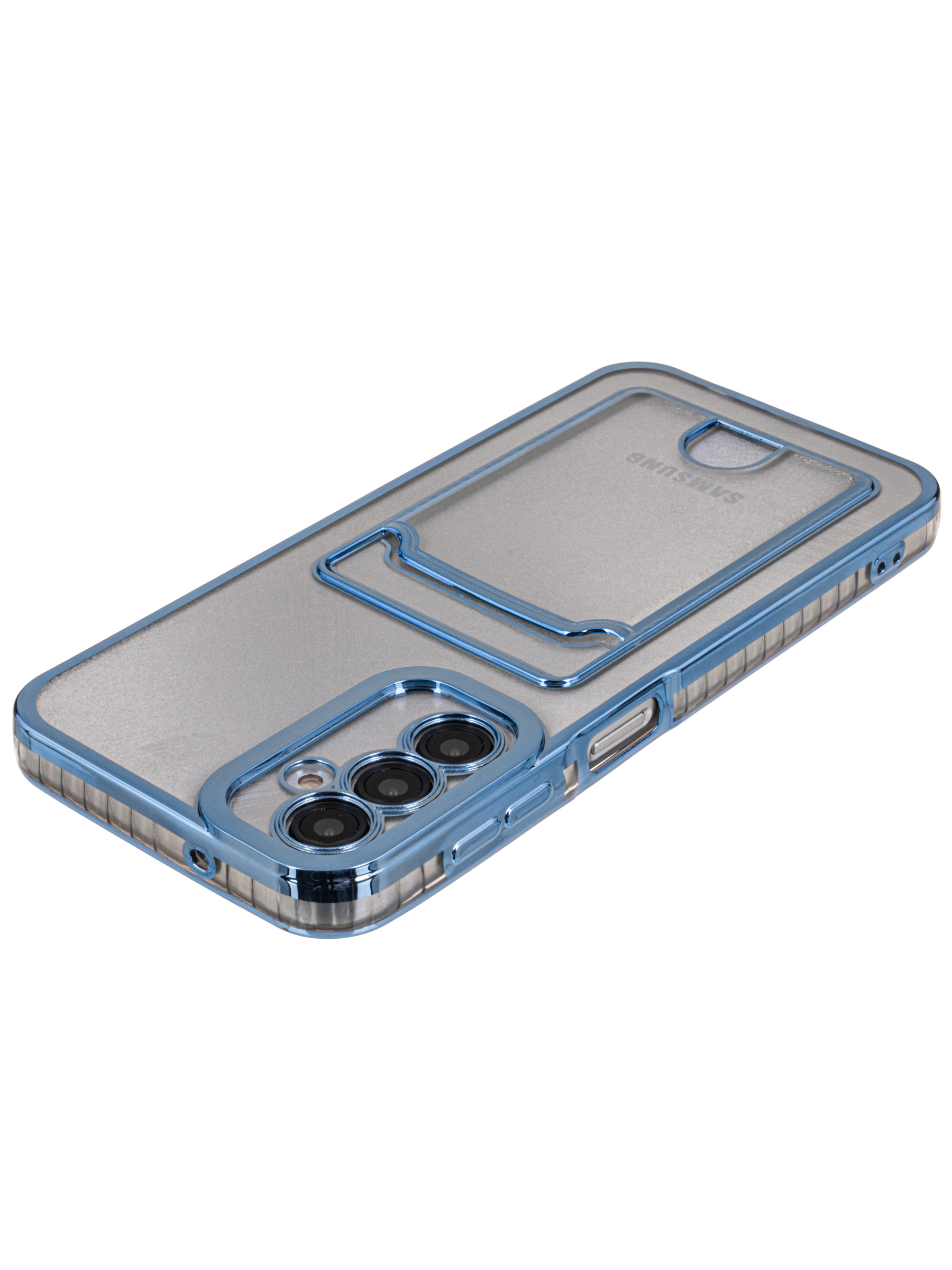 Силиконовый чехол Metallic rim для Samsung Galaxy A14 голубой (с вырезом для карт)