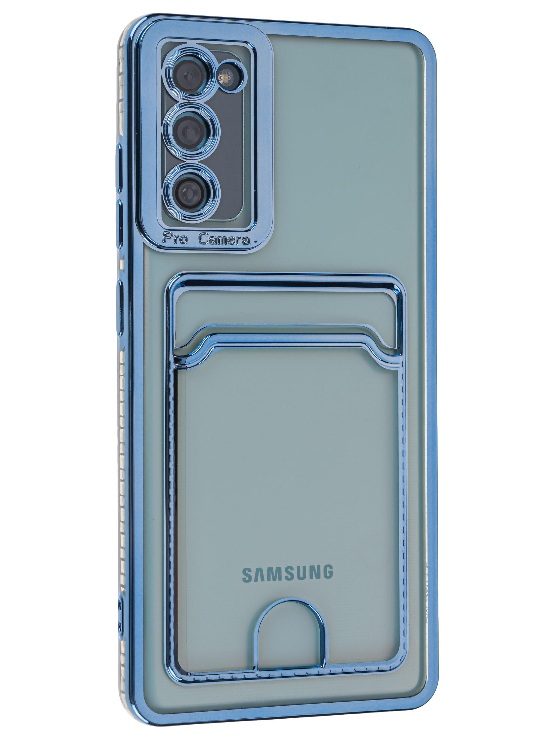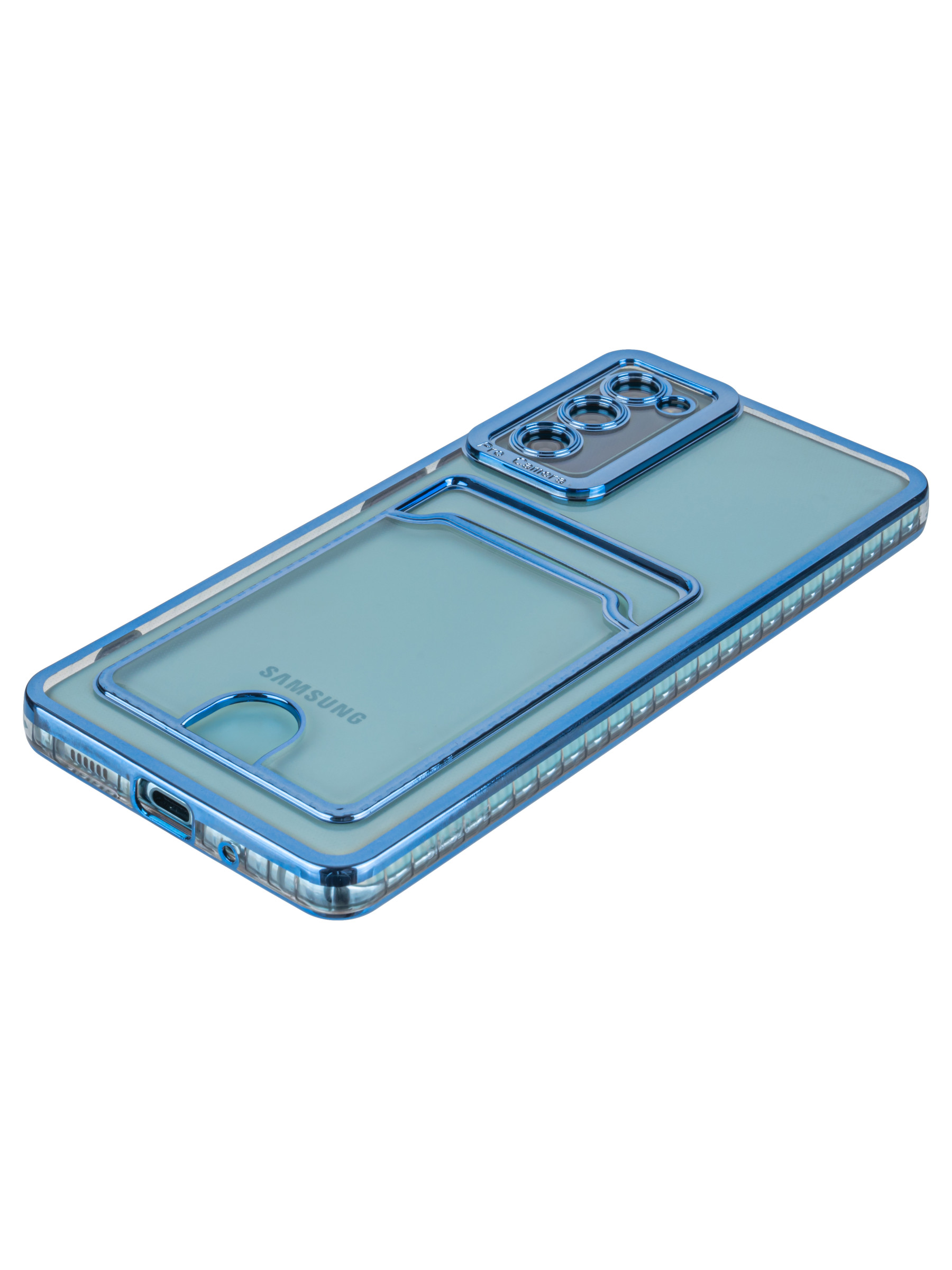 Силиконовый чехол Metallic rim для Samsung Galaxy S20 FE голубой (с вырезом для карт)