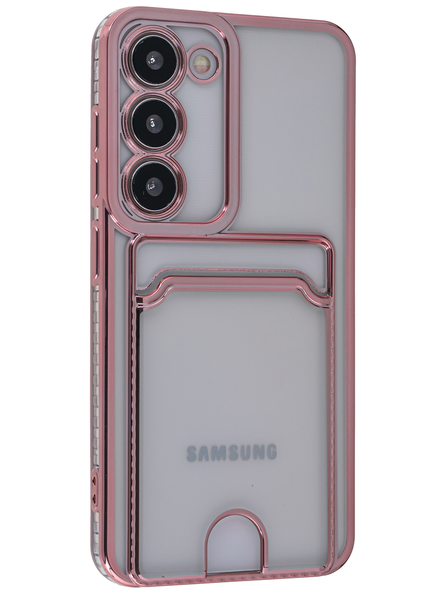 Силиконовый чехол Metallic rim для Samsung Galaxy S23 розовый (с вырезом для карт)