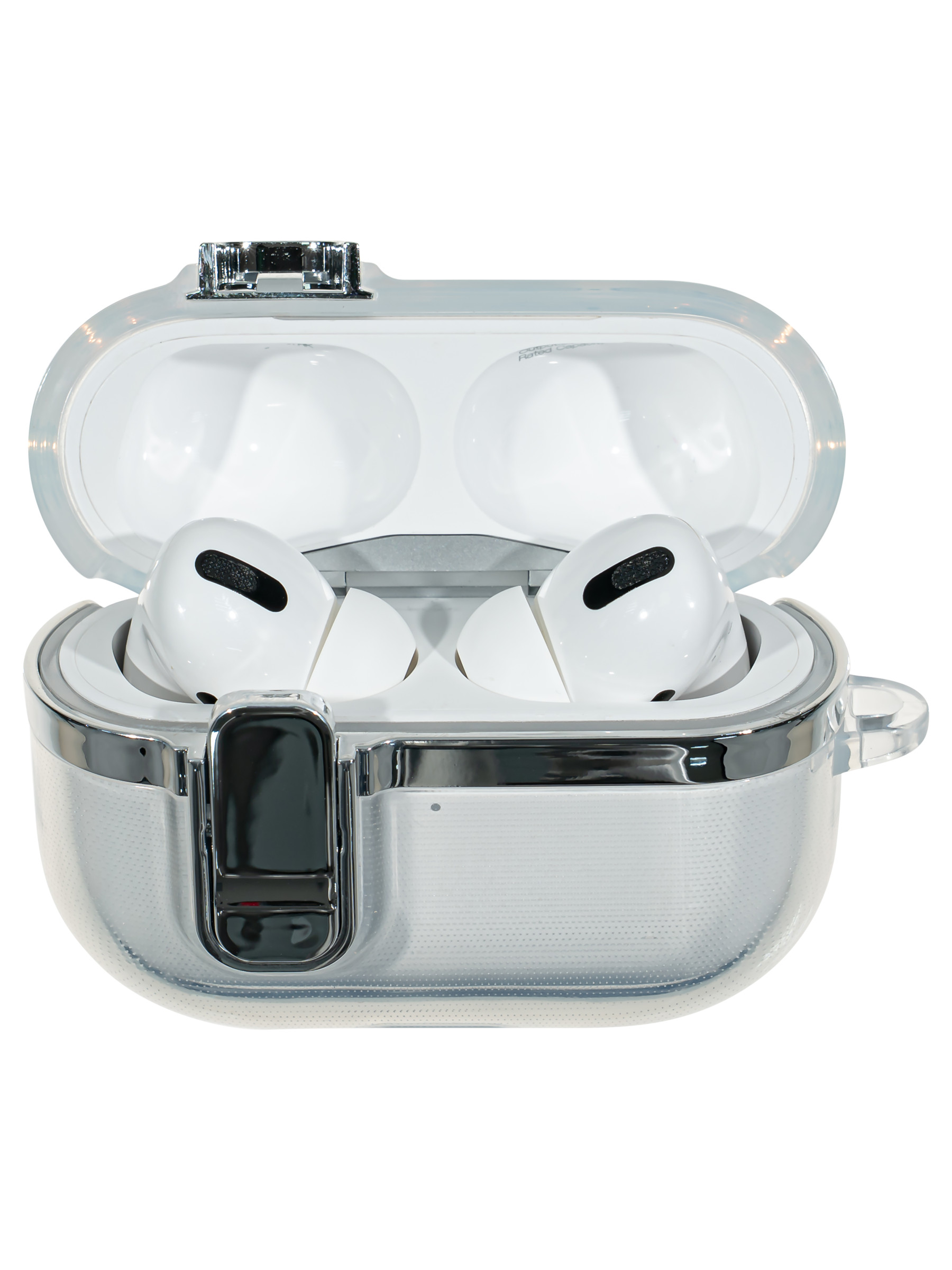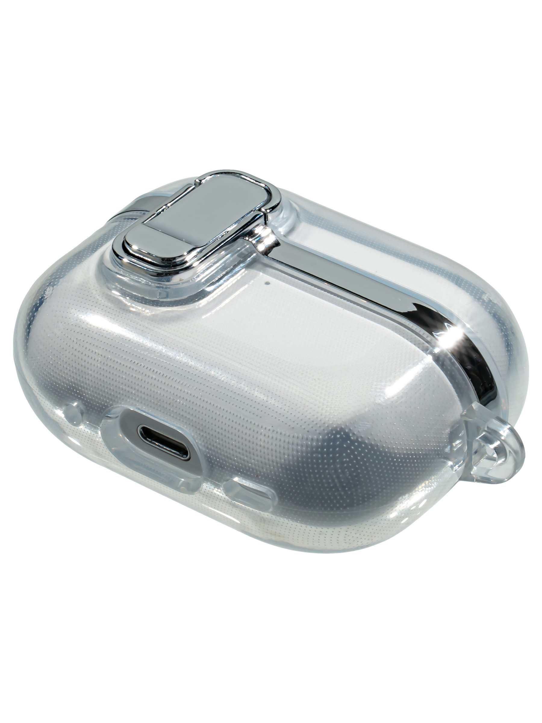 Силиконовый чехол Pod Pocket Metallic для AirPods Pro 1, 2 серебристый с замком с карабином