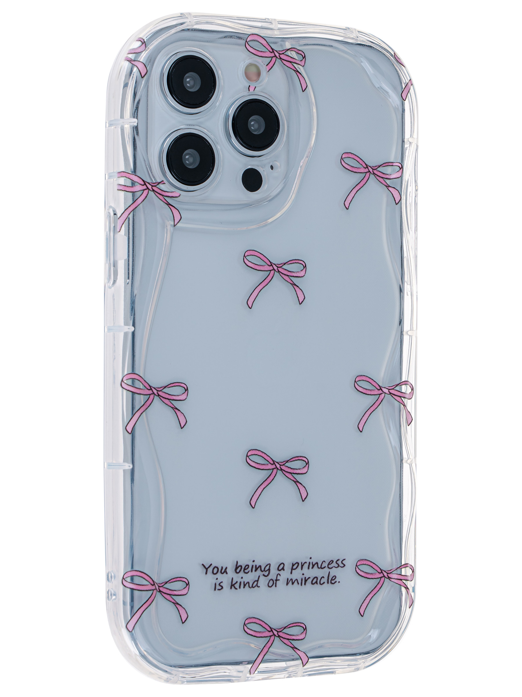 Силиконовый чехол для телефона – это идеальный выбор для тех, кто ценит надежность и стиль. Он предлагает надежную защиту камеры, экрана и кнопок, обеспечивая долговечность вашего устройства. Задняя часть чехла выполнена в волнистом дизайне с милым рисунком бантиков, что придает ему игривый и элегантный вид. Удобный съемный браслет на запястье обеспечивает практичность и комфорт в ношении, позволяя всегда держать телефон под рукой. Этот чехол станет отличным дополнением к вашему стилю!
