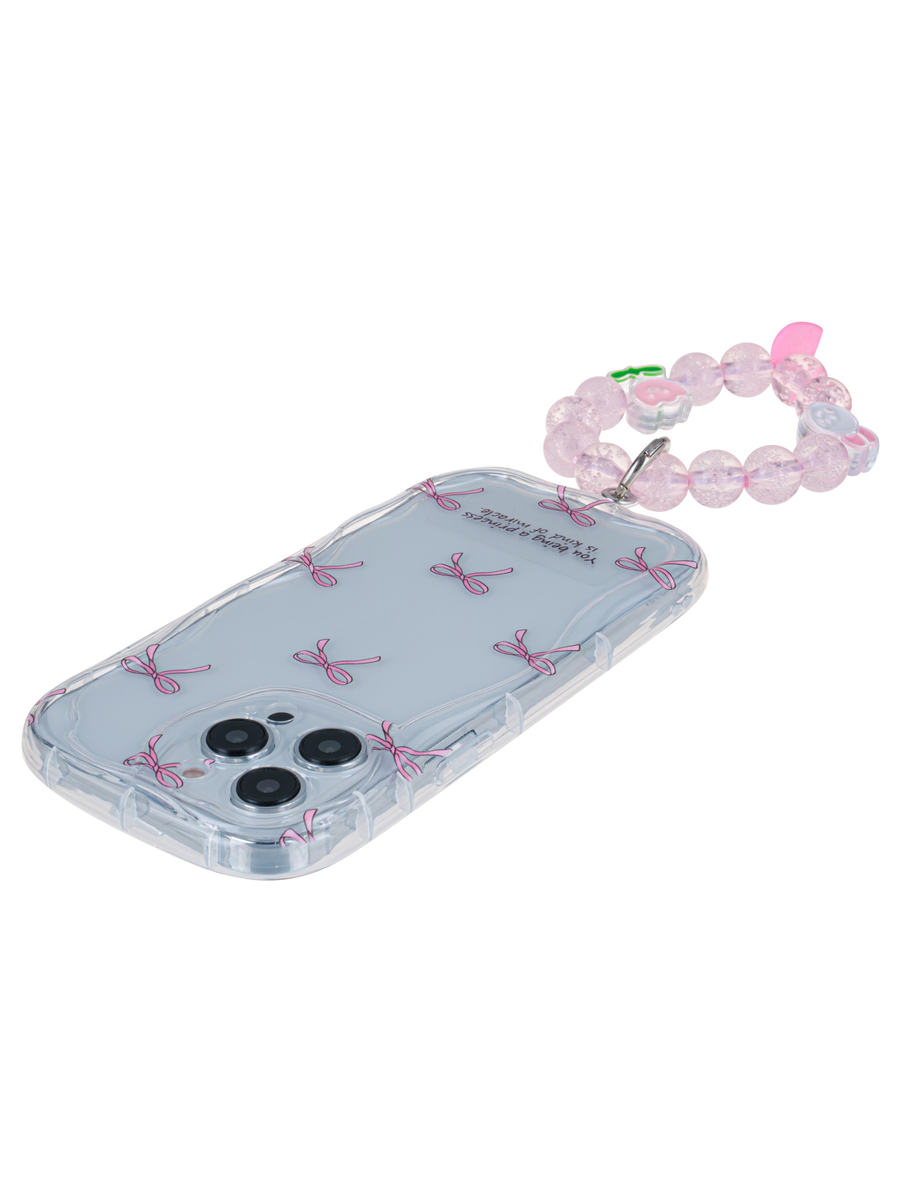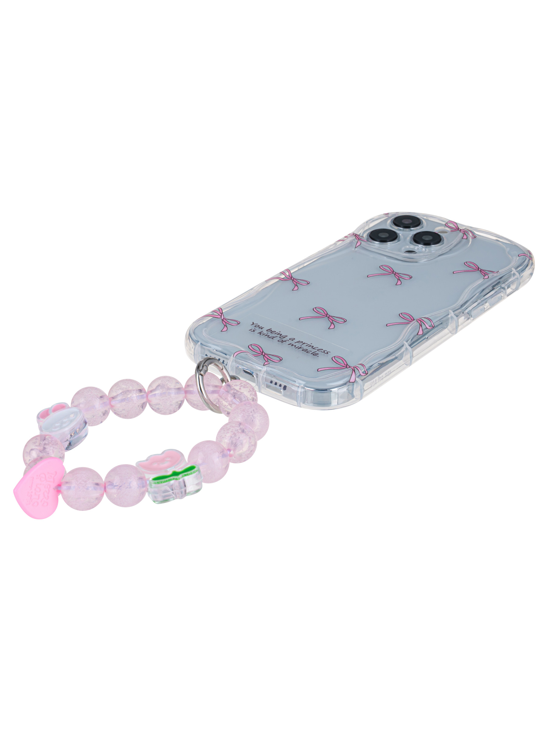 Силиконовый чехол Small bows для iPhone 14 Pro Max прозрачный с браслетом