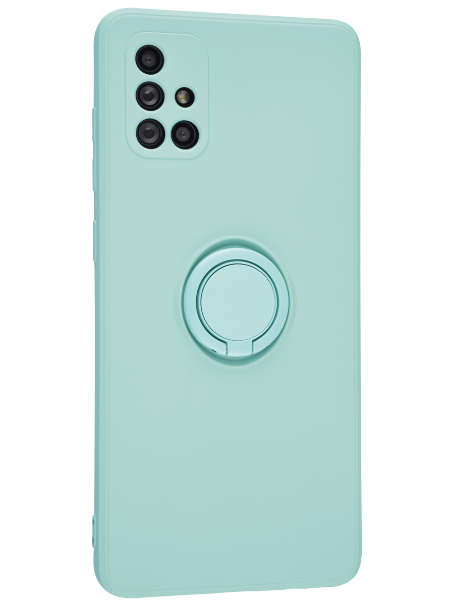 Силиконовый чехол Stocker edge для Samsung Galaxy A71 бело-голубой с кольцом
