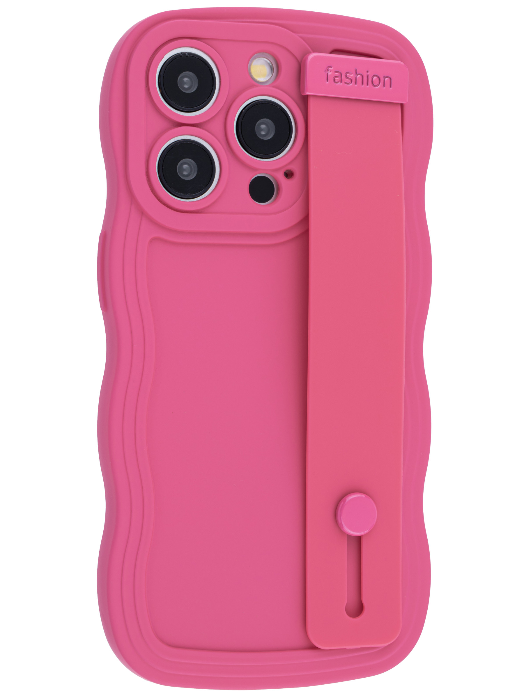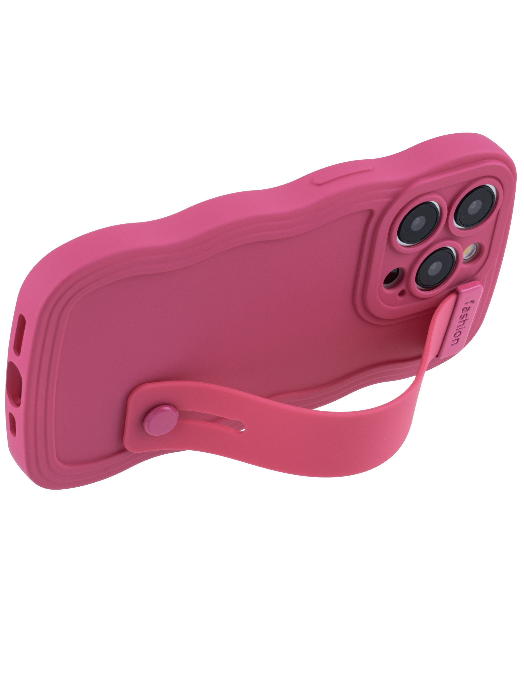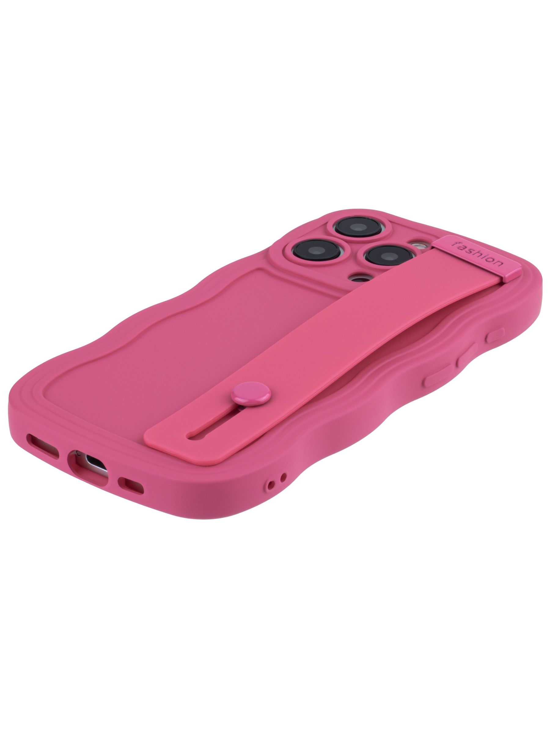 Силиконовый чехол Style для iPhone 15 Pro розово-красный с ручкой