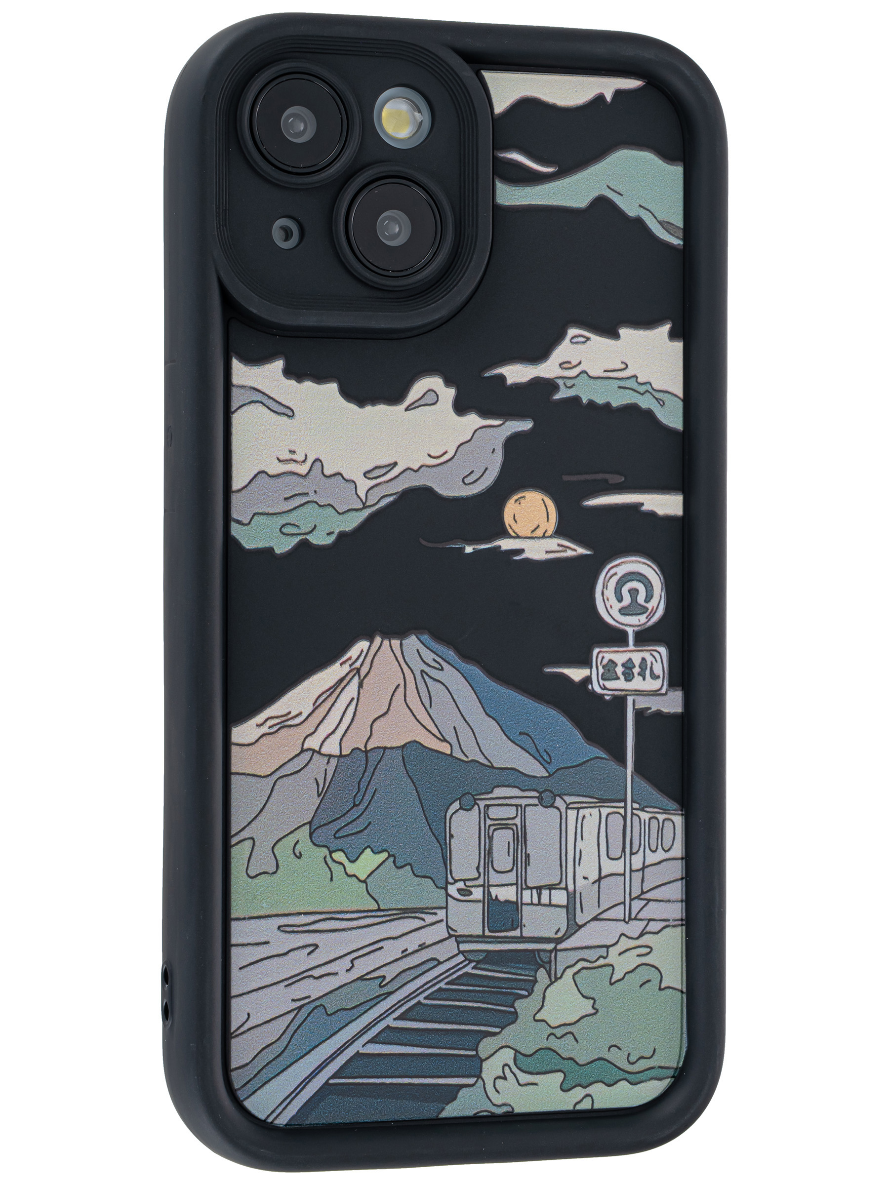 Силиконовый чехол Thick для iPhone 15 Train illustration черный