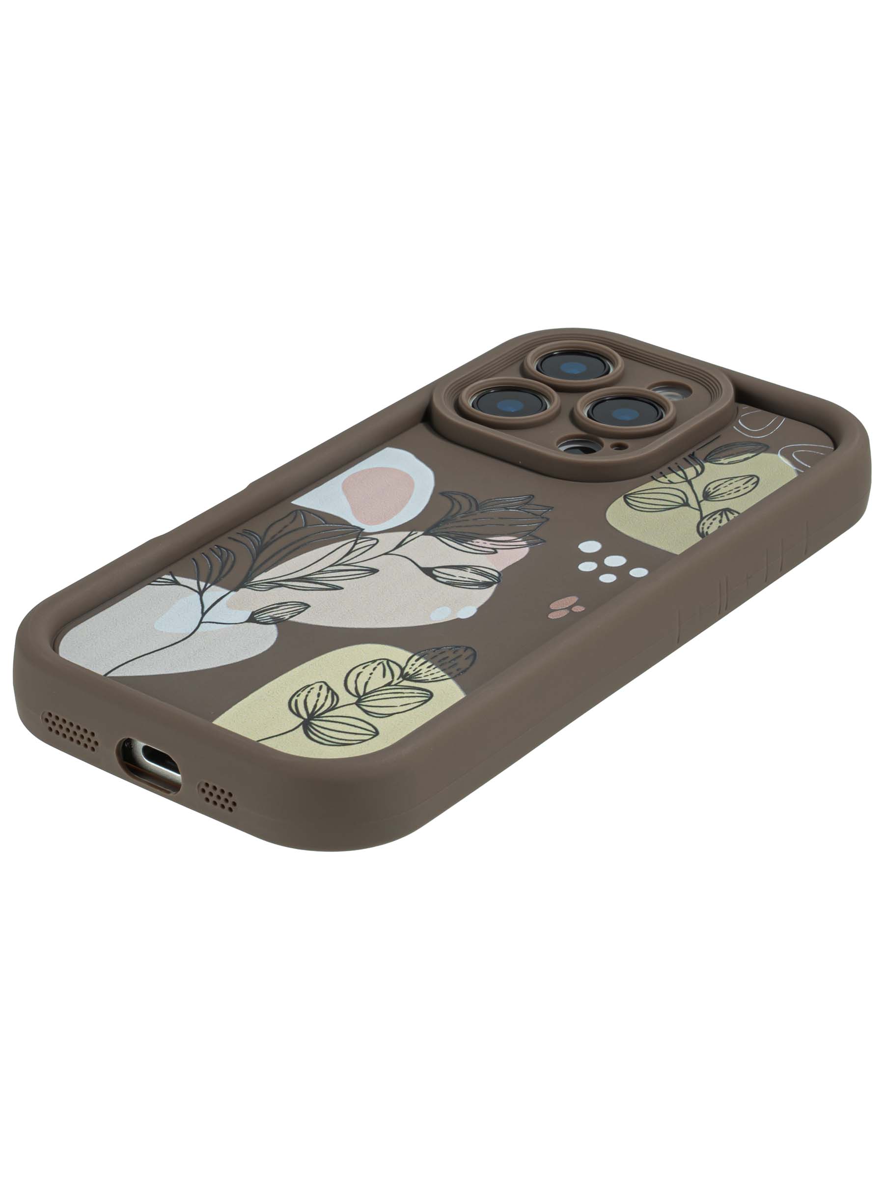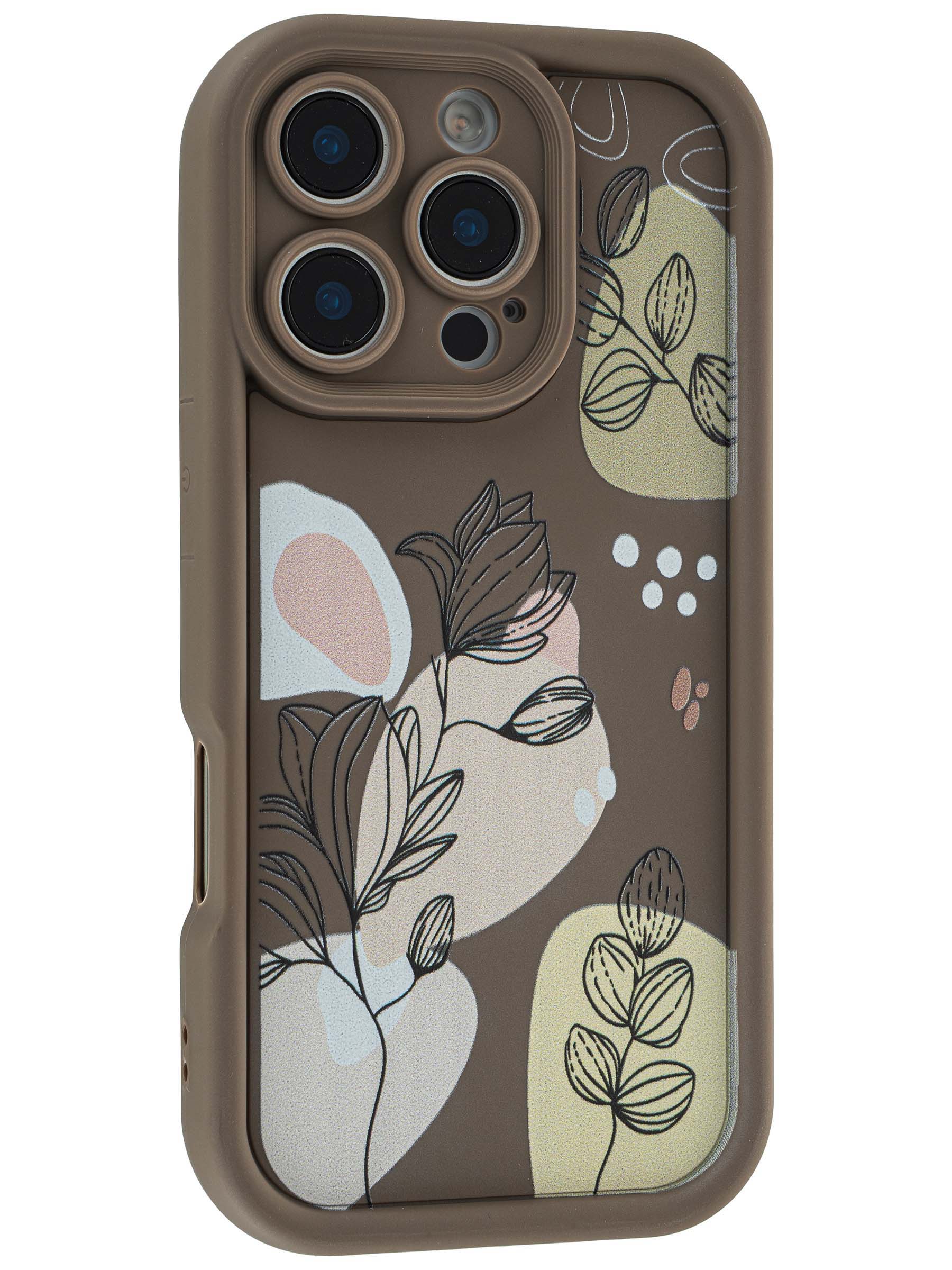 Силиконовый чехол Thick для iPhone 16 Pro Plants коричневый