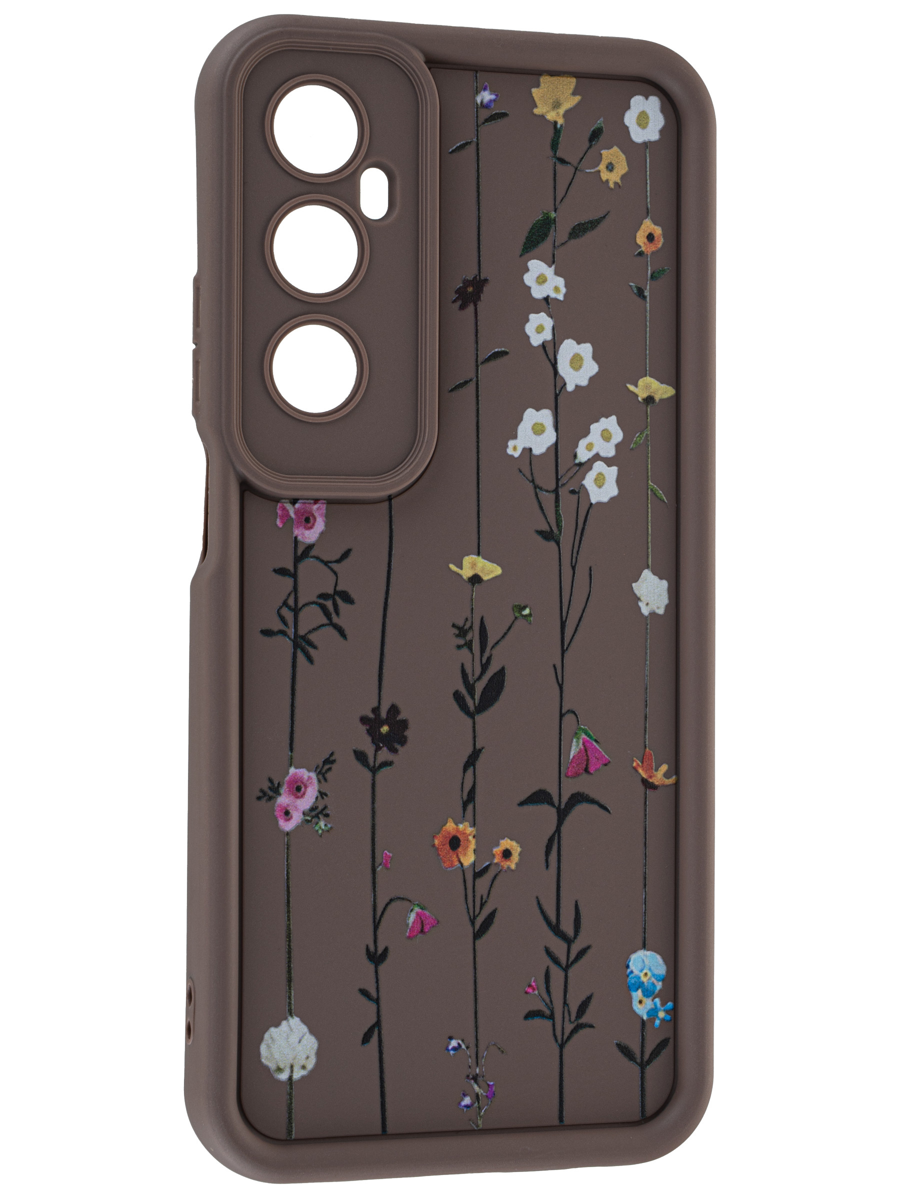Силиконовый чехол Thick для Realme C65 4G Flower vine коричневый