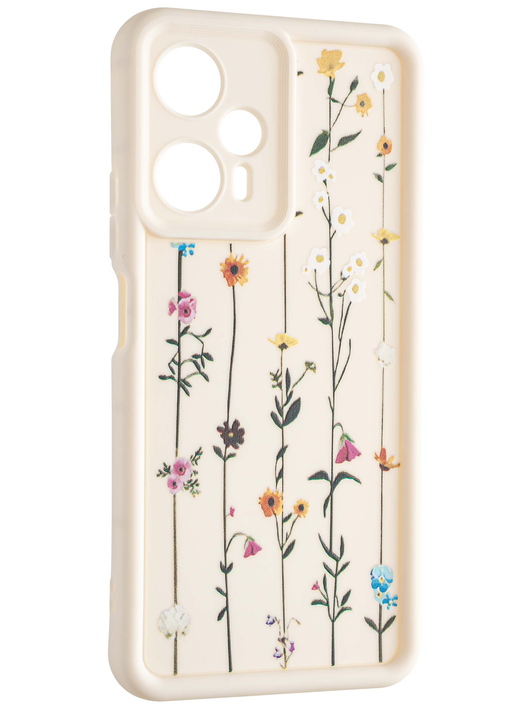 Силиконовый чехол Thick для Xiaomi Poco F5 Flower vine молочный