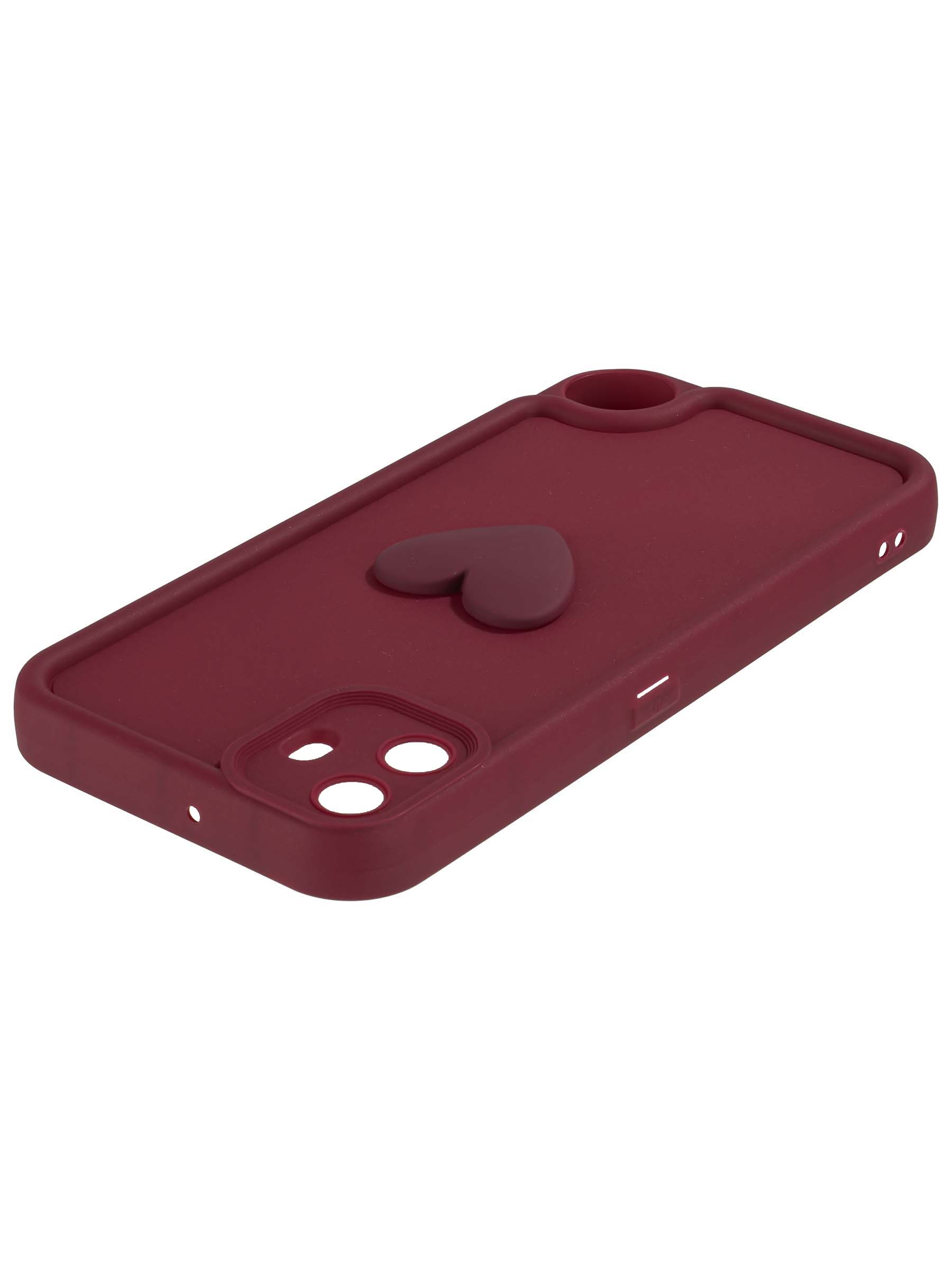 Силиконовый чехол с объемным сердцем от КейсБерри. Модуль камер максимально защищен. Все вырезы идеально подогнаны.