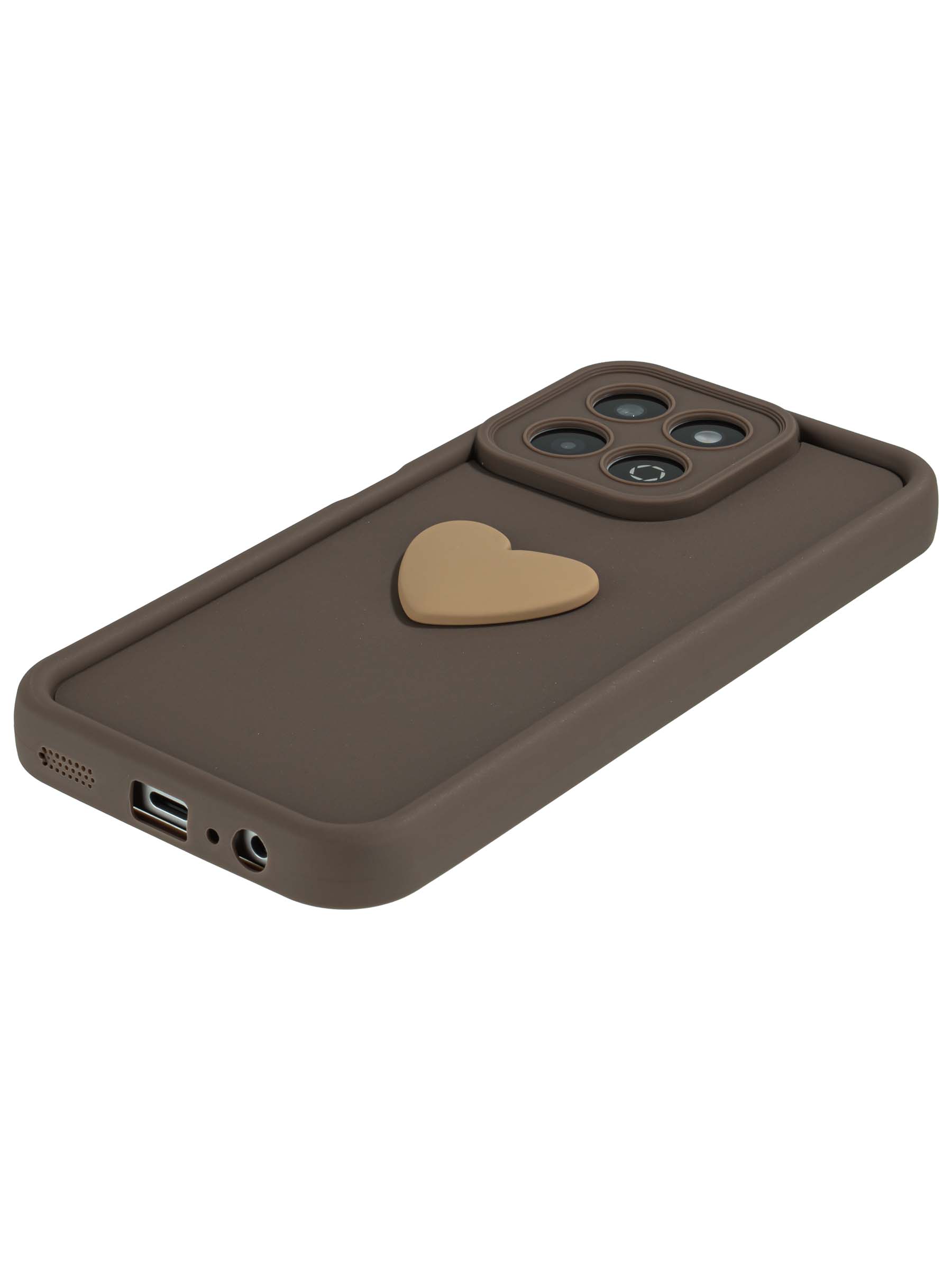 Силиконовый чехол с объемным сердцем от КейсБерри. Модуль камер максимально защищен. Все вырезы идеально подогнаны.