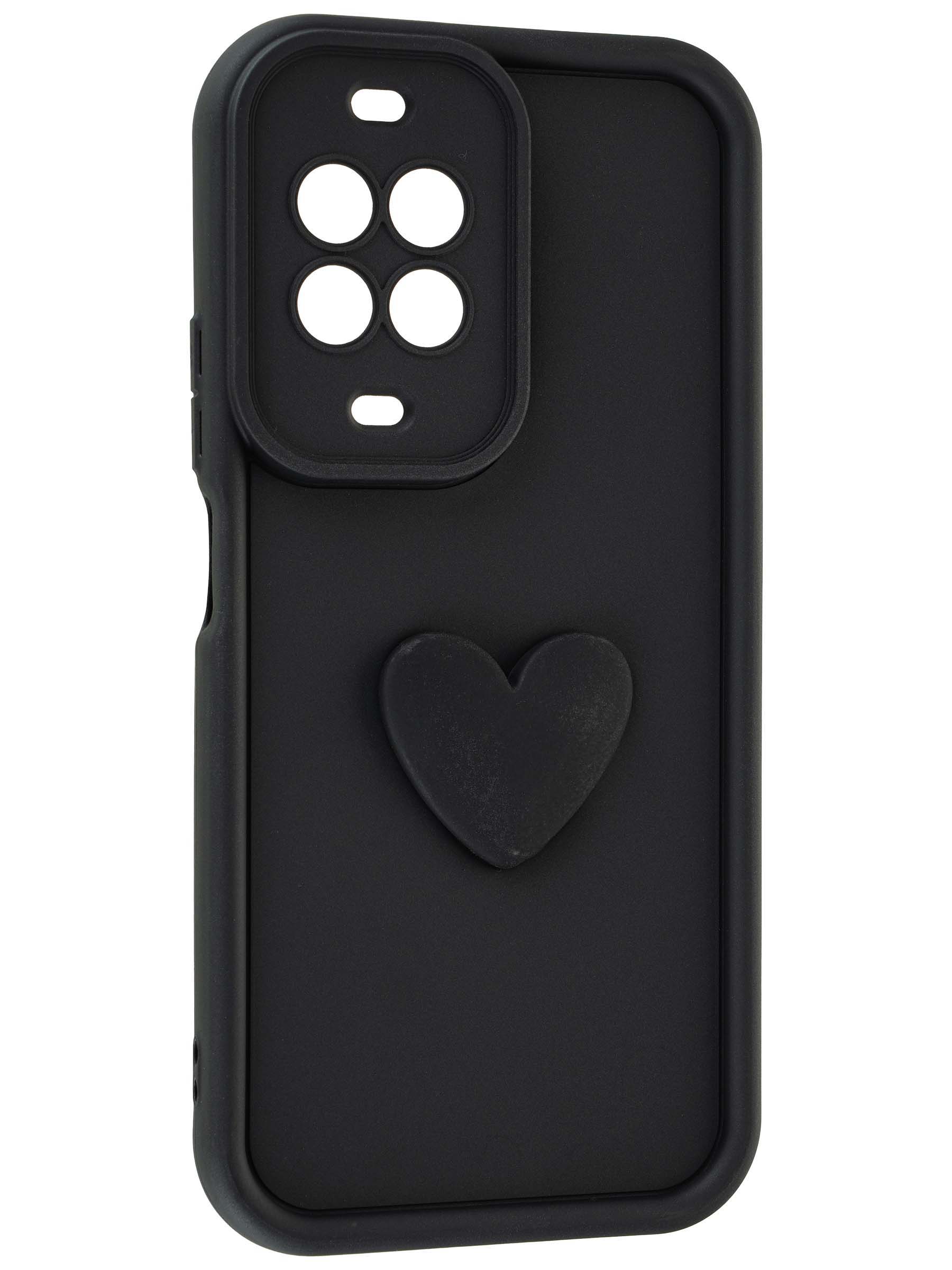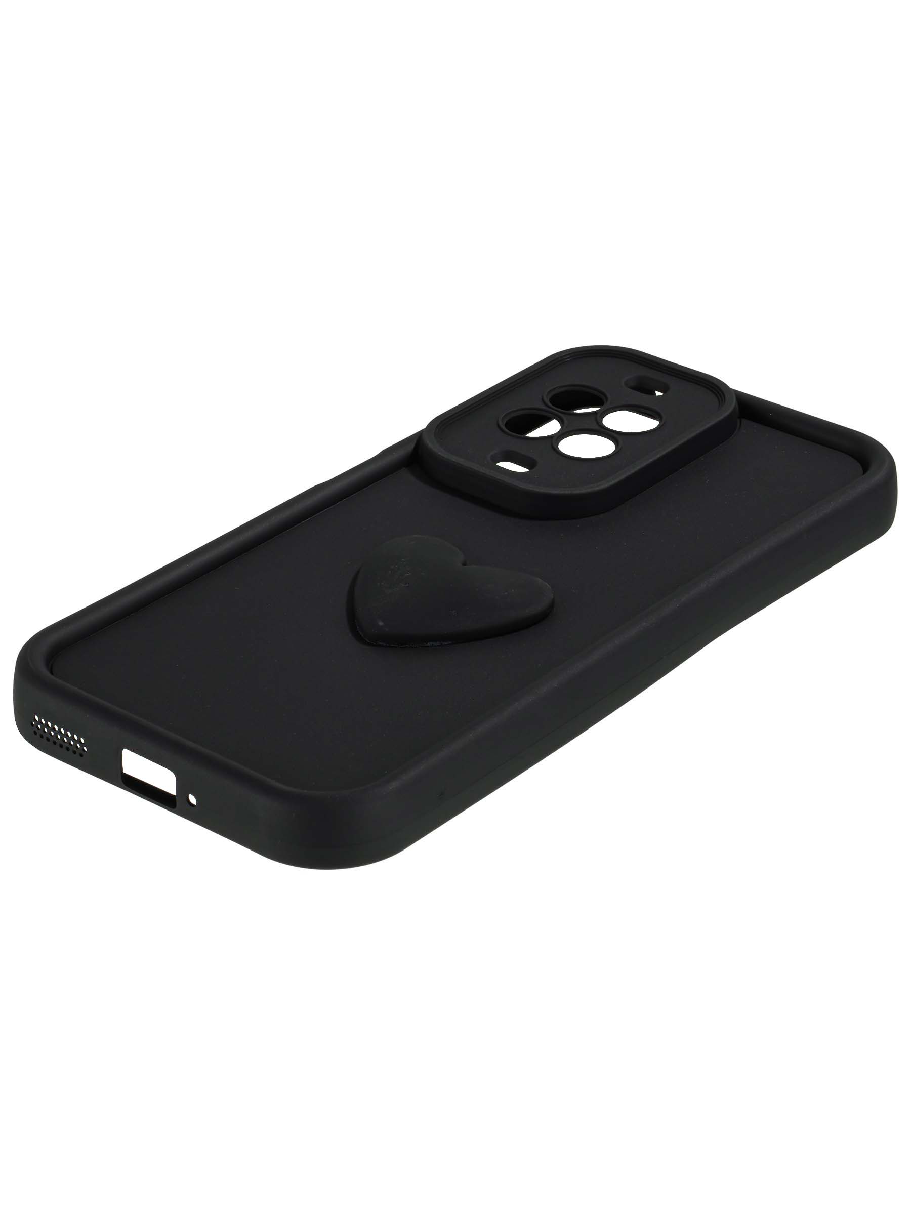 Силиконовый чехол с объемным сердцем от КейсБерри. Модуль камер максимально защищен. Все вырезы идеально подогнаны.