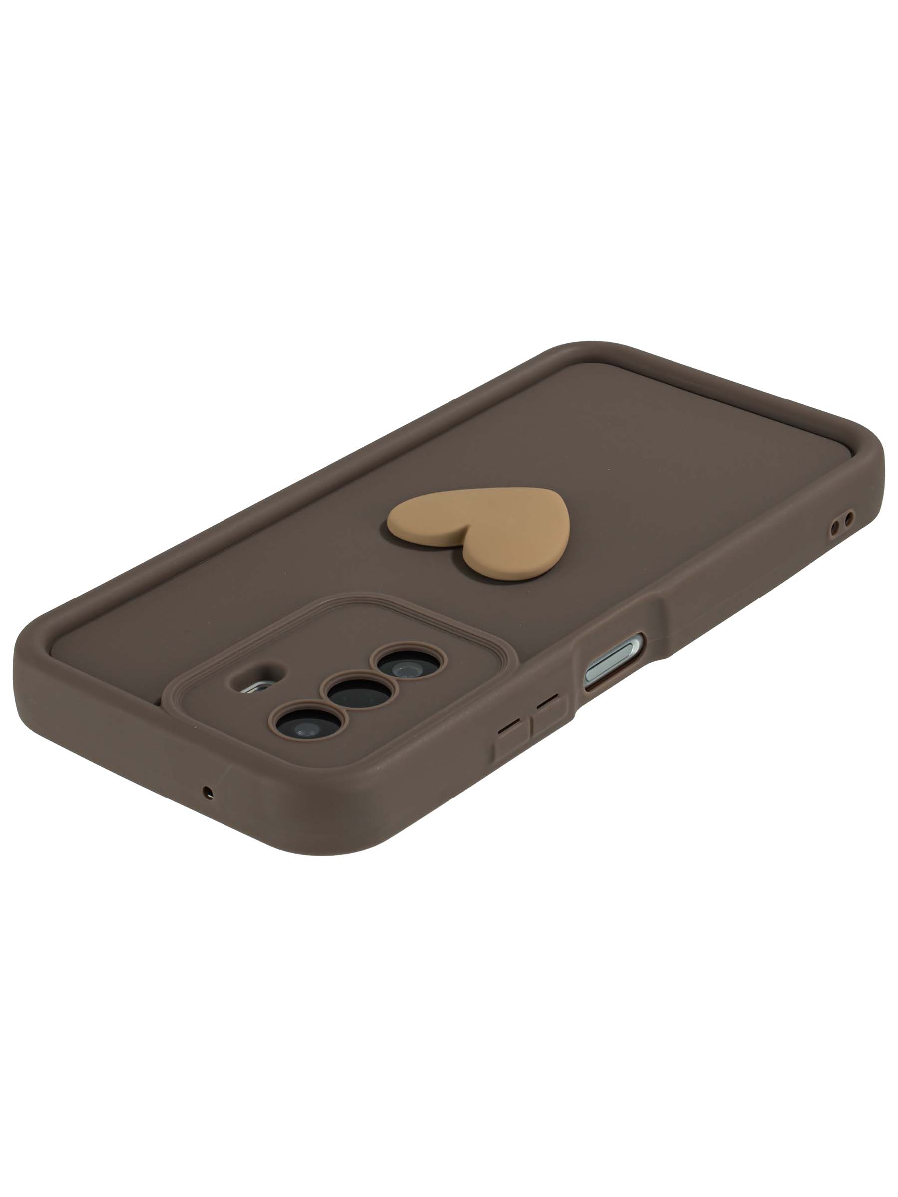 Силиконовый чехол с объемным сердцем от КейсБерри. Модуль камер максимально защищен. Все вырезы идеально подогнаны.
