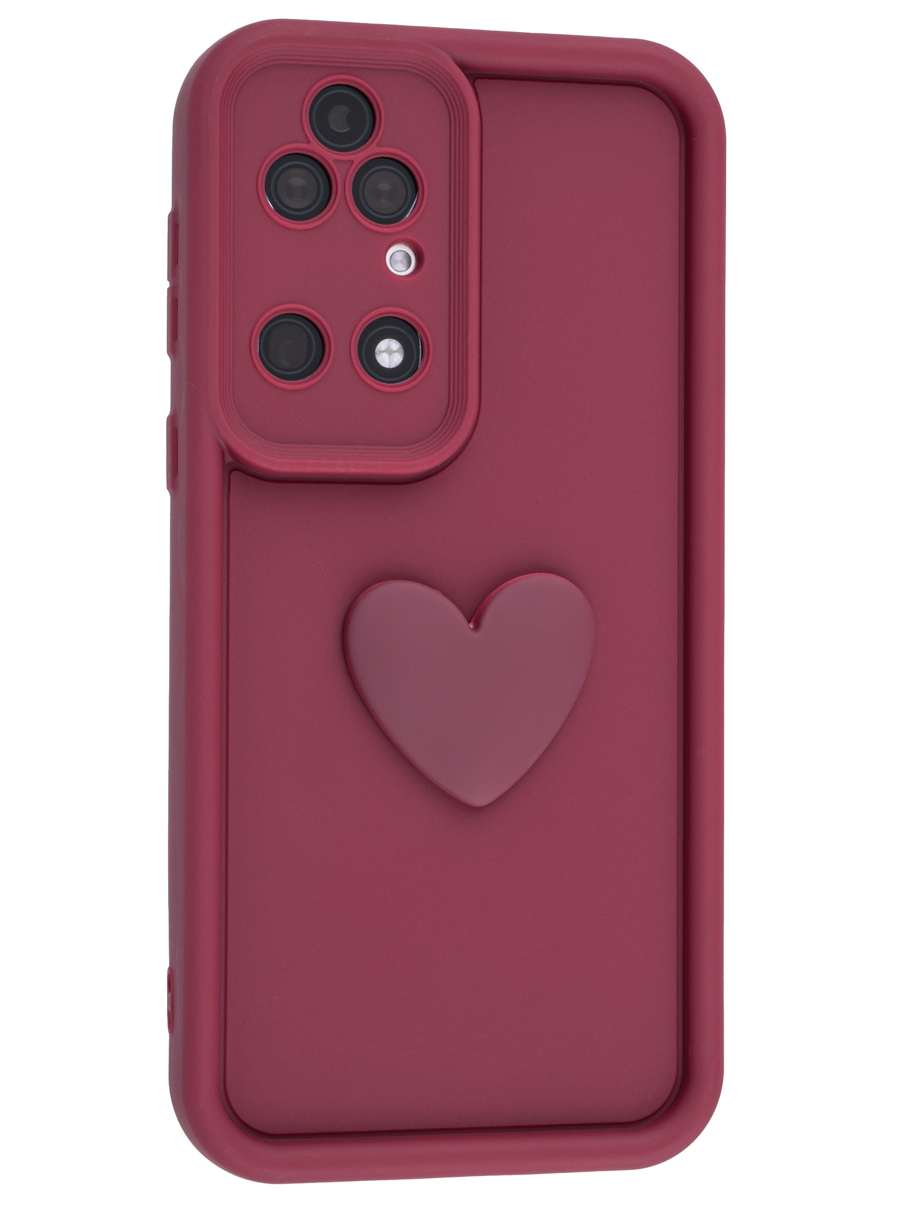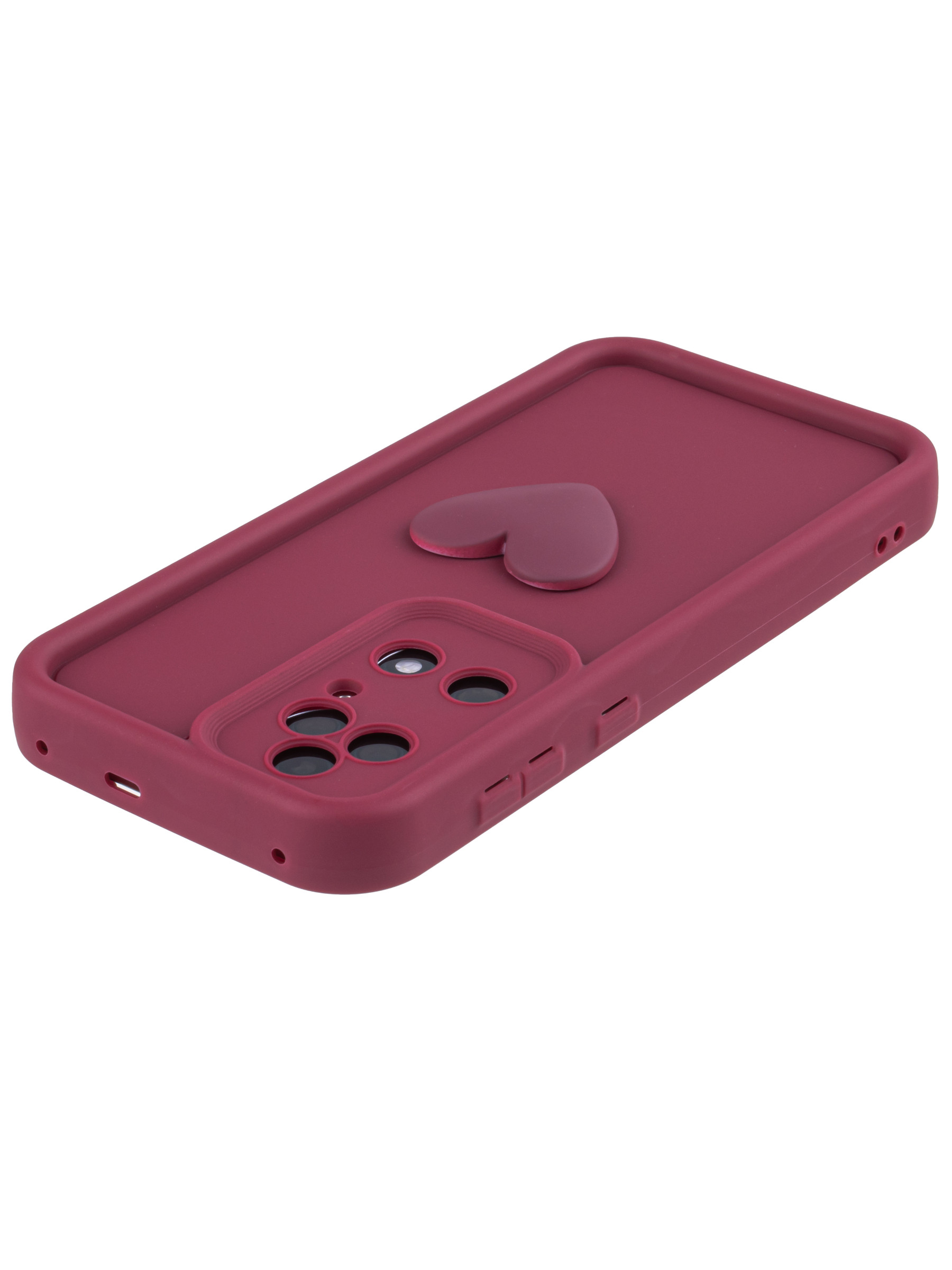 Силиконовый чехол с объемным сердцем от КейсБерри. Модуль камер максимально защищен. Все вырезы идеально подогнаны.