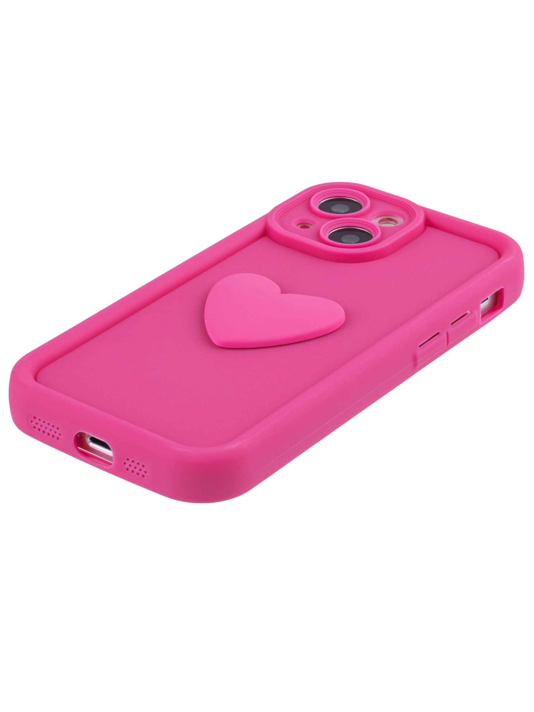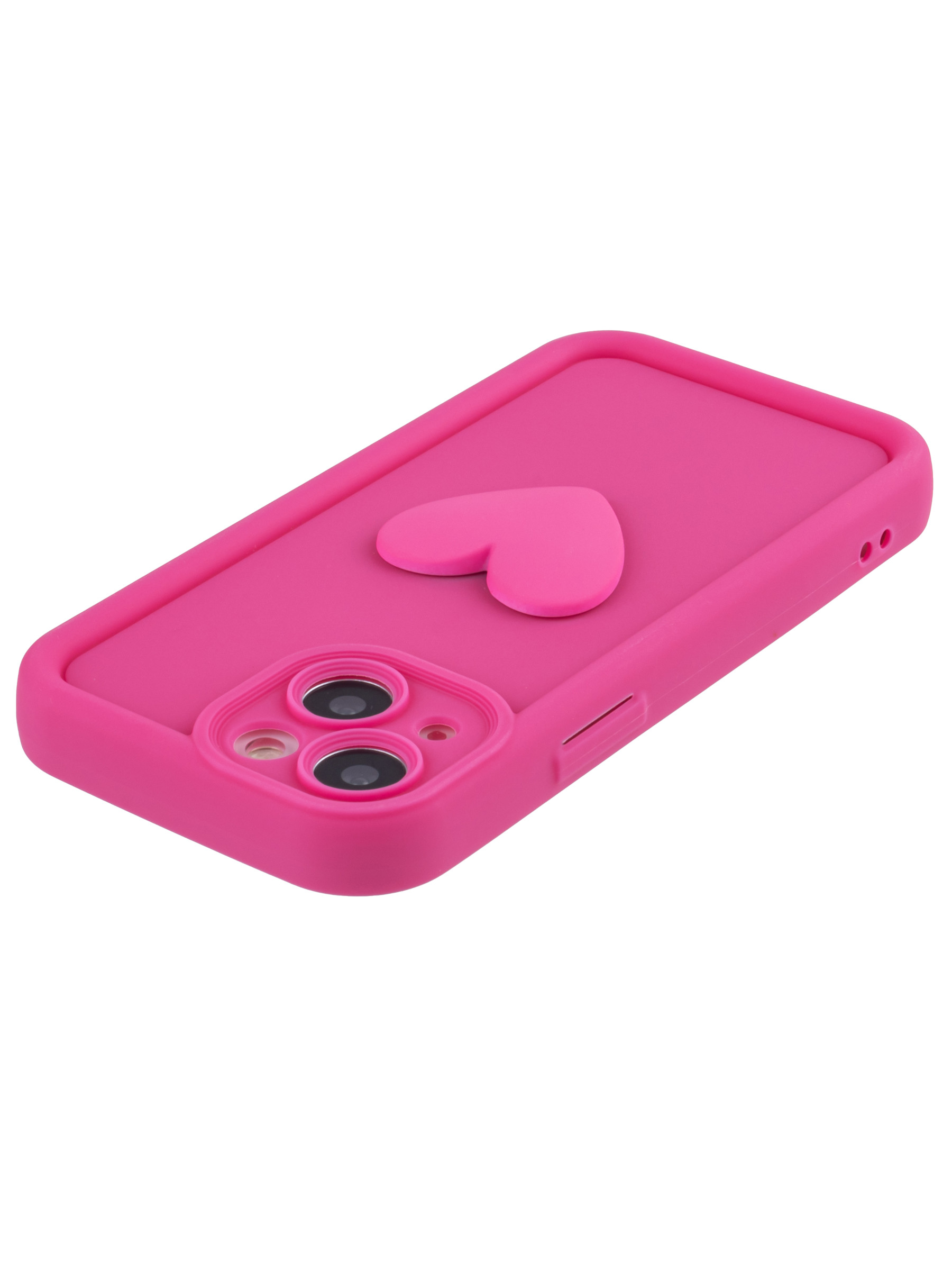 Силиконовый чехол с объемным сердцем от КейсБерри. Модуль камер максимально защищен. Все вырезы идеально подогнаны.